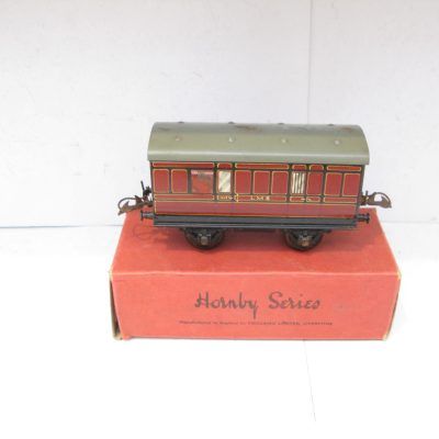 Hornby 0 Gauge No.2 Brake end LMS Corridor Coach – Boxed – Excellent/plus – Here we have for sale a No.2 LMS Brake end Corridor Coach, Hornby produced these from 1937 for the 4 Railway regions of the time and here are the LMS Brake end version, sides and roof are Excellent plus in an Excellent box with LMS label to one end. 2 available