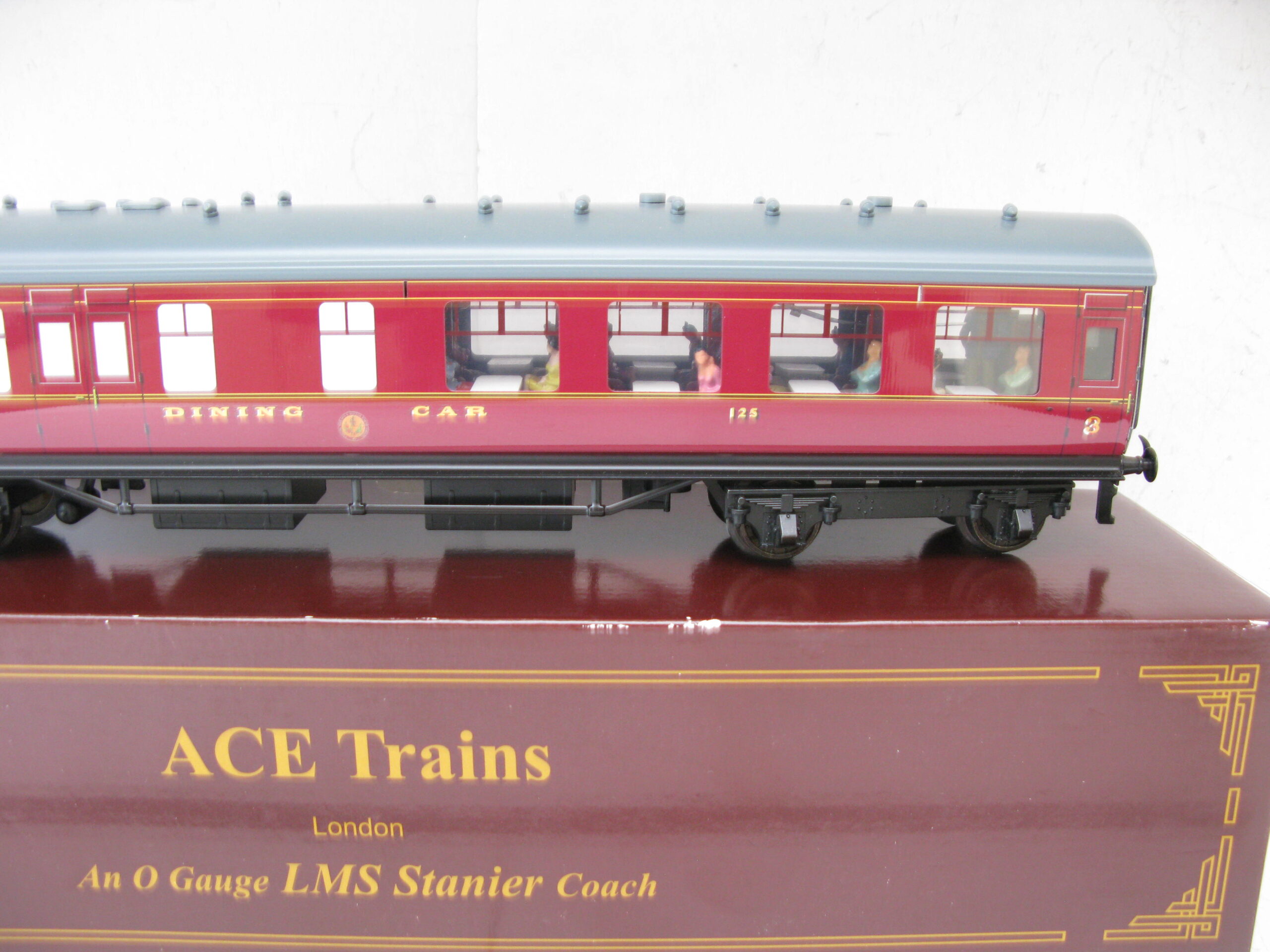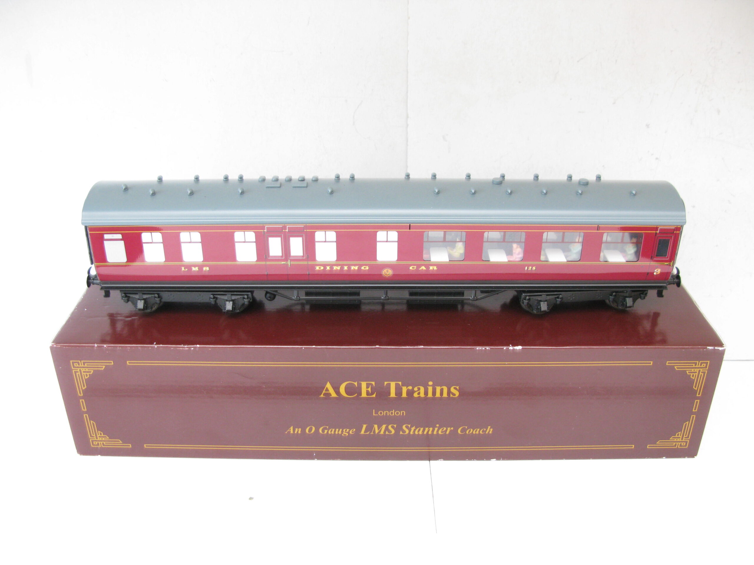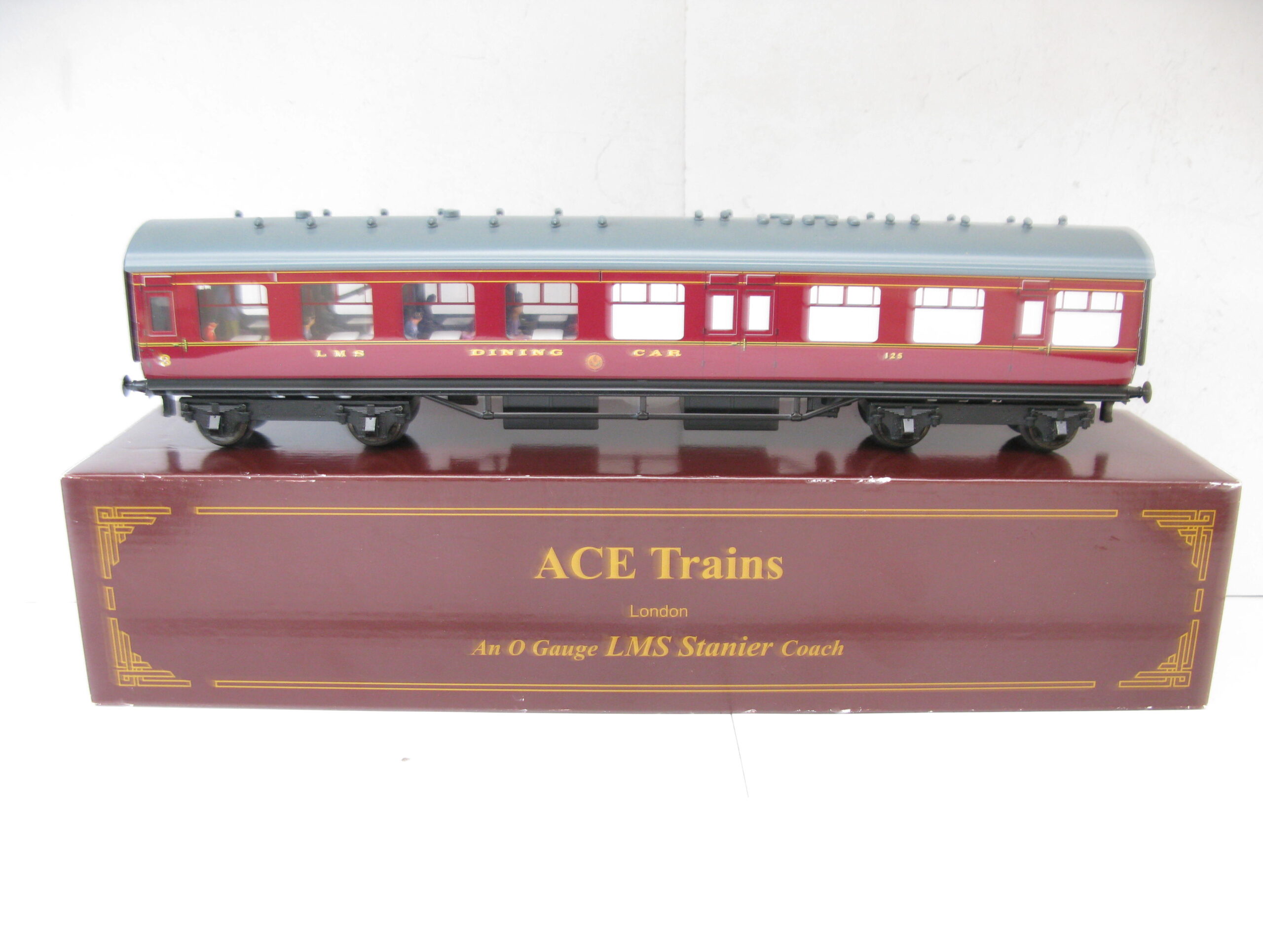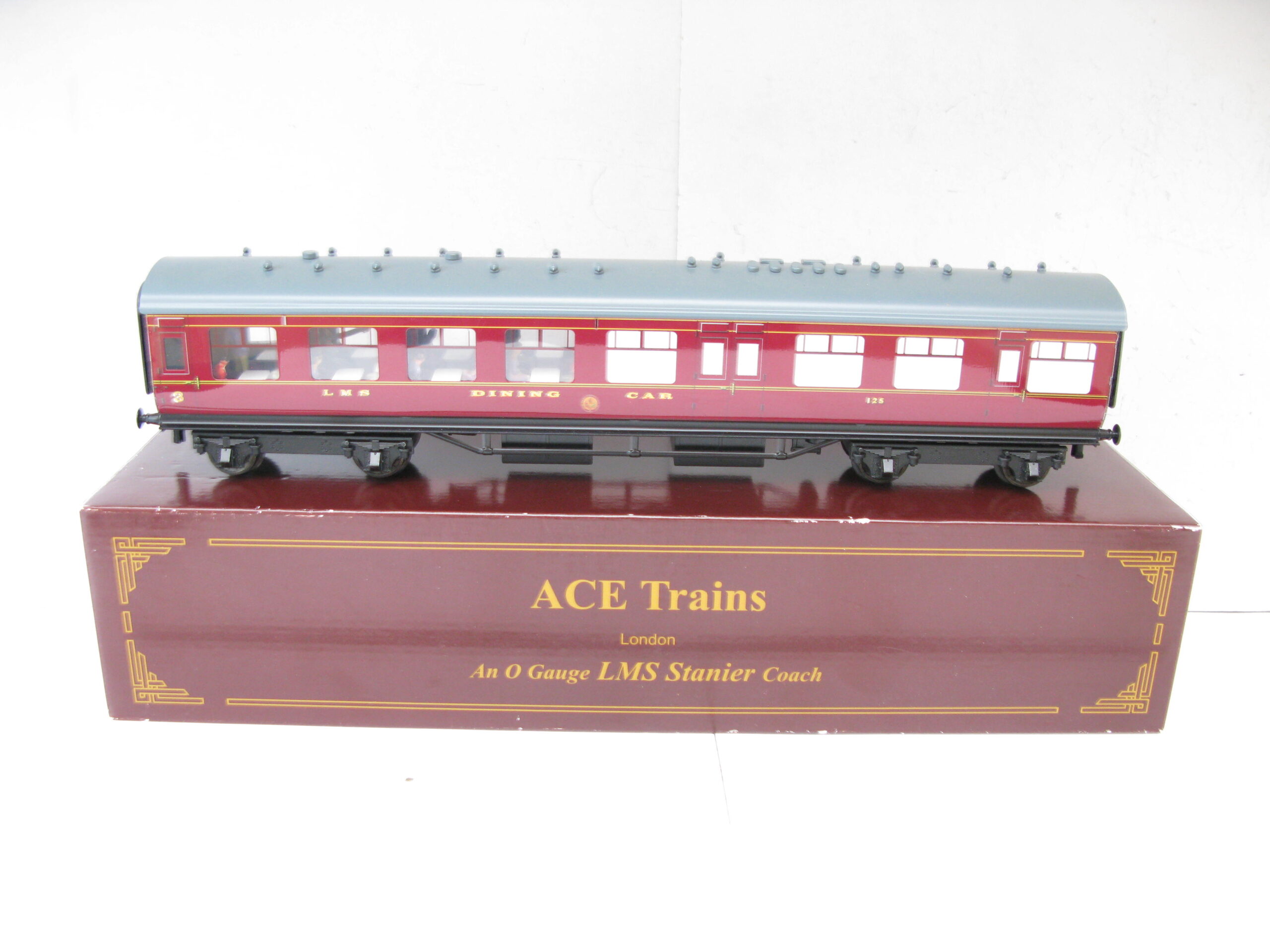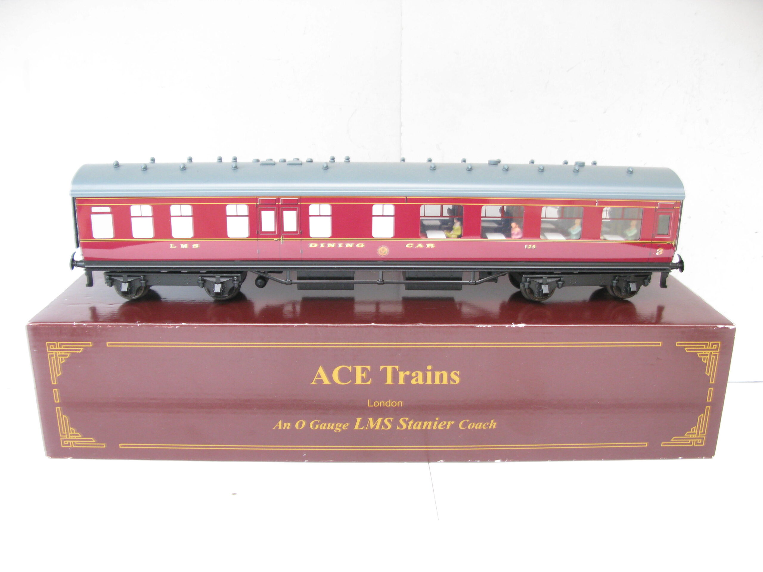Ace 0 Gauge Modern issue C/18 LMS Stanier Maroon Dining Car No.125 – Boxed – Produced by Ace Trains is this Stanier maroon Dining Car that can be part of a trains of Stanier coaches. I have listed sets A & B, The coach is fitted with passenger which can be remove if required, The coach has seen little use in Near Mint to Mint condition and boxed. A great opportunity to add this to your vintage and modern course scale collection.