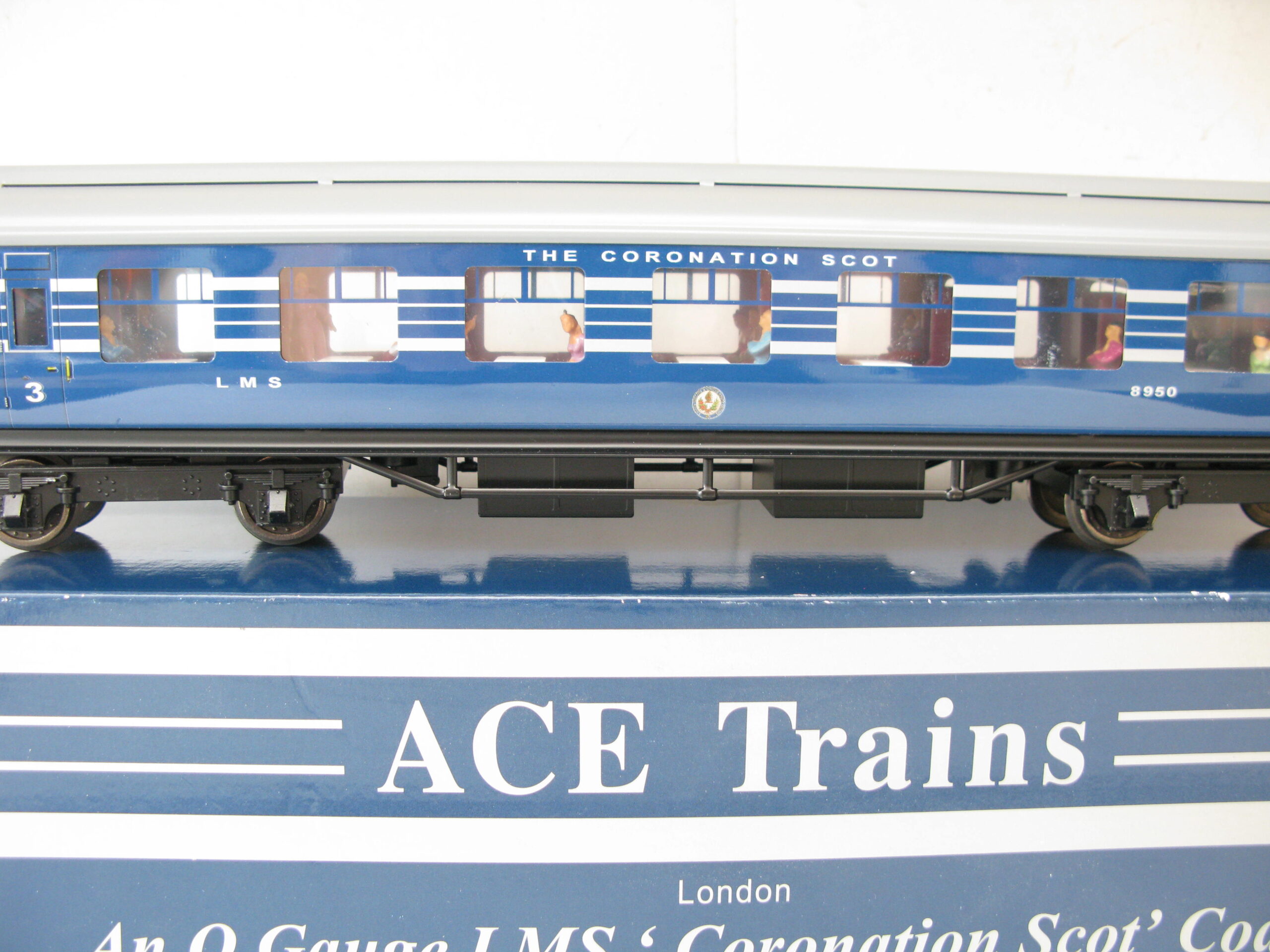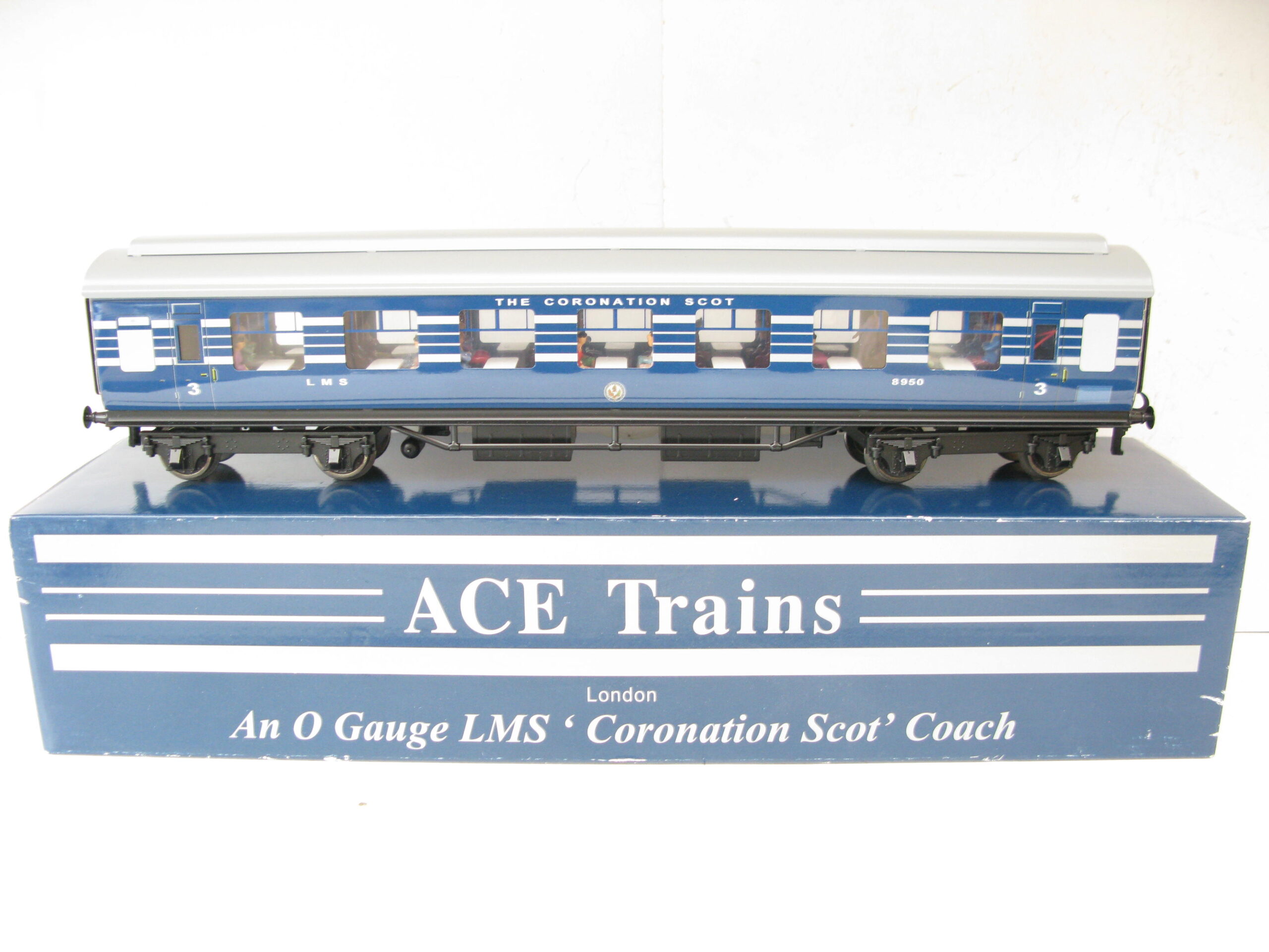 Ace 0 Gauge Modern issue C/20 LMS Blue Coronation Open 3rd coach No. 8950 – Boxed – Ace 0 Gauge Modern issue C/20 LMS Blue blue Coronation Open 3rd coach No. 8950. Produced as an additional coach to the 3-car sets A and B. The coach has been fitted with passenger which can be removed if required. The coach has seen little use in Near Mint to Mint condition in the LMS blue coronation box, overall Near Mint to Mint in Excellent box. A great opportunity to add this to your vintage and modern course scale collection.