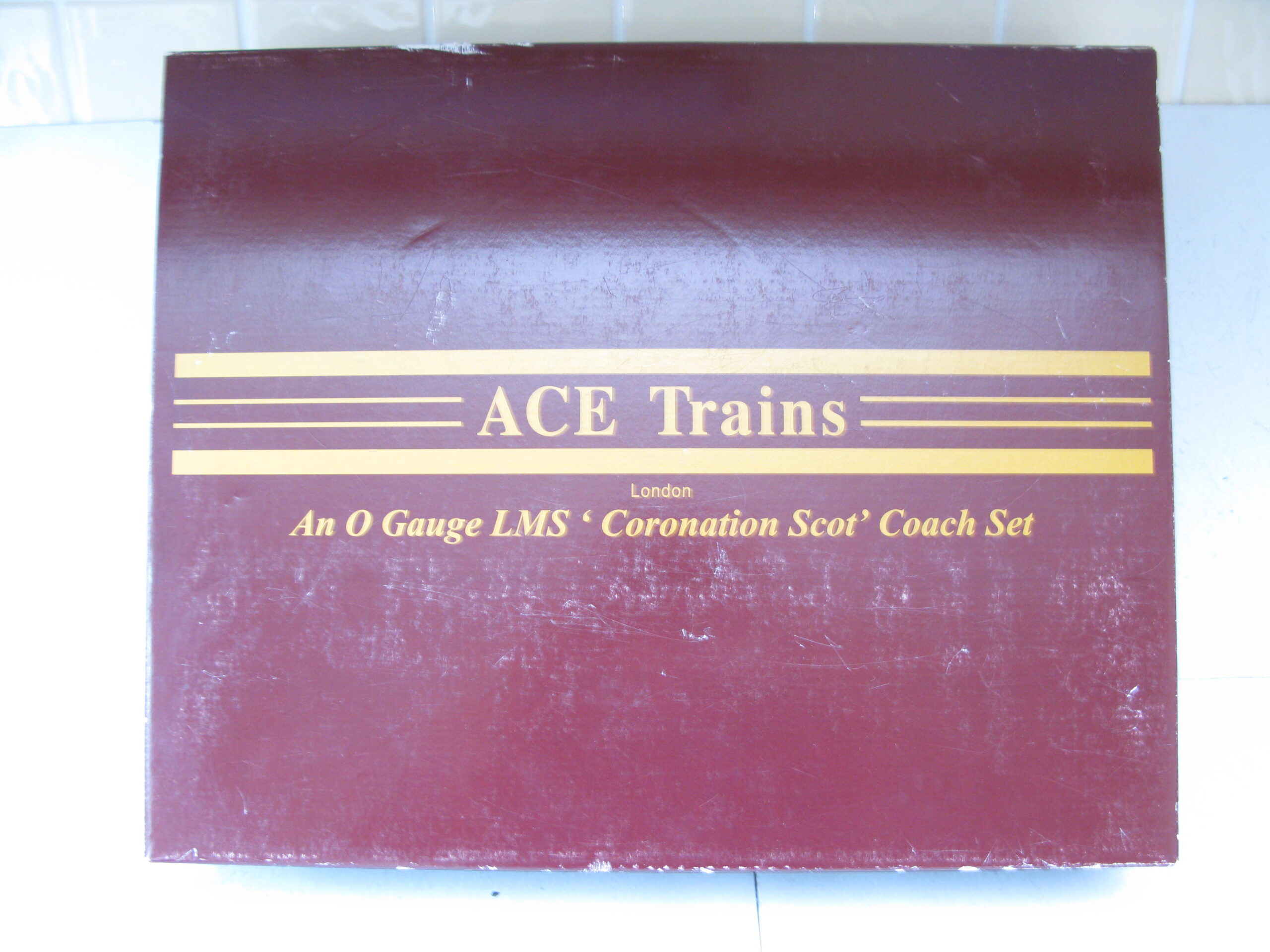 Ace 0 Gauge Modern issue C/20 Set A LMS Blue Coronation 3-car set – Boxed – from the range of Streamline coaches produced to go with the streamline locomotives produced by Ace Trains is this 3-car Set A in LMS blue with Open 3rd No. 8931, corridor 1st no.1071 and corridor all 1st brake end No.5054. All coach are fitted with passenger which can be remove if required, The set has seen little use in Near Mint to Mint condition in the LMS Maroon box. Note ACE Trains ran out of the blue coach boxes but had a surplus of the maroon ones and attached a blue label to one end to denote blue coaches, overall Near Mint to Mint in Excellent box. A great opportunity to add this to your vintage and modern course scale collection.