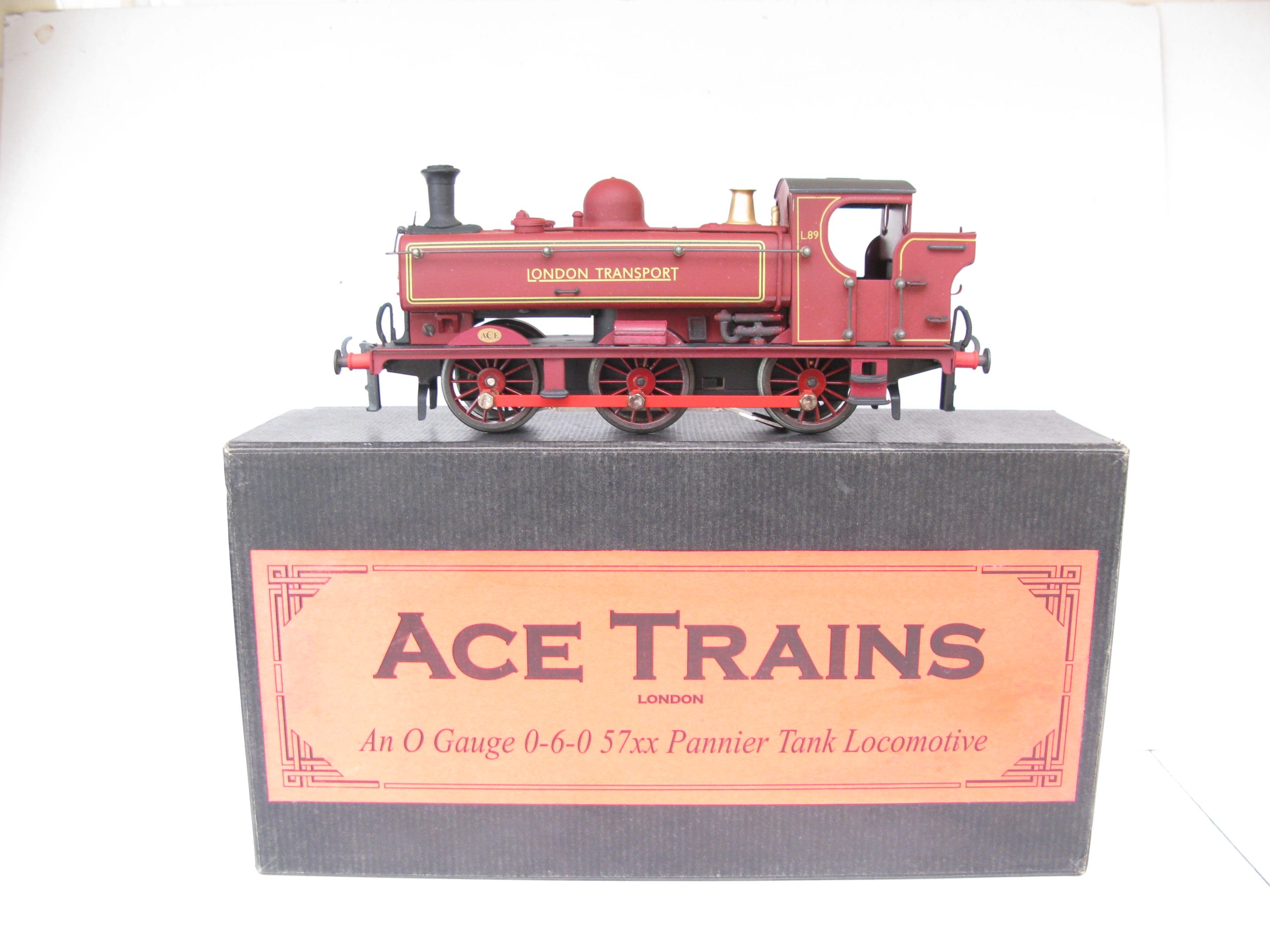 Ace 0 Gauge Modern issue E/21 0-6-0 London Transport Pannier Tank Loco No.L89, 2/3-rail electric – Boxed – Near Mint Boxed – Boxed – following on from some of the Modern Ace Locomotives and Rolling stock I have been listing and selling is this London Transport 0-6-0 Pannier Tank Locomotive No.L89 2/3 rail switchable electric one from the range of Vintage style modern issue Steam outline Locomotive produced by ACE in the last few years. Finished in the London Transport lined Maroon Colours I believe the Loco has been matt varnished which as far as I am awar is non Factory. It has been done to a Professional standard. These locos are suitable for 2 or 3 rail running, this example is in Near Mint condition complete in original box and instructions. A great opportunity to add this to your vintage and modern course scale collection.