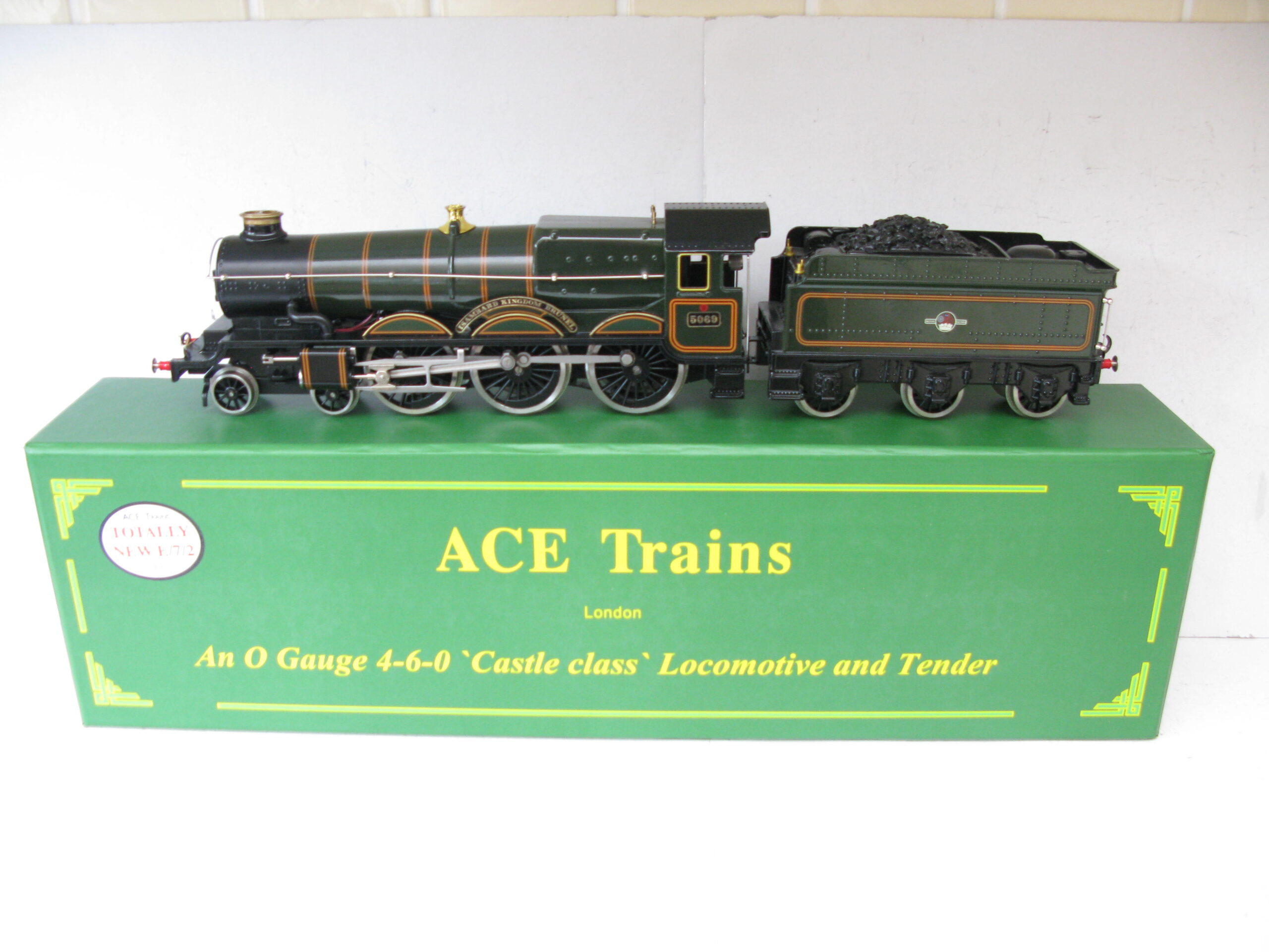 Ace 0 Gauge Modern issue E/7/2 BR (Ex GWR) Lined Green Loco & Tender Castle class ‘ISAMBARD KINGDOM BRUNEL’ No, 2/3-rail electric – Boxed – One of a range of Vintage style modern issue Steam outline Locomotive produced by ACE in the last few years. This is the BR lined Green castle class Loco & Tender ‘ISAMBARD KINGDOM BRUNEL’, suitable for 2 or 3 rail running, this example has been hardly used in Near Mint to Mint condition complete in original box, instructions and the GWR map that accompanied the Loco. A great opportunity to add this to your vintage and modern course scale collection.