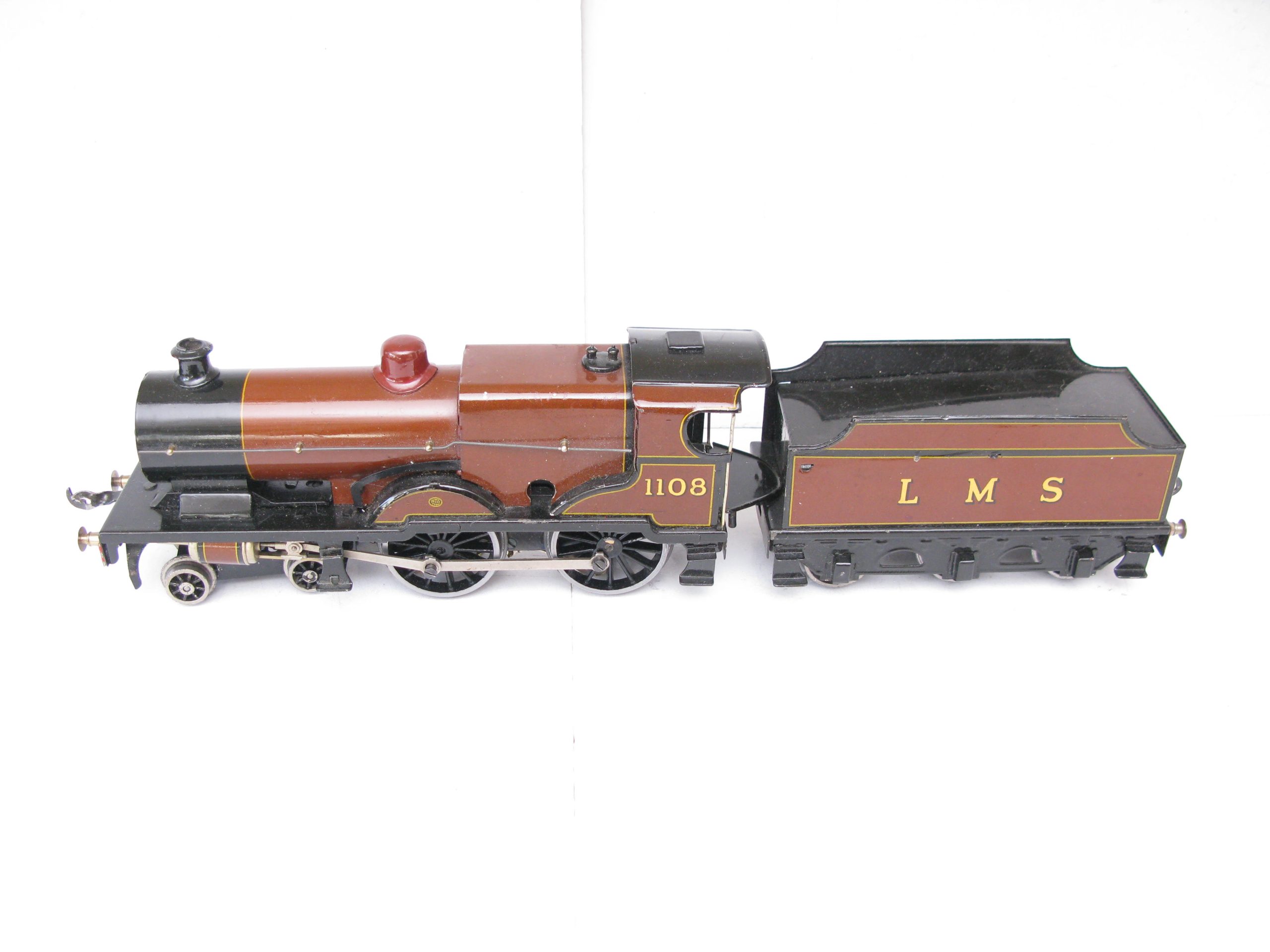 Bassett Lowke 0 Gauge 4-4-0 Loco & Tender LMS Brown ‘Compound’ No.1108, 3-rail electric – unboxed – Excellent