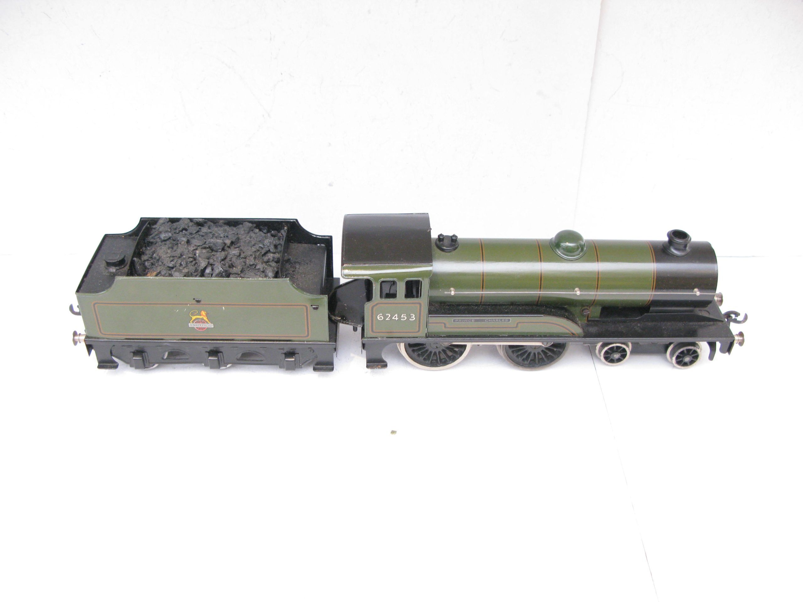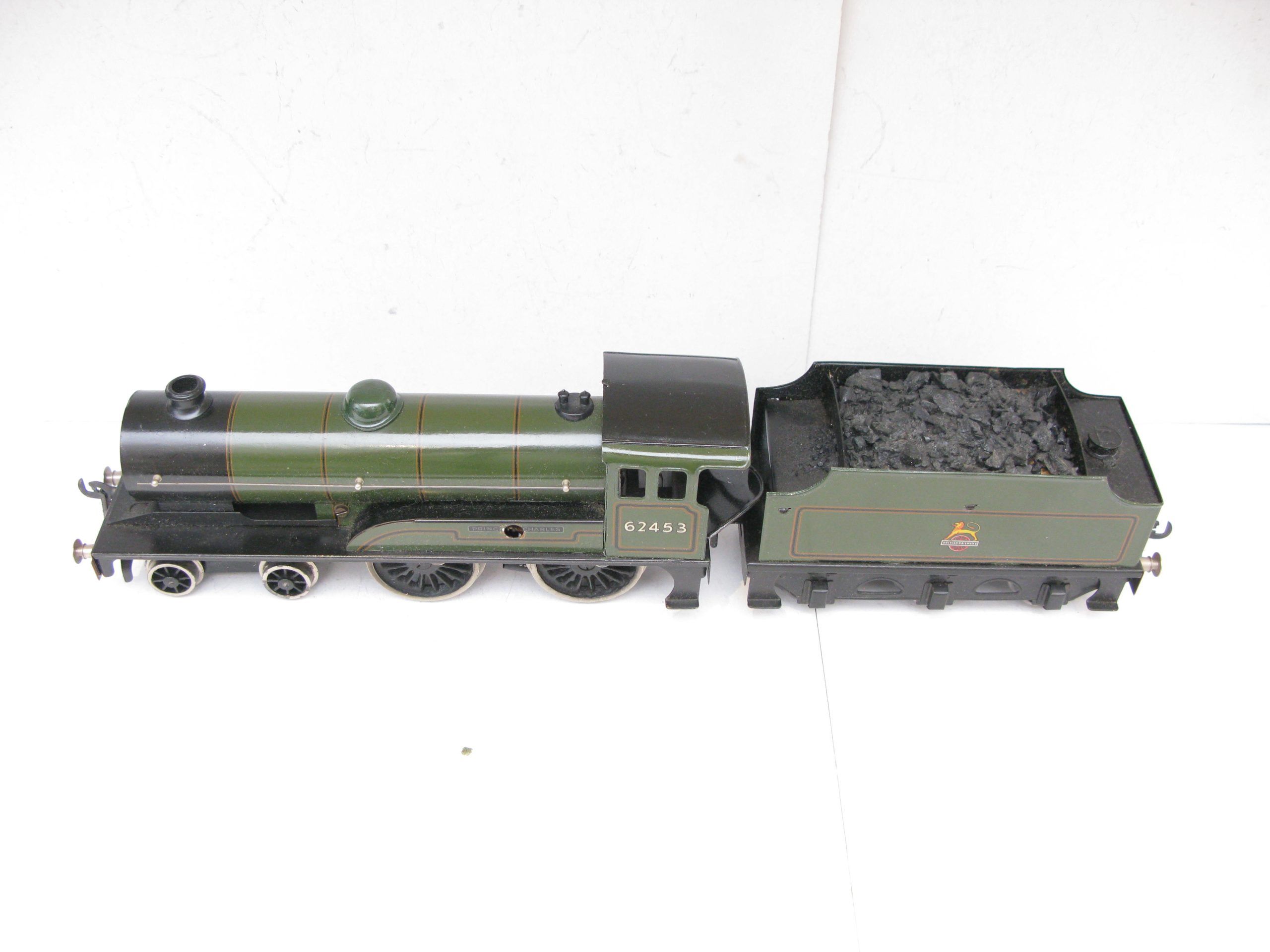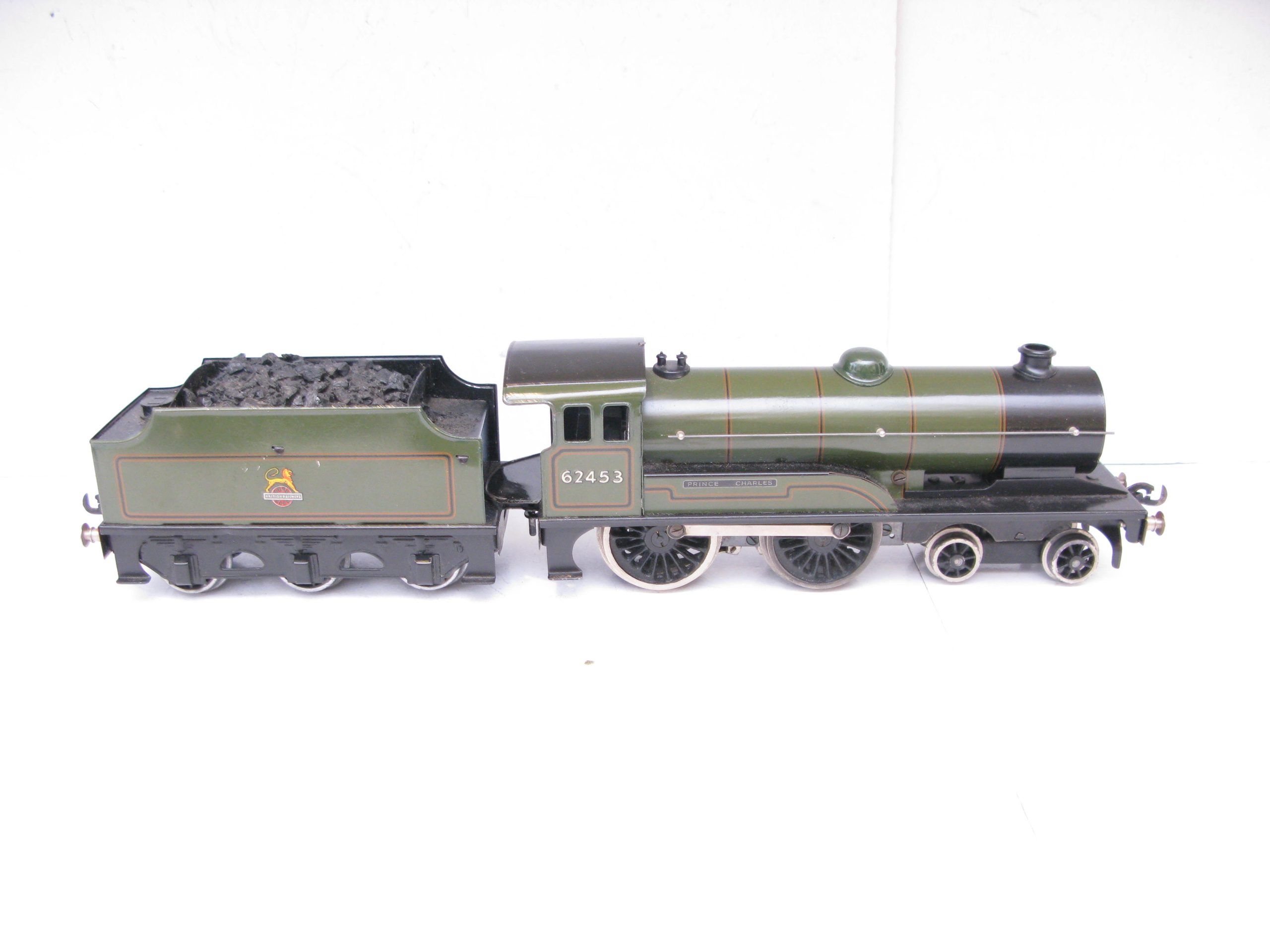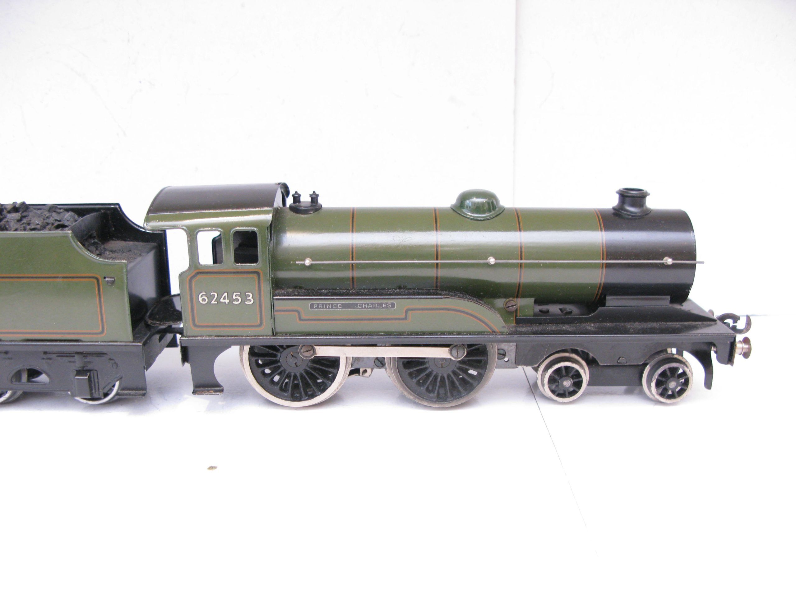 Bassett Lowke 0 Gauge 4-4-0 Locomotive & Tender BR Lined green ‘PRINCE CHARLES’ No.62453, 3-rail electric – Post war Bassett Lowke production and they produced an 0 Gauge 4-4-0 Locomotive & Tender in BR Lined Green ‘PRINCE CHARLES’ No. 62453 in 3-rail electric. Bassett Lowke produced these in BR green and BR blue, this version is in BR green, coal has been added to the inside of the tender otherwise Excellent condition overall, unboxed.
