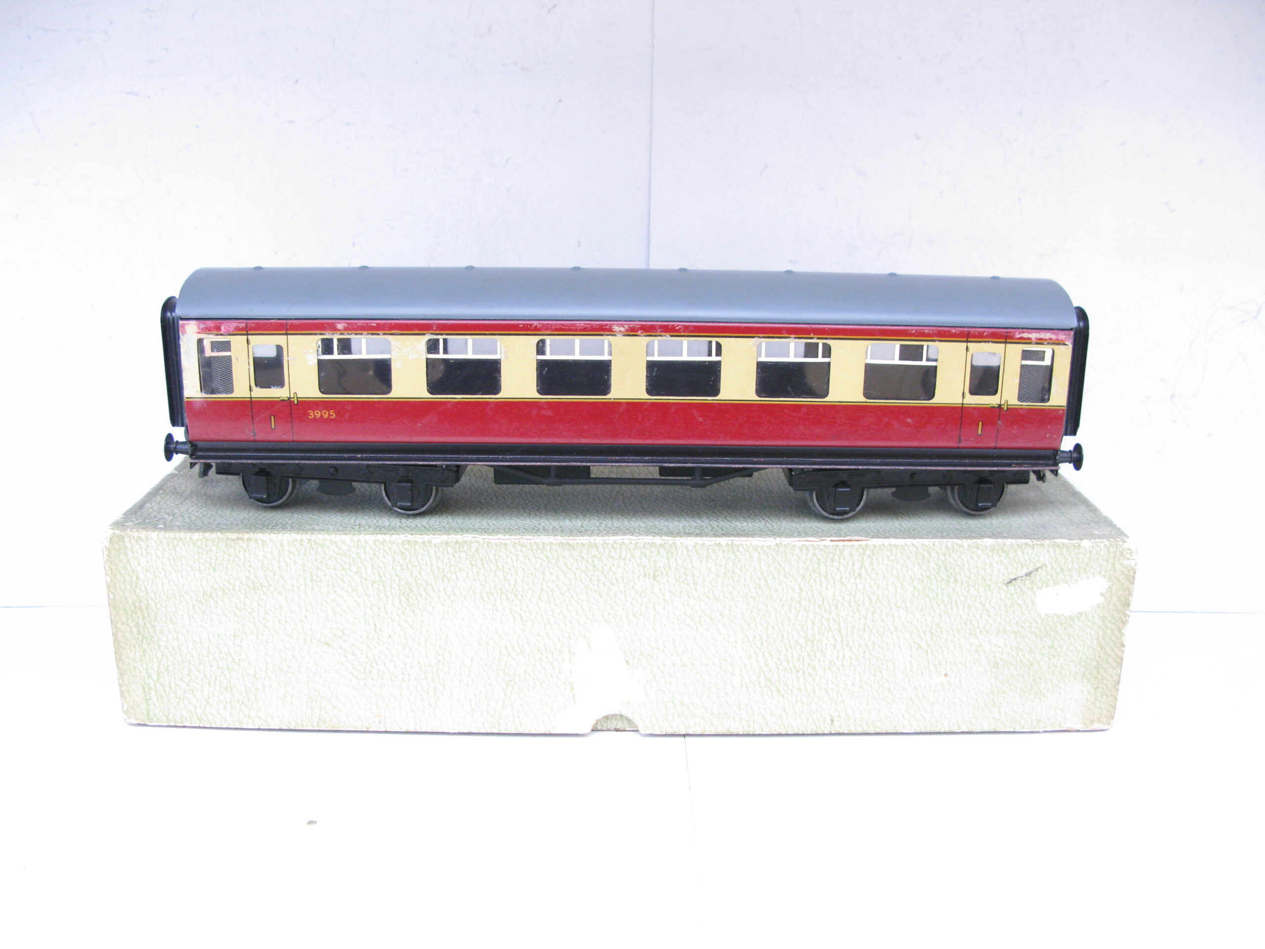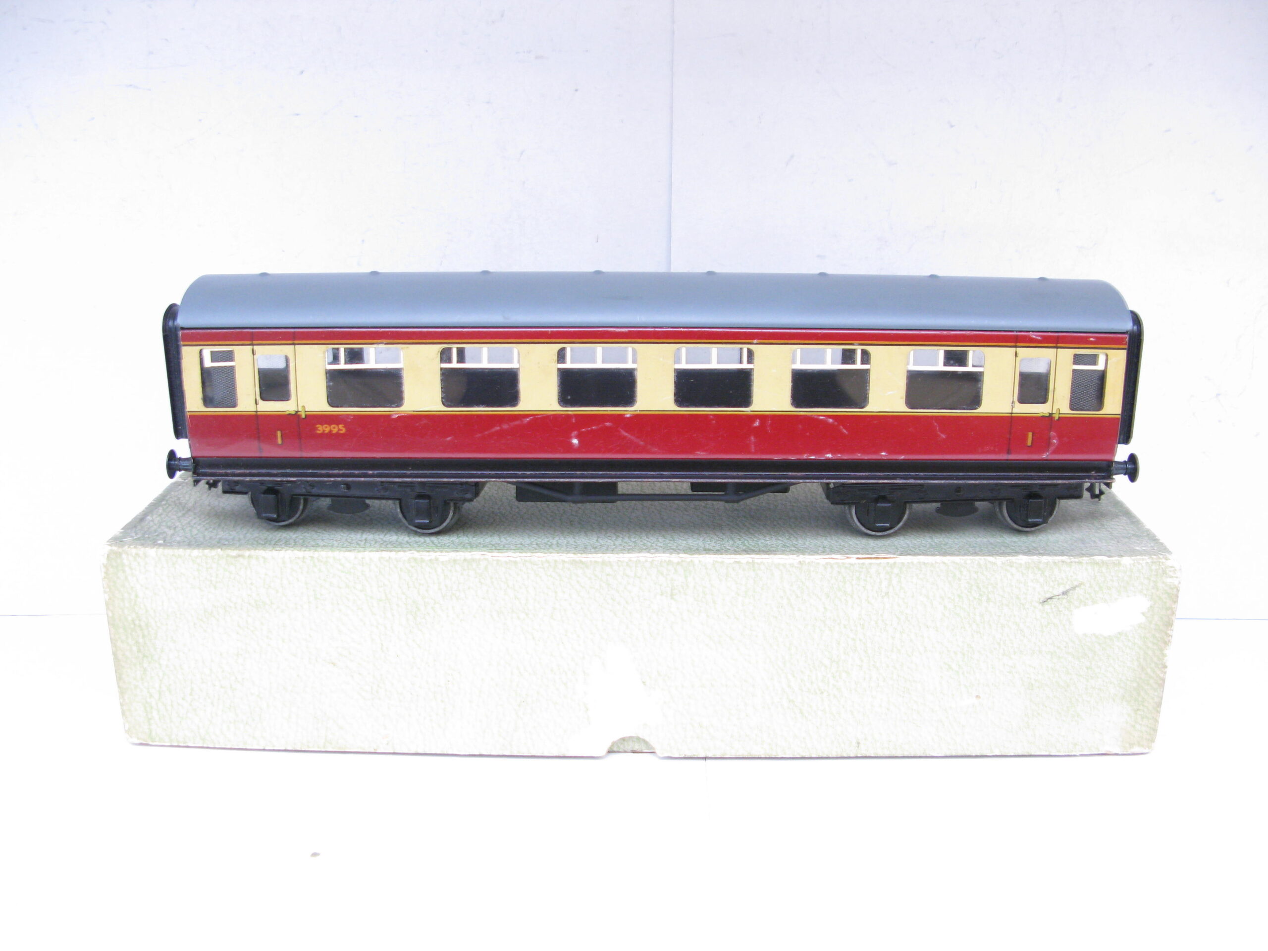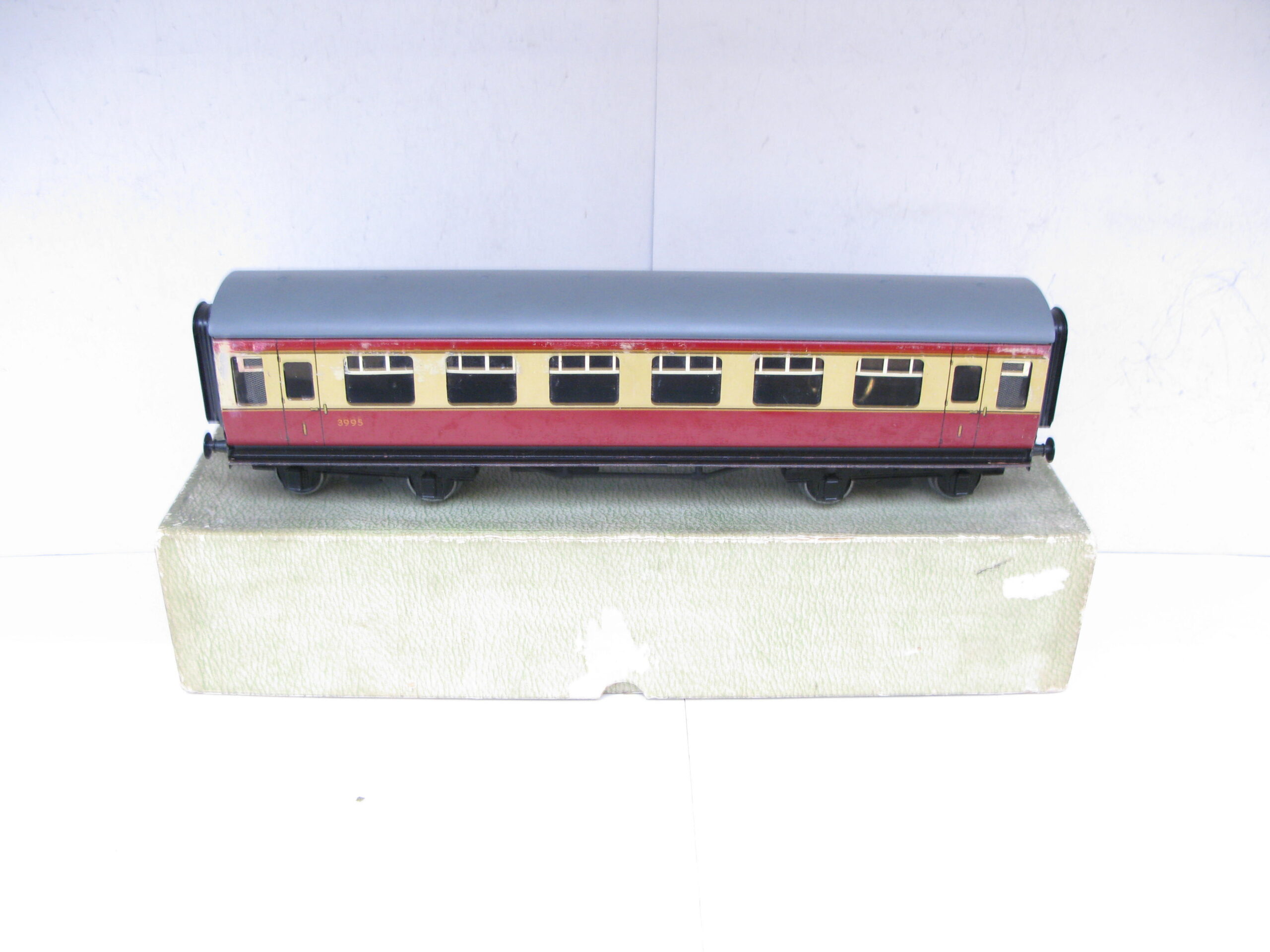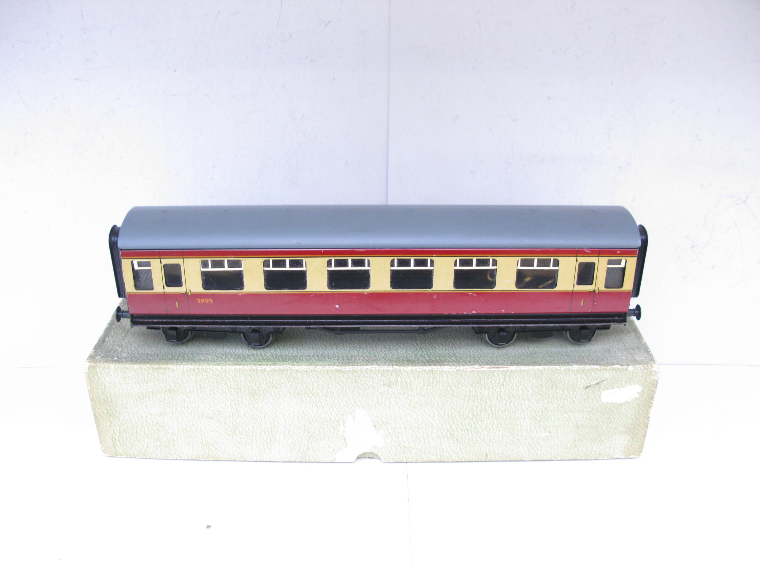 Bassett Lowke 0 Gauge BR Red & Cream All 1st Coach – Boxed – From the range of coaches produced by Bassett Lowke in the 1950’s in BR Red & Cream is this all 1st Passenger coach. There is some marks to the coach sides from the tissue in the box otherwise overall Excellent in Good/plus box, I will be listing other versions of this coach. A great opportunity to add this to your Bassett Lowke collection.