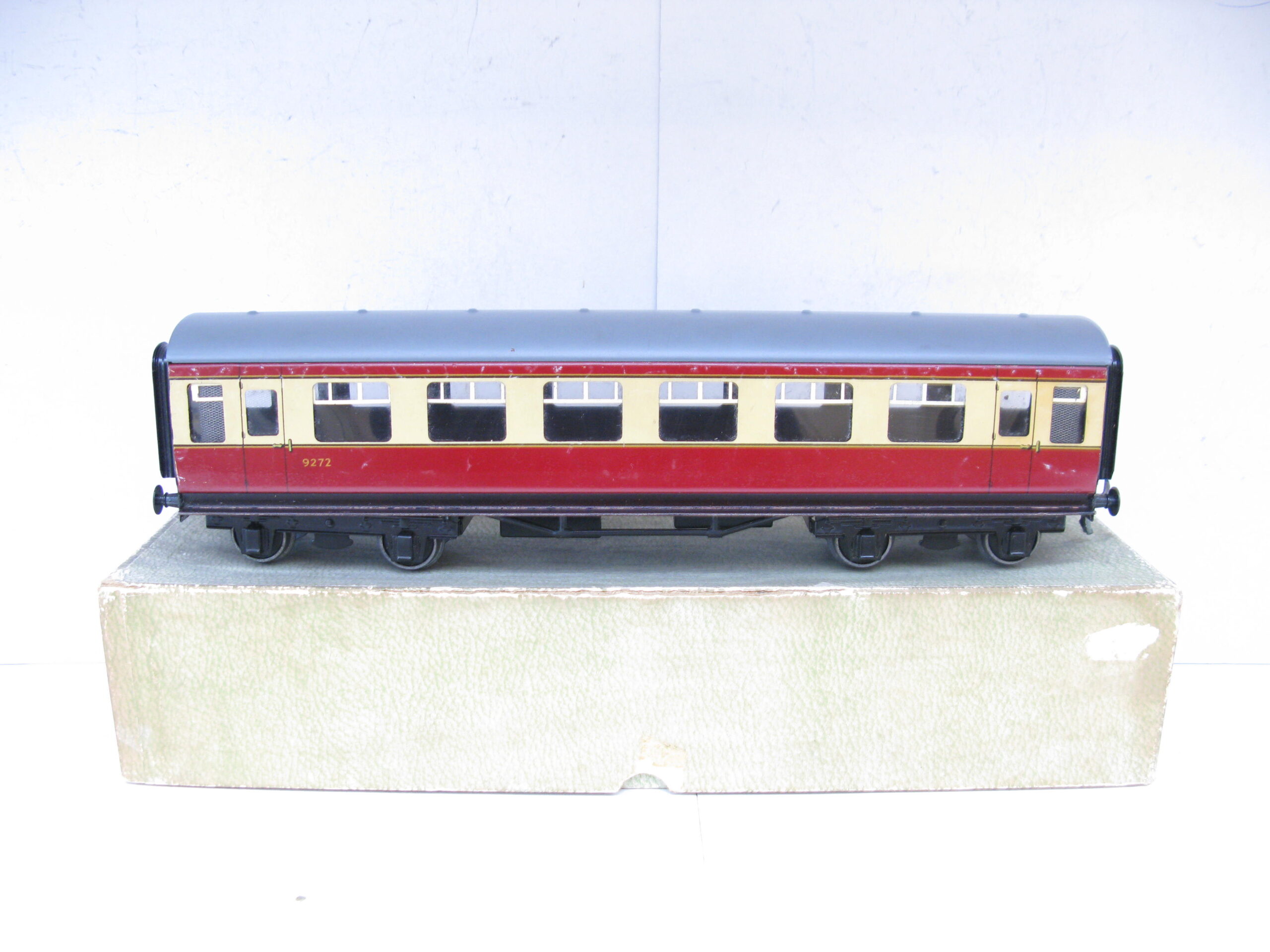 Bassett Lowke 0 Gauge BR Red & Cream All 3rd Coach – Boxed – From the range of coaches produced by Bassett Lowke in the 1950’s in BR Red & Cream is this all 3rd Passenger coach. There is some marks to the coach sides from the tissue in the box otherwise overall Excellent in Good/plus box, I will be listing other versions of this coach. A great opportunity to add this to your Bassett Lowke collection.