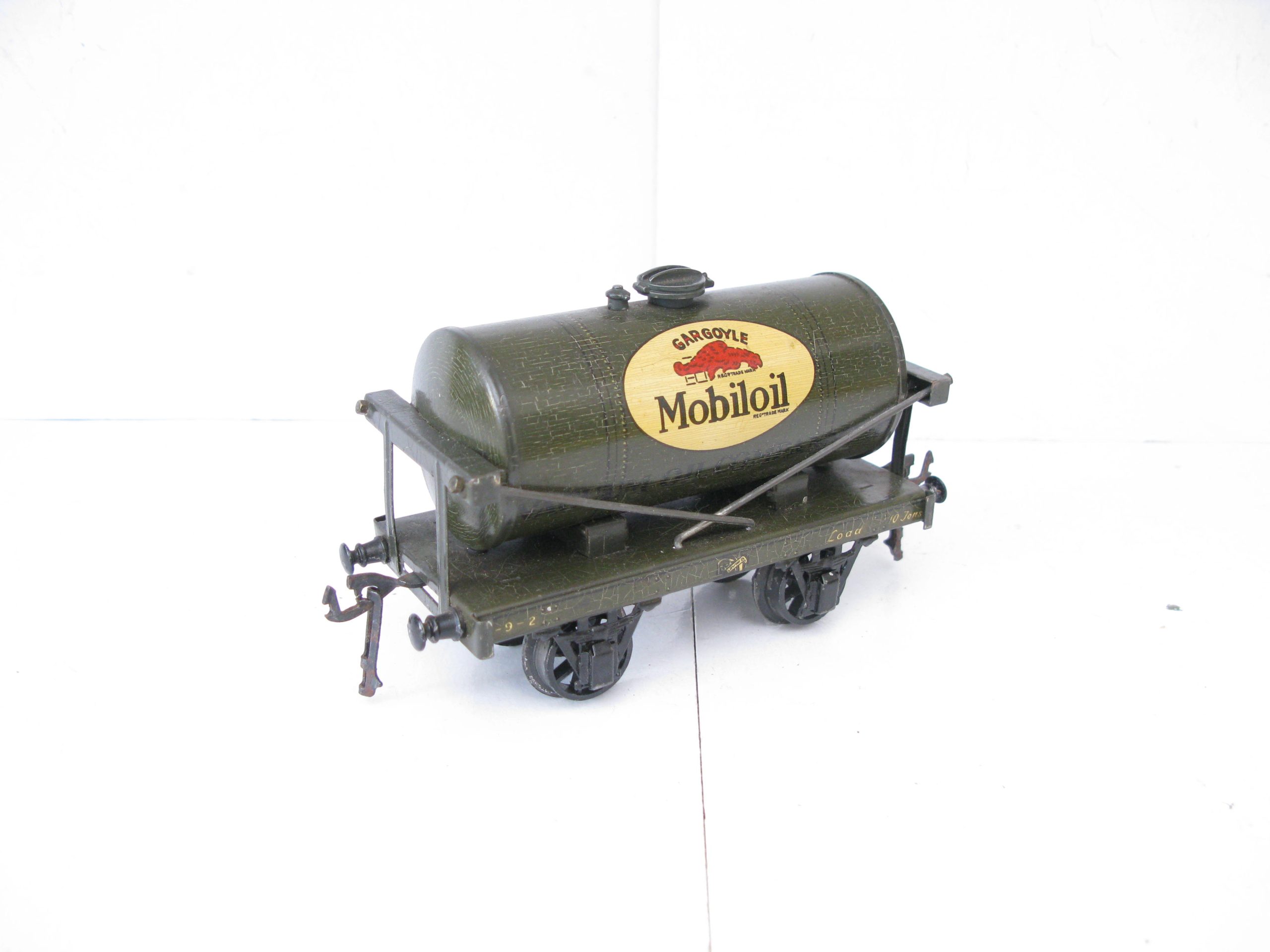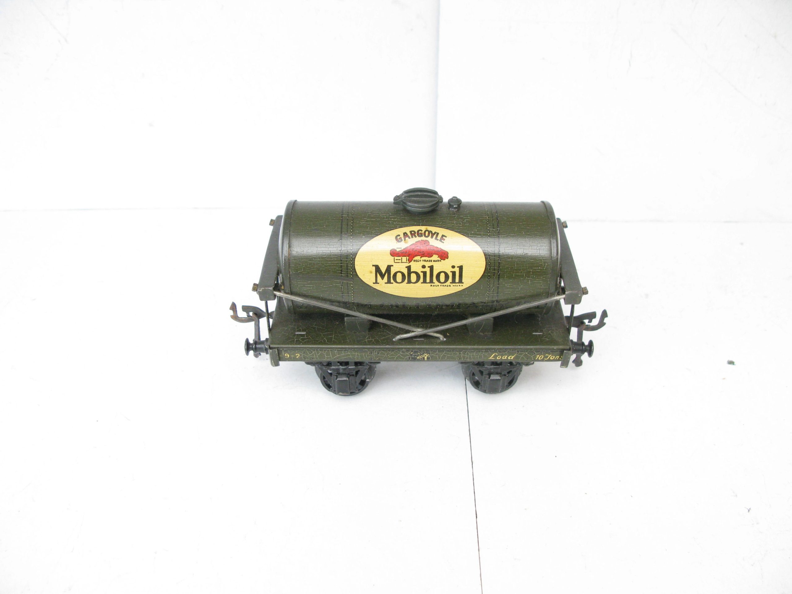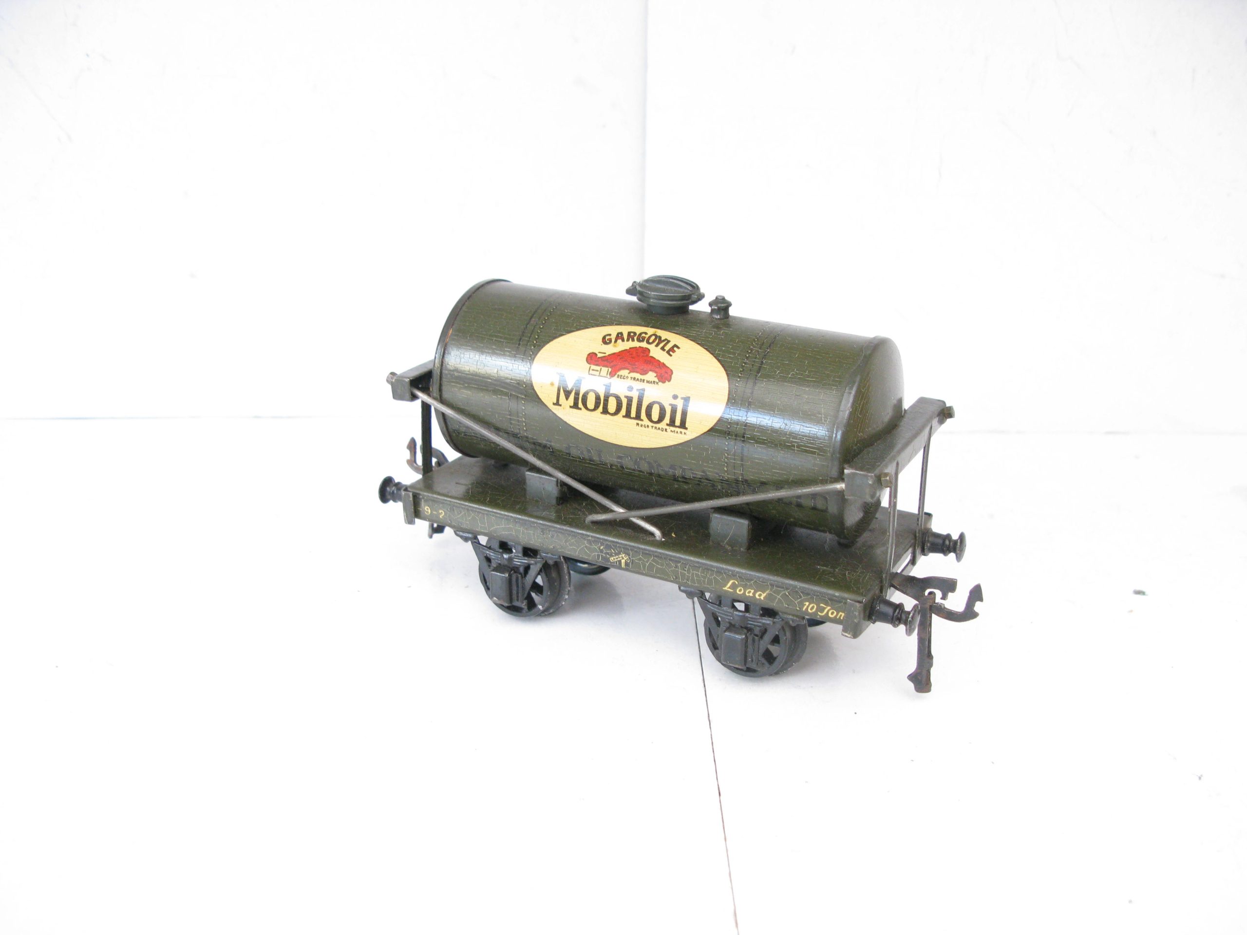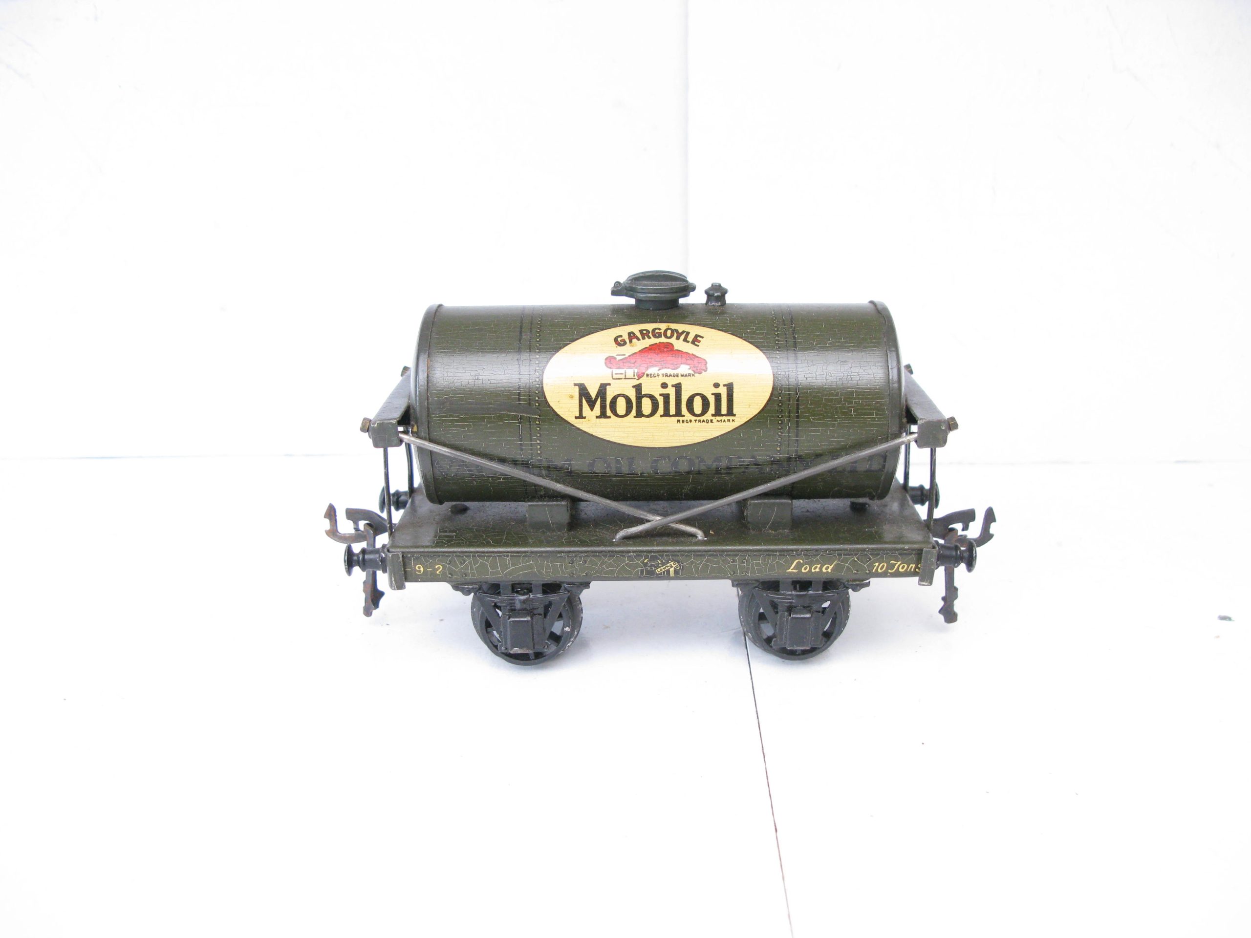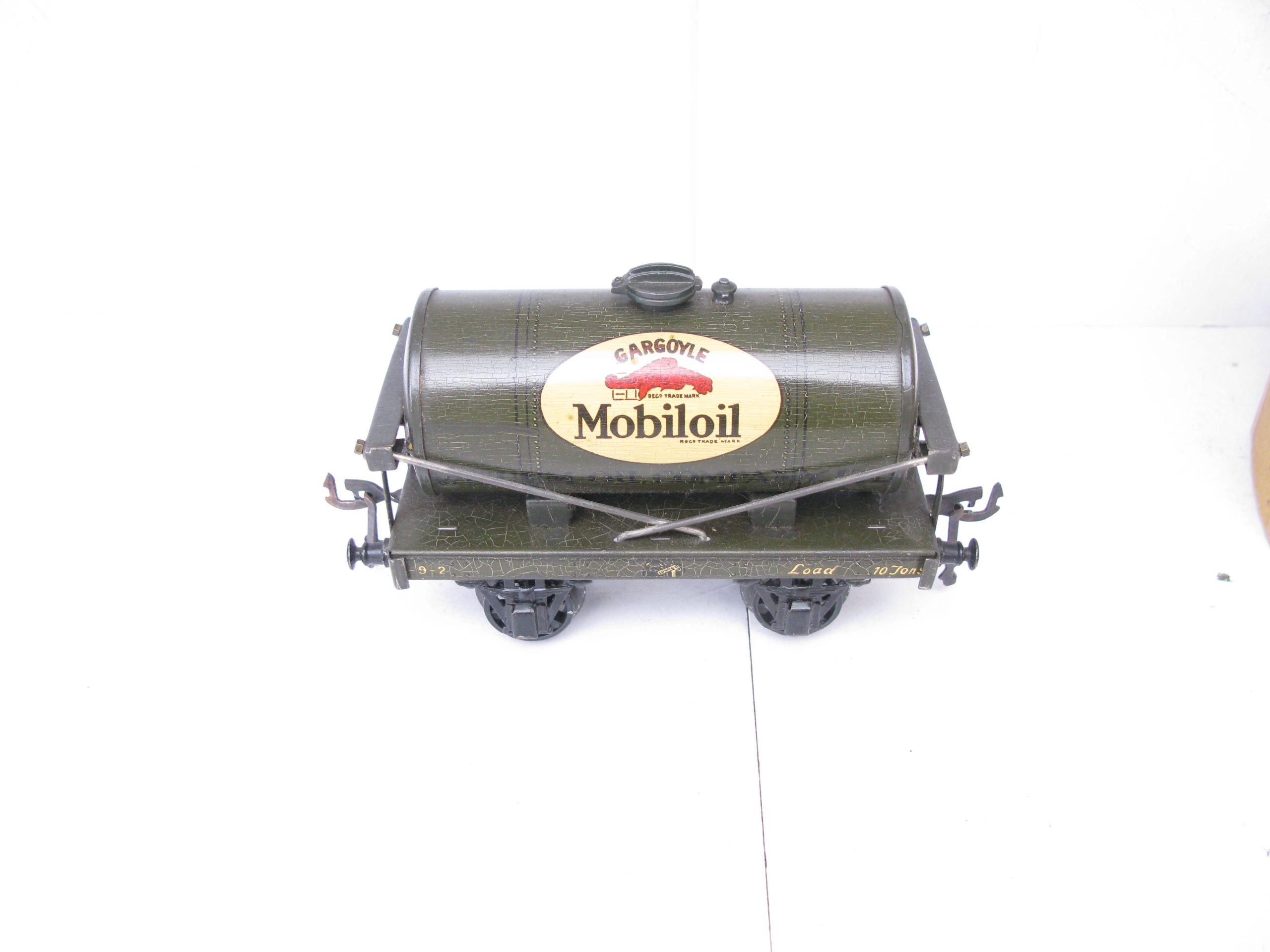 Bassett Lowke (Winteringham) 0 Gauge MOBILOIL Tanker Part Boxed – Here is a Winteringham produced for Bassett Lowke Tin printed ‘MOBILOIL’ Tanker in dark Grey color with the ‘MOBILOIL’ logo to the centre of both sides of the Tank, overall Excellent in the box base. Bassett Lowke produced 4 different version of this Tanker and here is the ‘MOBILOIL’ in Dark Grey. A great addition to your Bassett Lowke Vintage collection