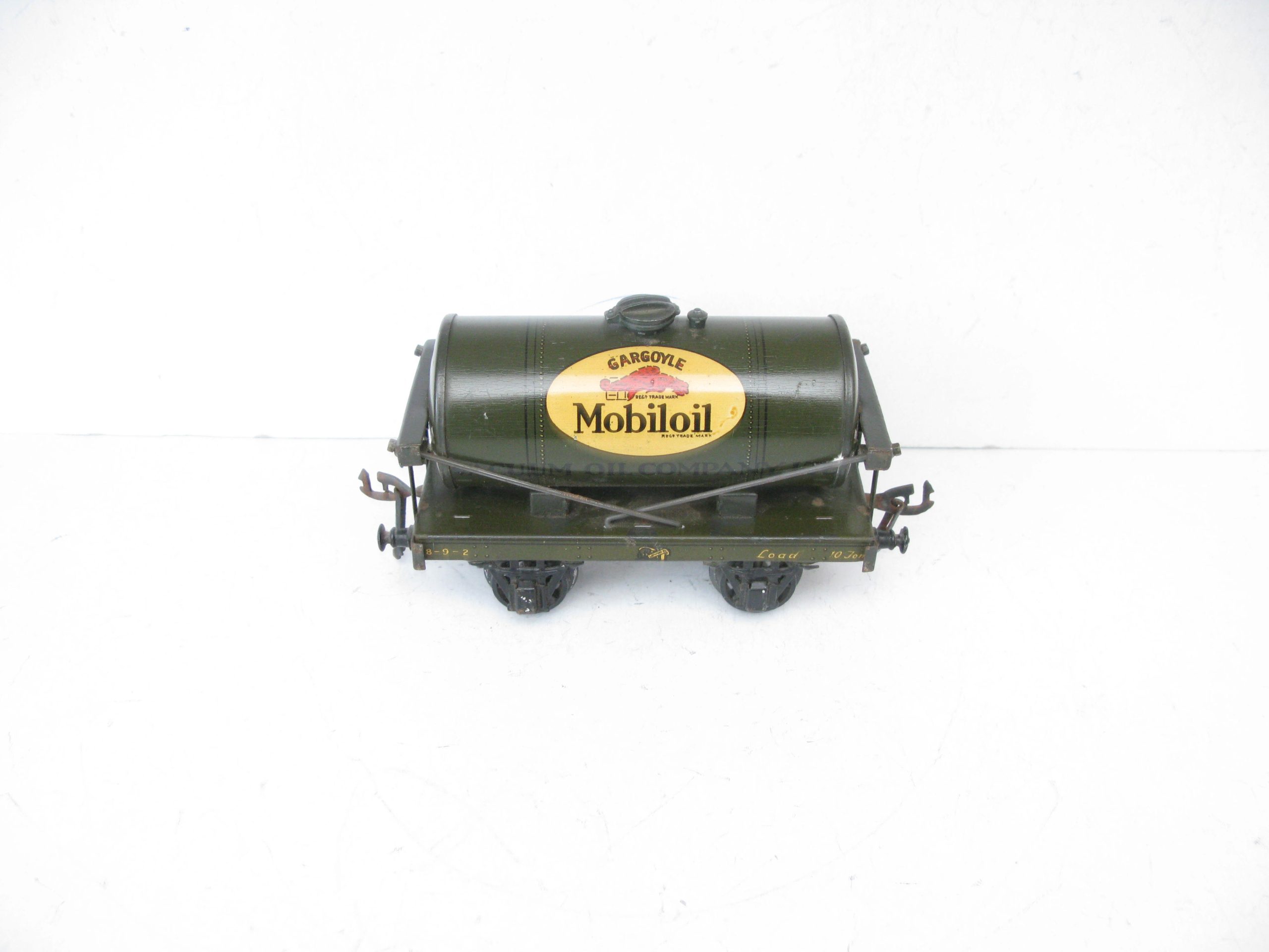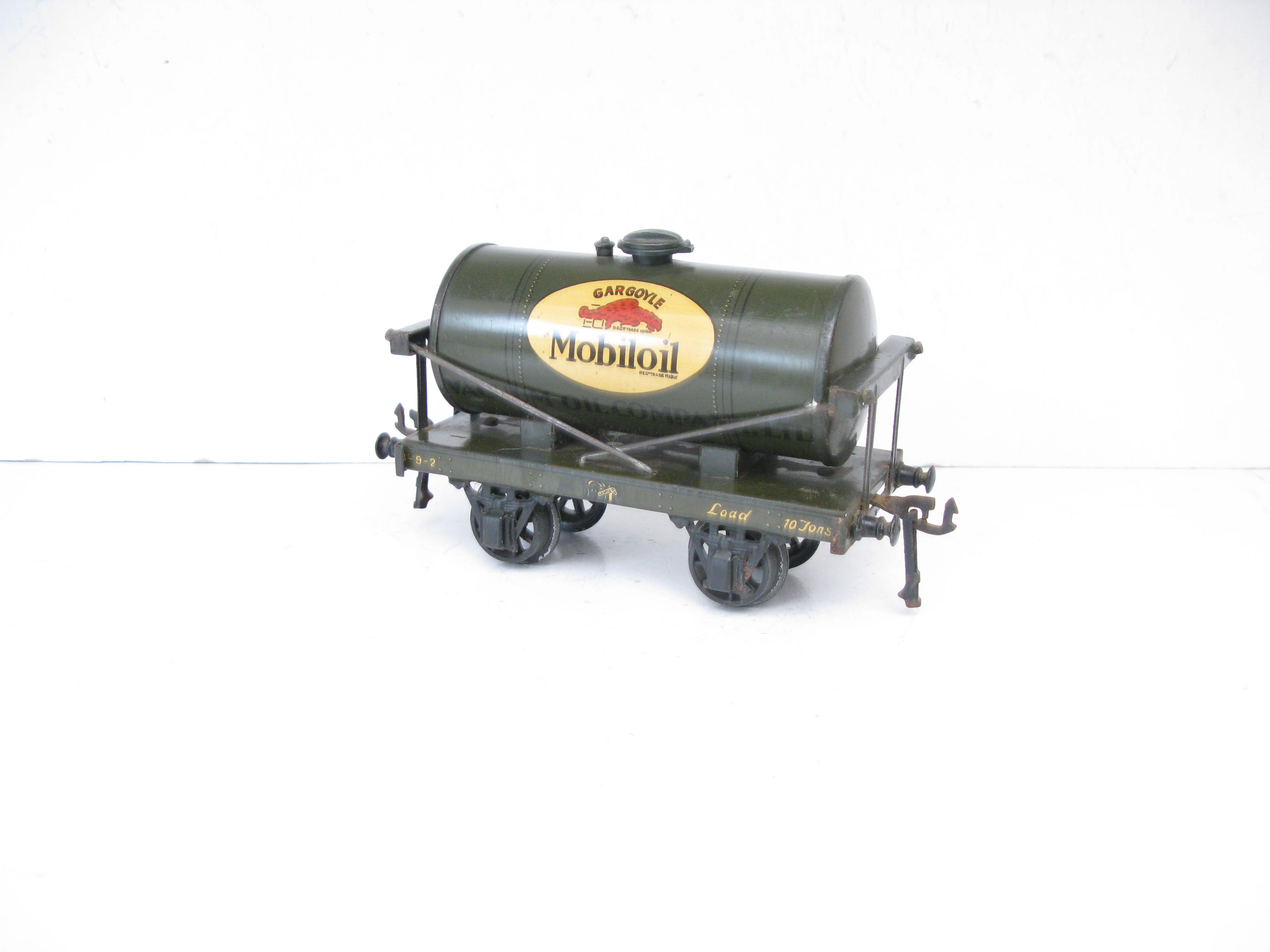 Bassett Lowke (Winteringham) 0 Gauge MOBILOIL Tanker – unboxed – Here is a Winteringham produced for Bassett Lowke Tin printed MOBILOIL Tanker, overall Good/plus to Excellent unboxed. Bassett Lowke produced 4 different version of this Tanker and here is the MOBILOIL in Dark Grey. A great addition to your Bassett Lowke Vintage collection