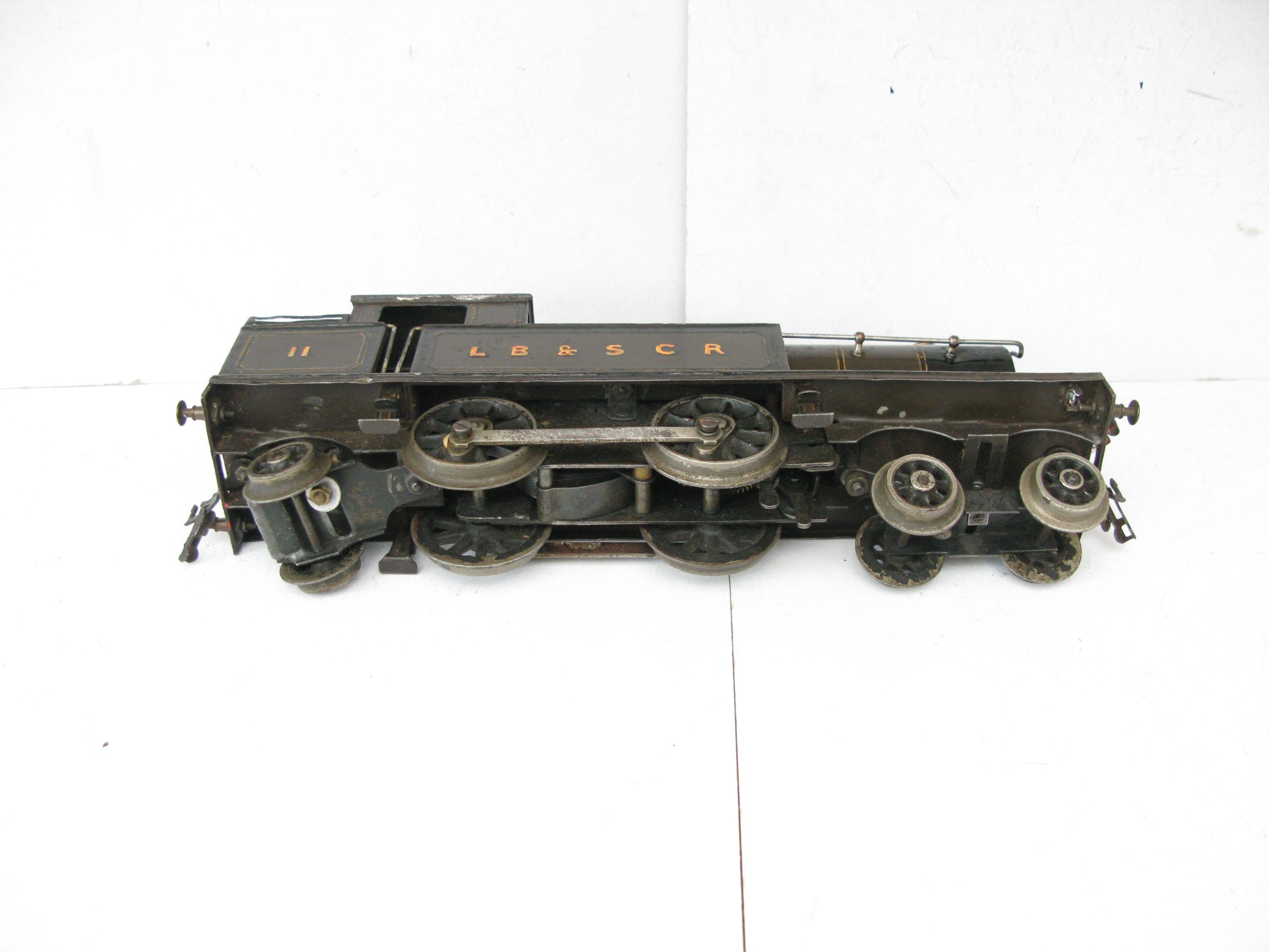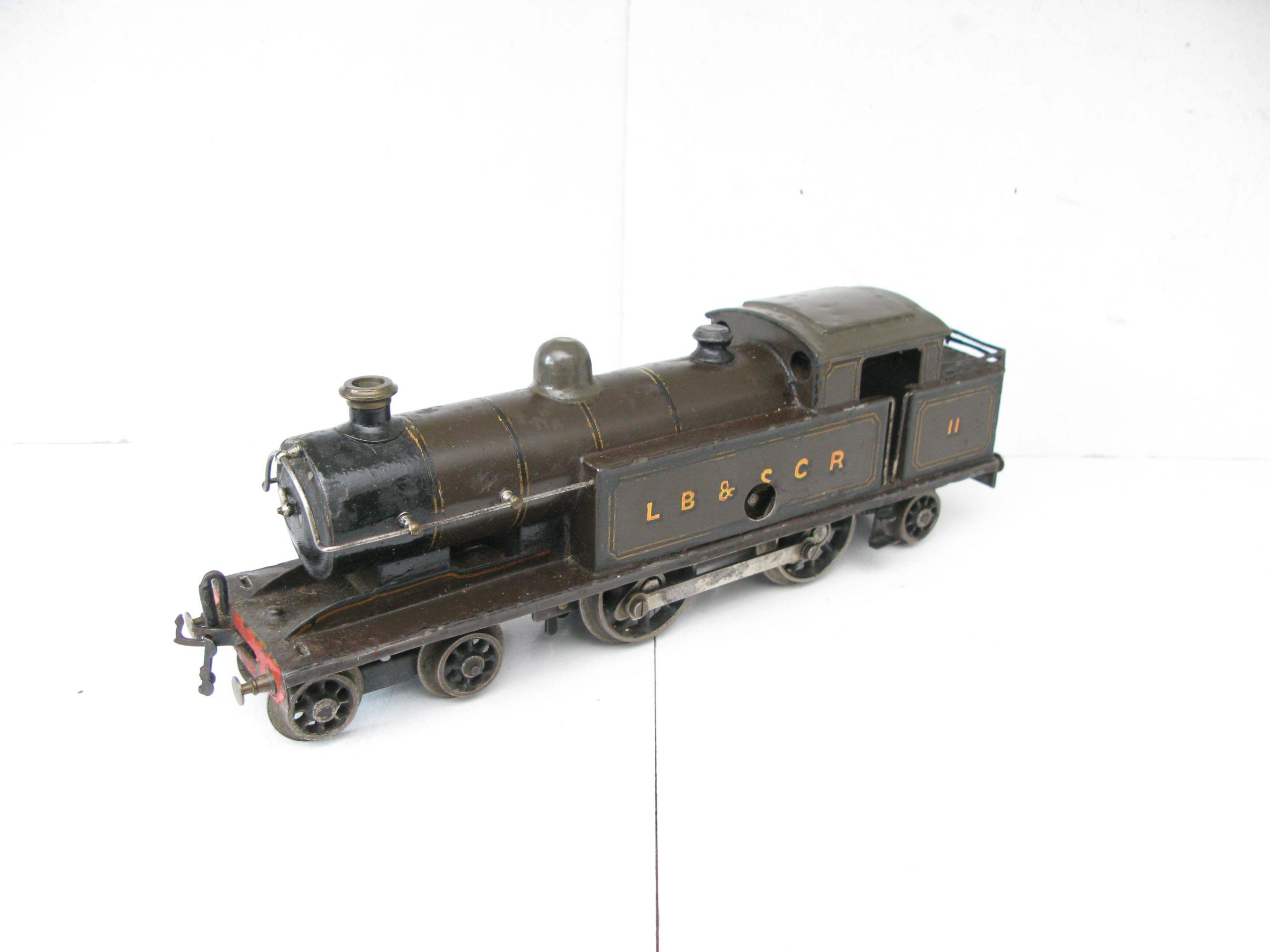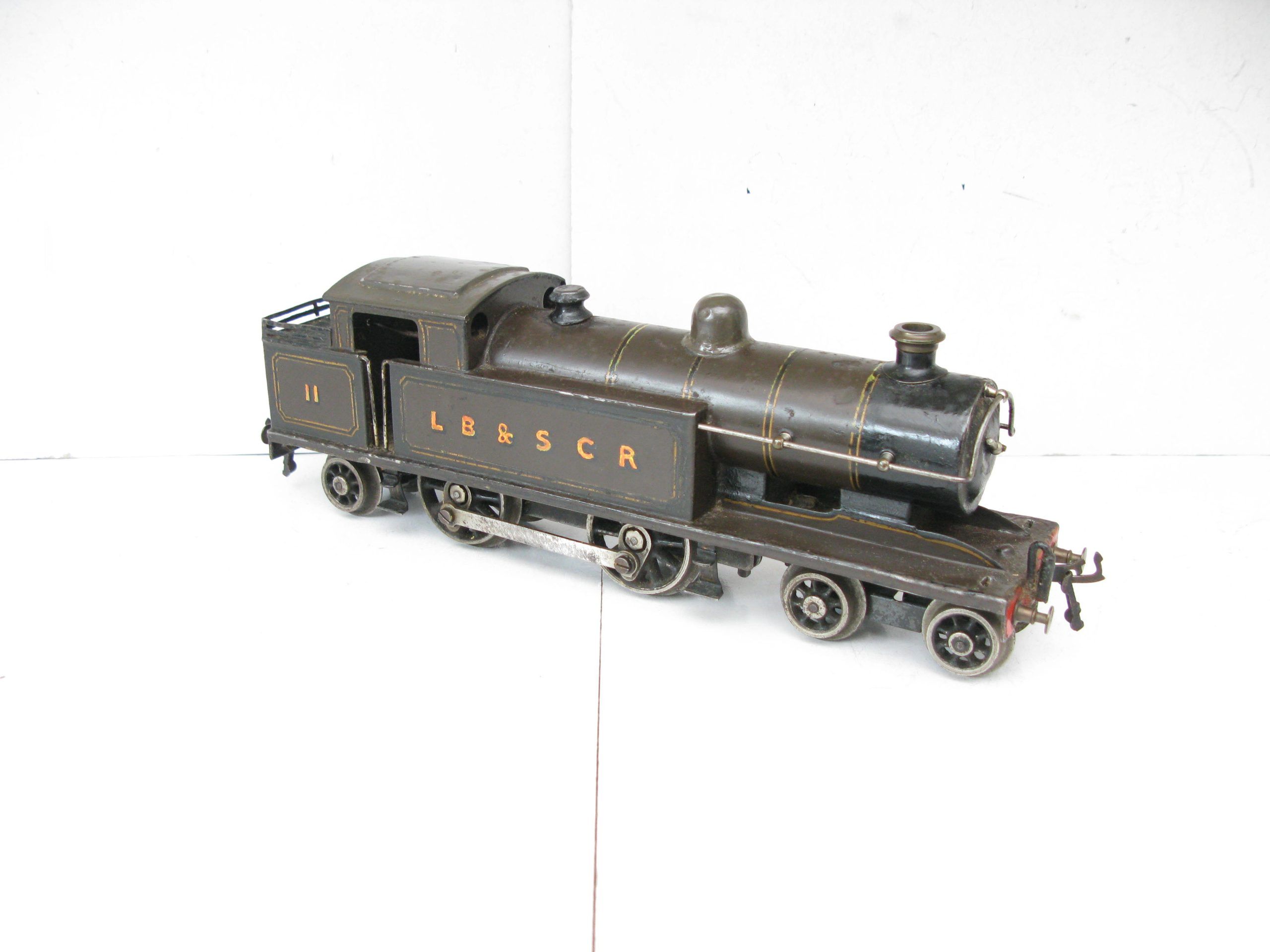 Bing 0 Gauge LB&SCR 4-4-2 ‘PRECURSOR’ Tank Loco, Clockwork – unboxed – Fair to Good – Produced for the Englich market is the LB&SCR (London Brighton & south Coast Railway) precursor Tank loco in Clockwork. This example has been retouched in a number of areas but still has some resemblance of its originality, overall Fair to Good