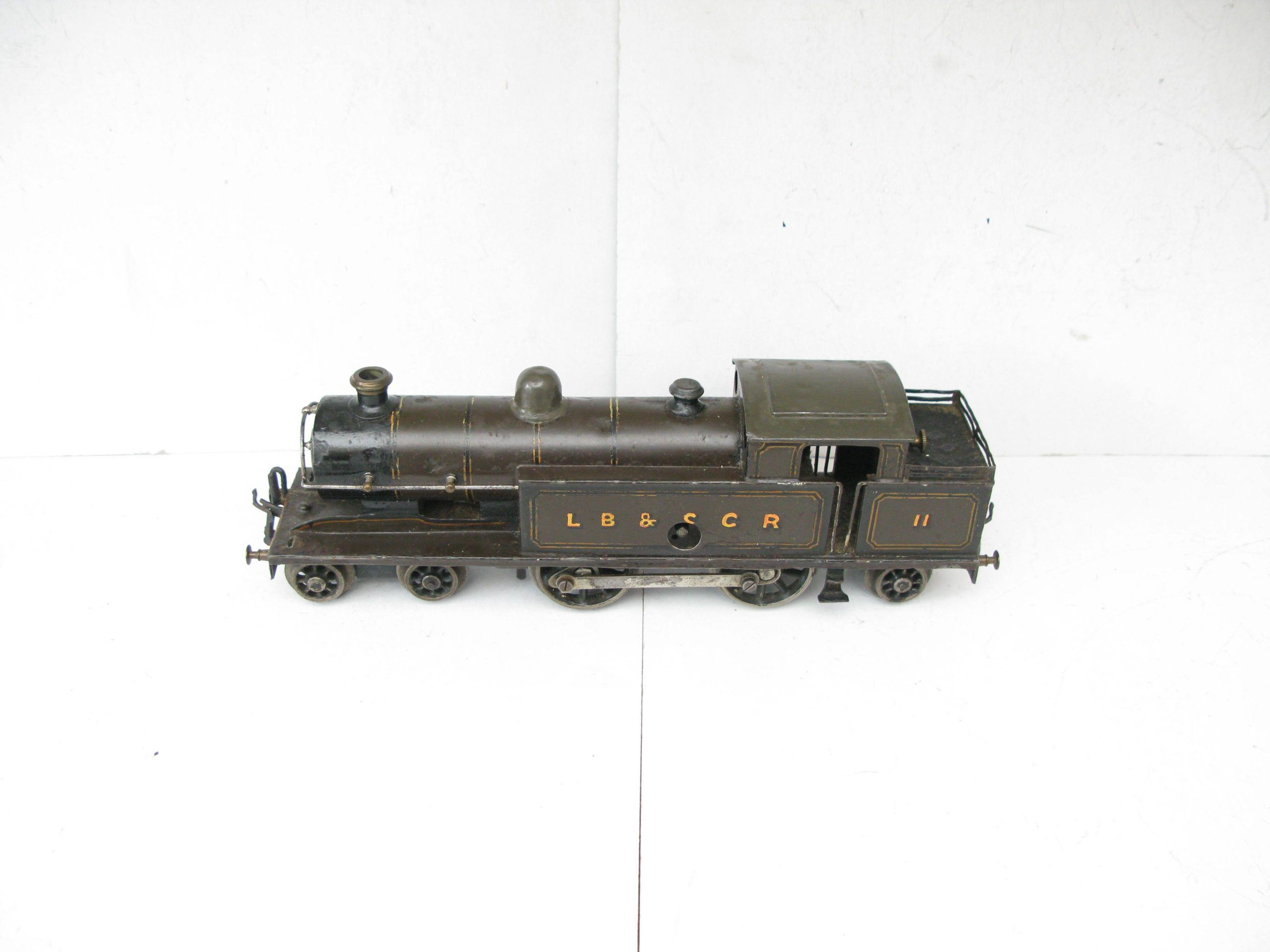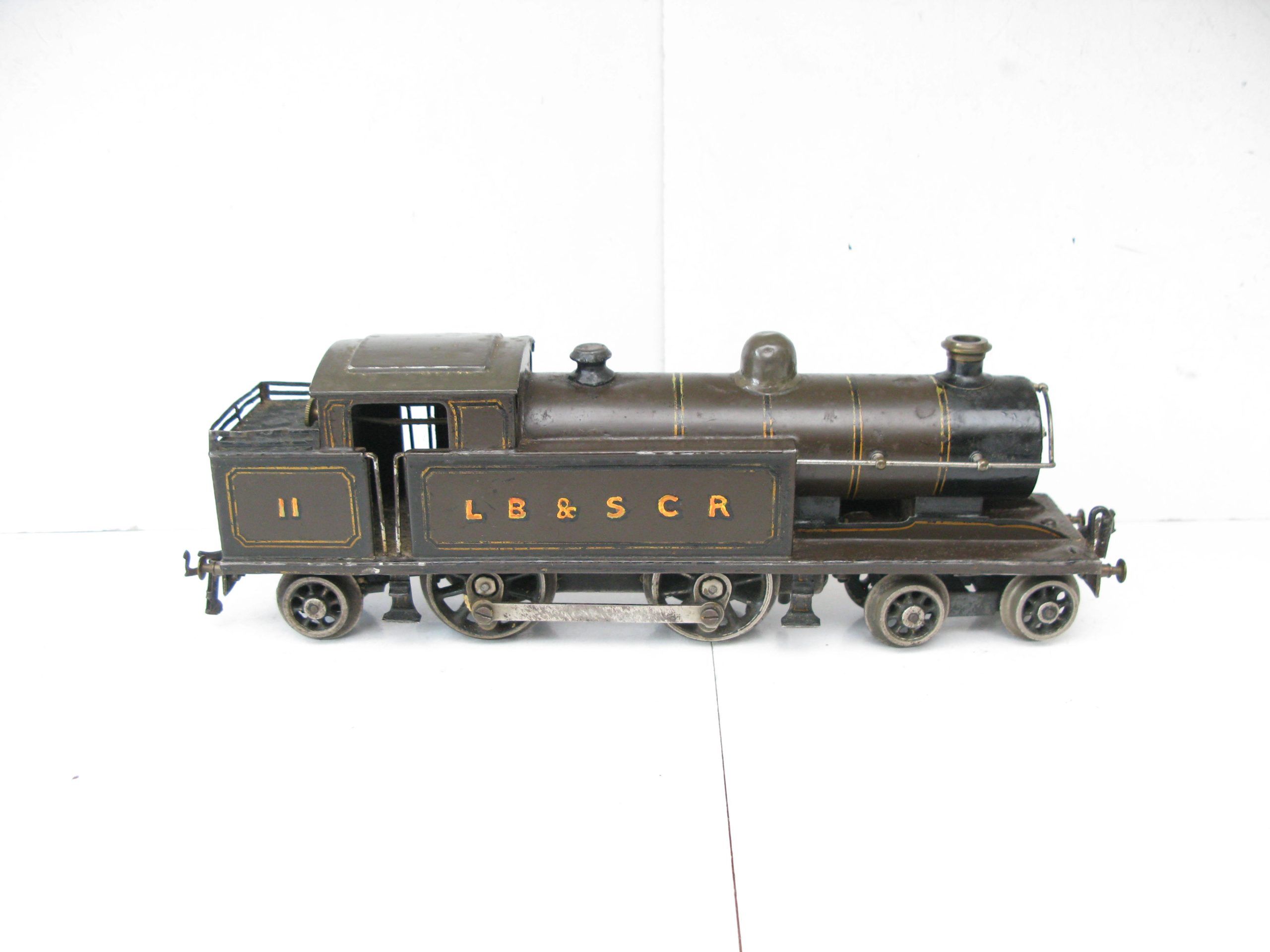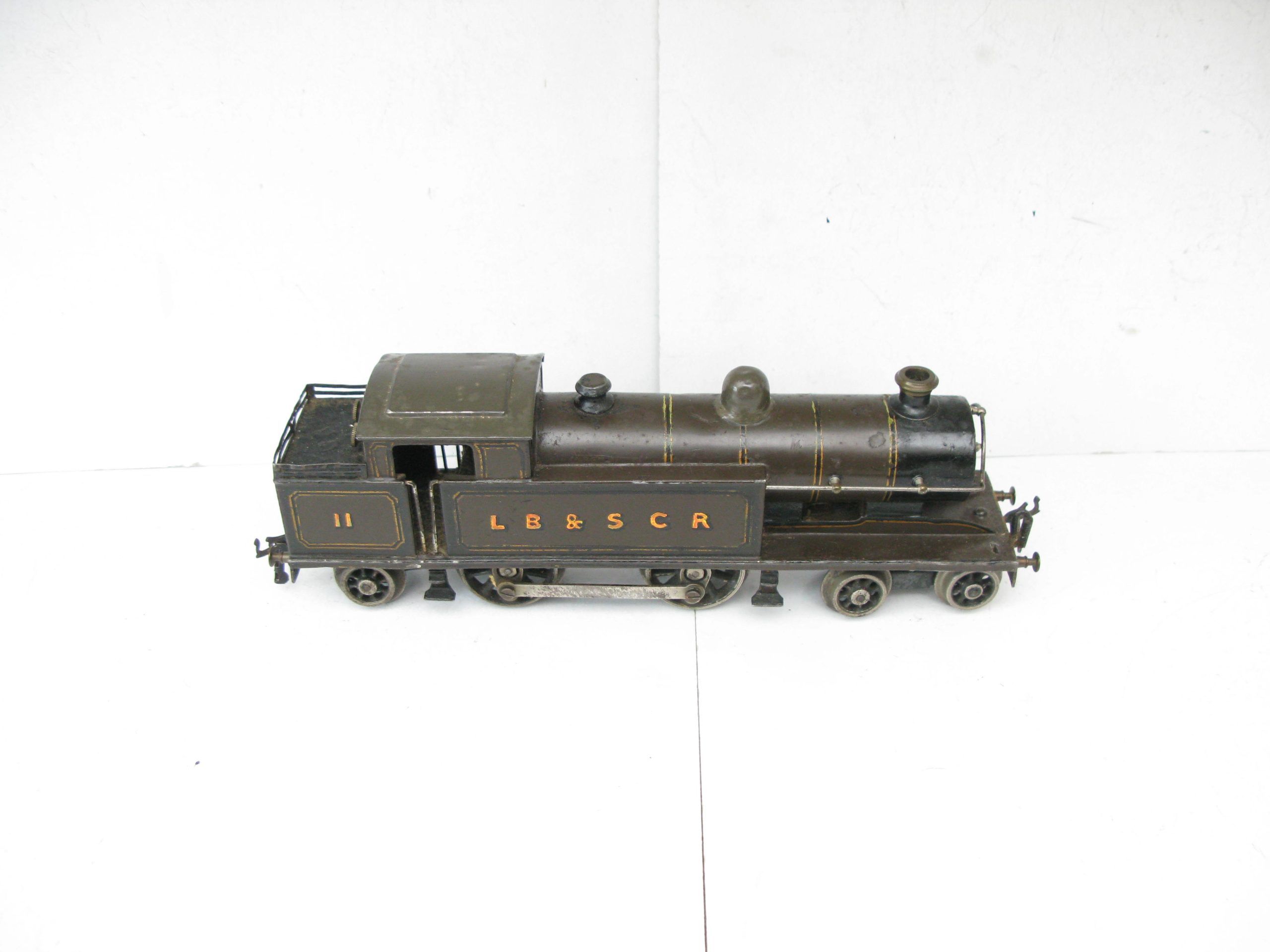 Bing 0 Gauge LB&SCR 4-4-2 ‘PRECURSOR’ Tank Loco, Clockwork – unboxed – Fair to Good – Produced for the Englich market is the LB&SCR (London Brighton & south Coast Railway) precursor Tank loco in Clockwork. This example has been retouched in a number of areas but still has some resemblance of its originality, overall Fair to Good