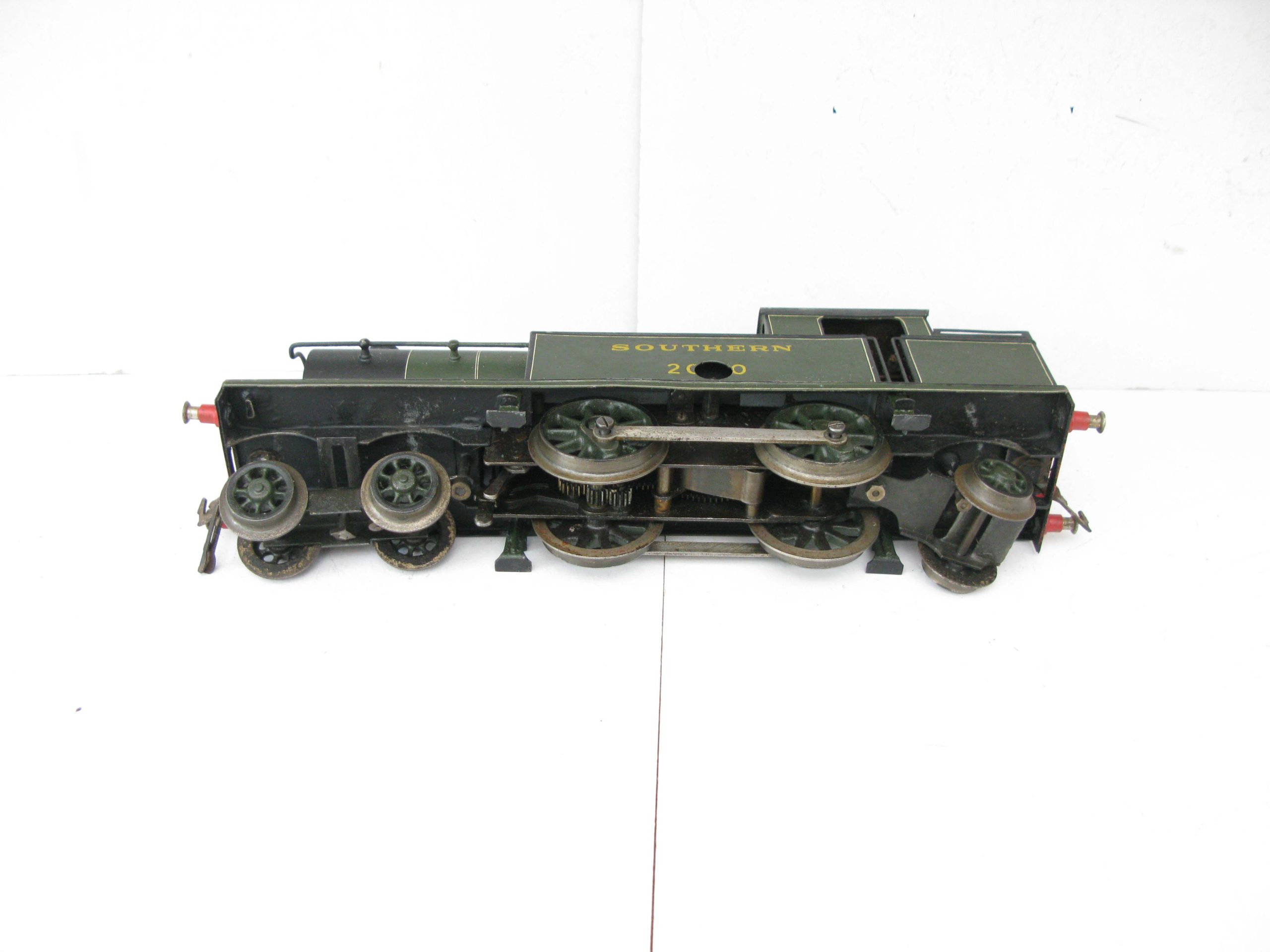 Bing 0 Gauge Southern 4-4-2 ‘PRECURSOR’ Tank Loco, Clockwork – Repainted – unboxed – Good – This is a Bing Precursor Tank loco that has been prefessionally repainted in lined Sounthern Green, there is a little lining loss on the boiler band by the front of the tank as shown in the pictures otherwise professionally presented. Overall Very Good