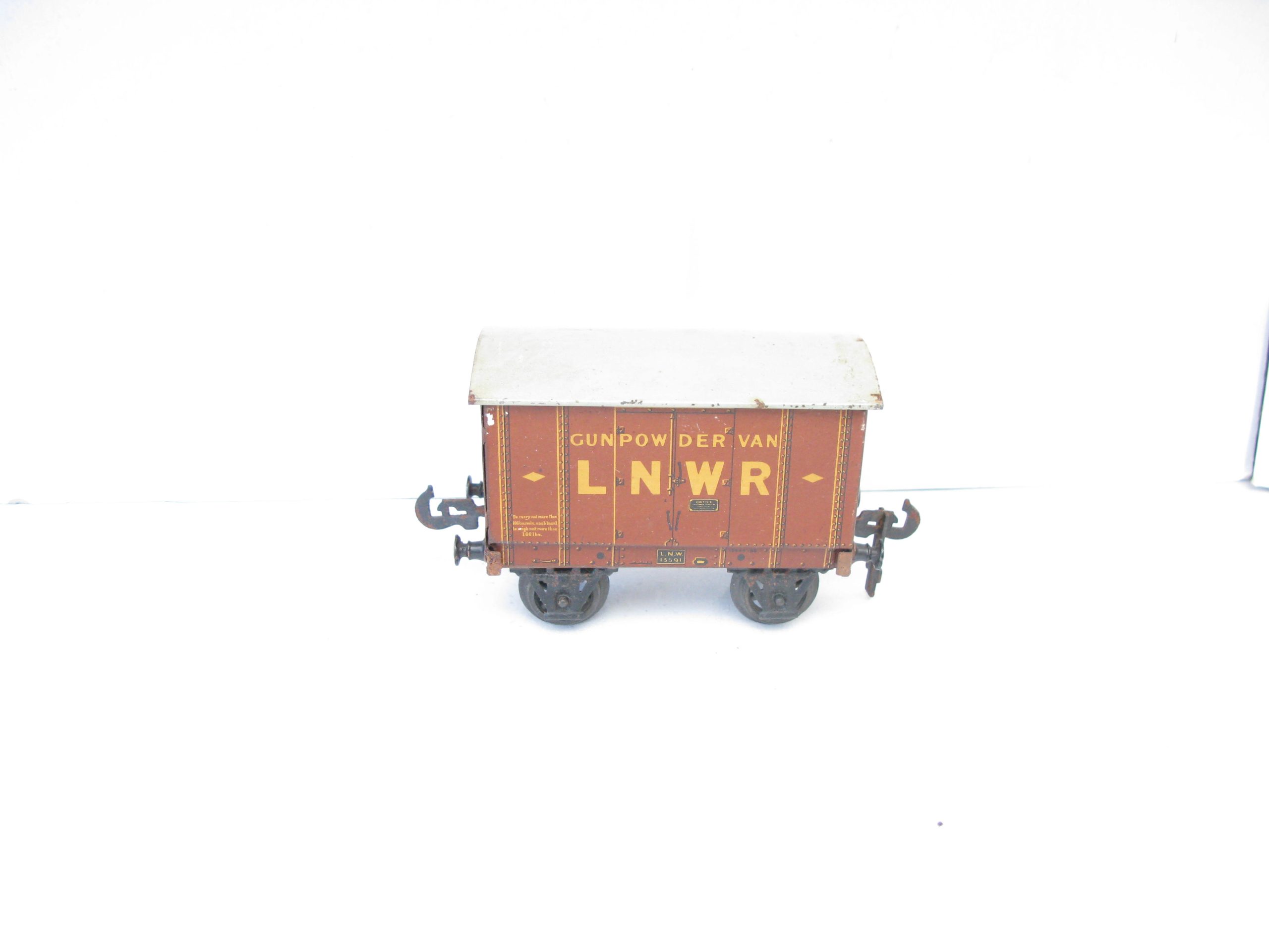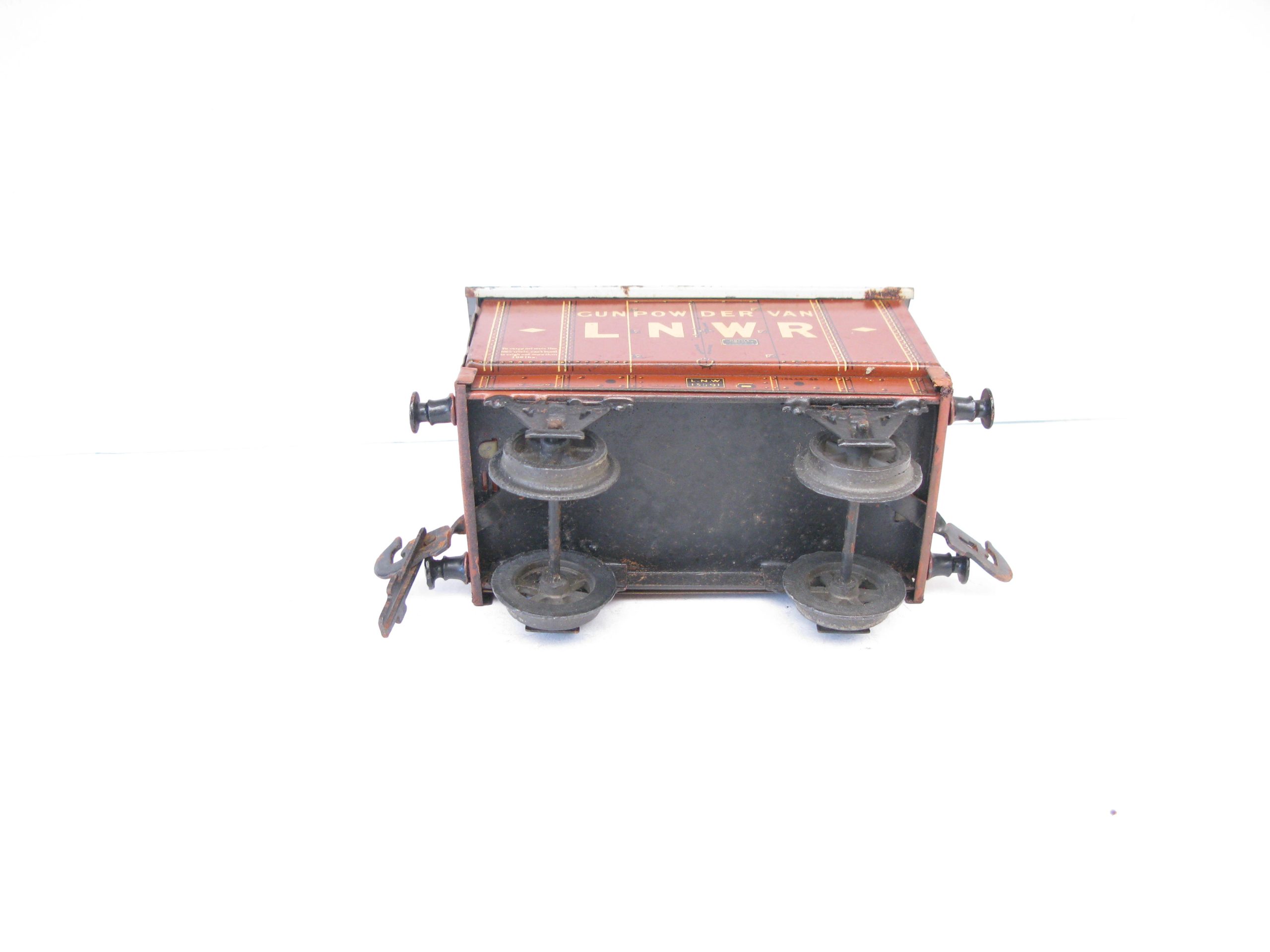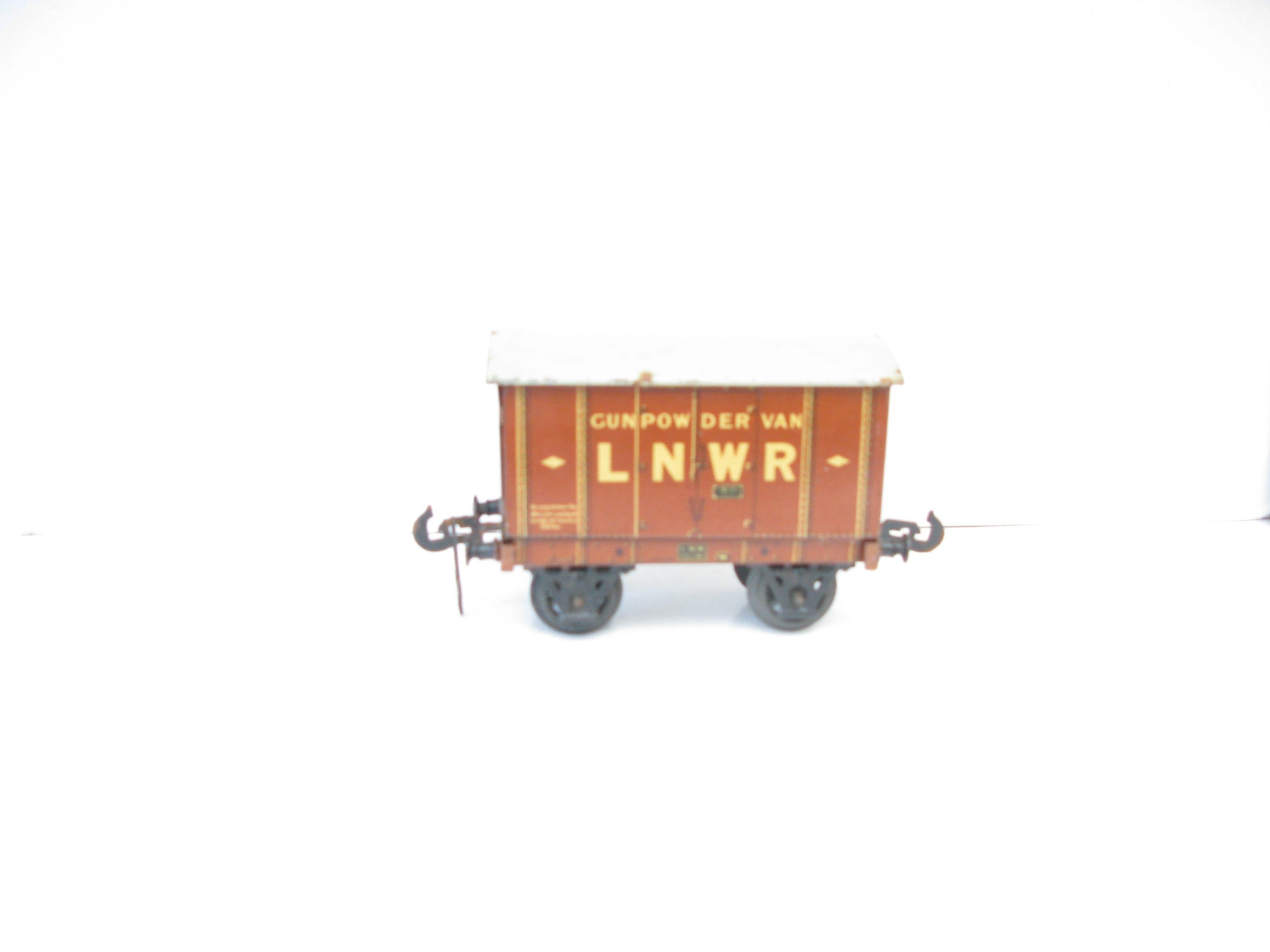 Carette 0 Gauge LNWR ‘GUNPOWDER’ Van – unboxed – Here we have from the range of Carette wagon for the British market the pre 1st world war LNWR Tin Printed ‘GUNPOWDER’ van. Brown body with off white lettering to the sides, A hard to find wagon in this condition, overall Excellent, unboxed, a great addition to any Vintage toy train collection