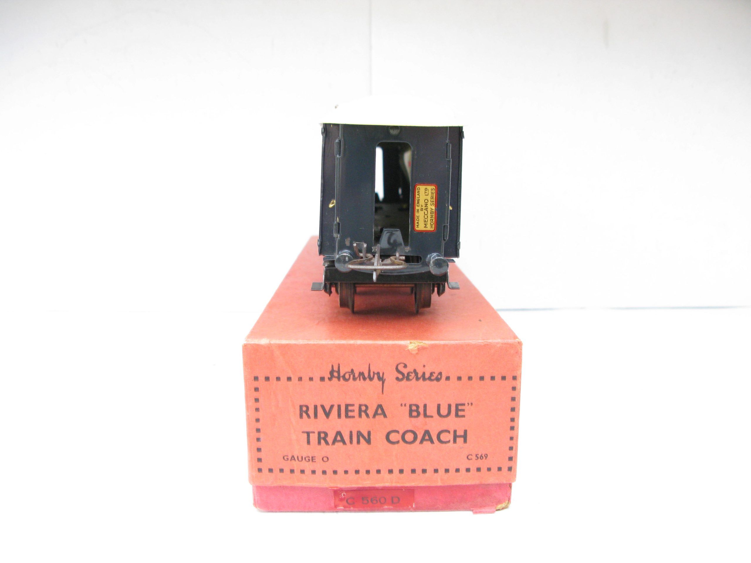 French Hornby 0 Gauge wagon-lits Grand European Express Dining Car – Boxed  – This French Hornby blue and gold Wagon-Lits Grand European Express Dining car, Hornby made 2 version of this coach the sleeping car and Dining car and here we have the Dining car. There are a few light marks to the sides but overall Excellent plus, the roof has been expertly repainted all contained in an Excellent riviera blue Train coach box. A great addition to any Hornby 0 Gauge collection