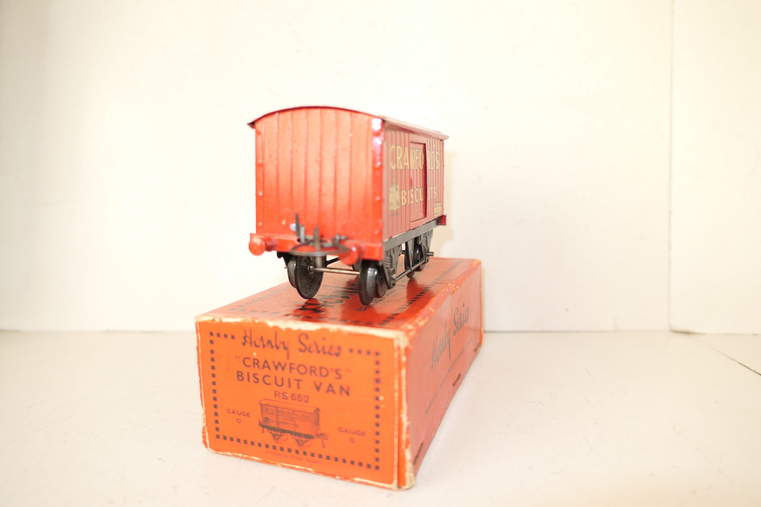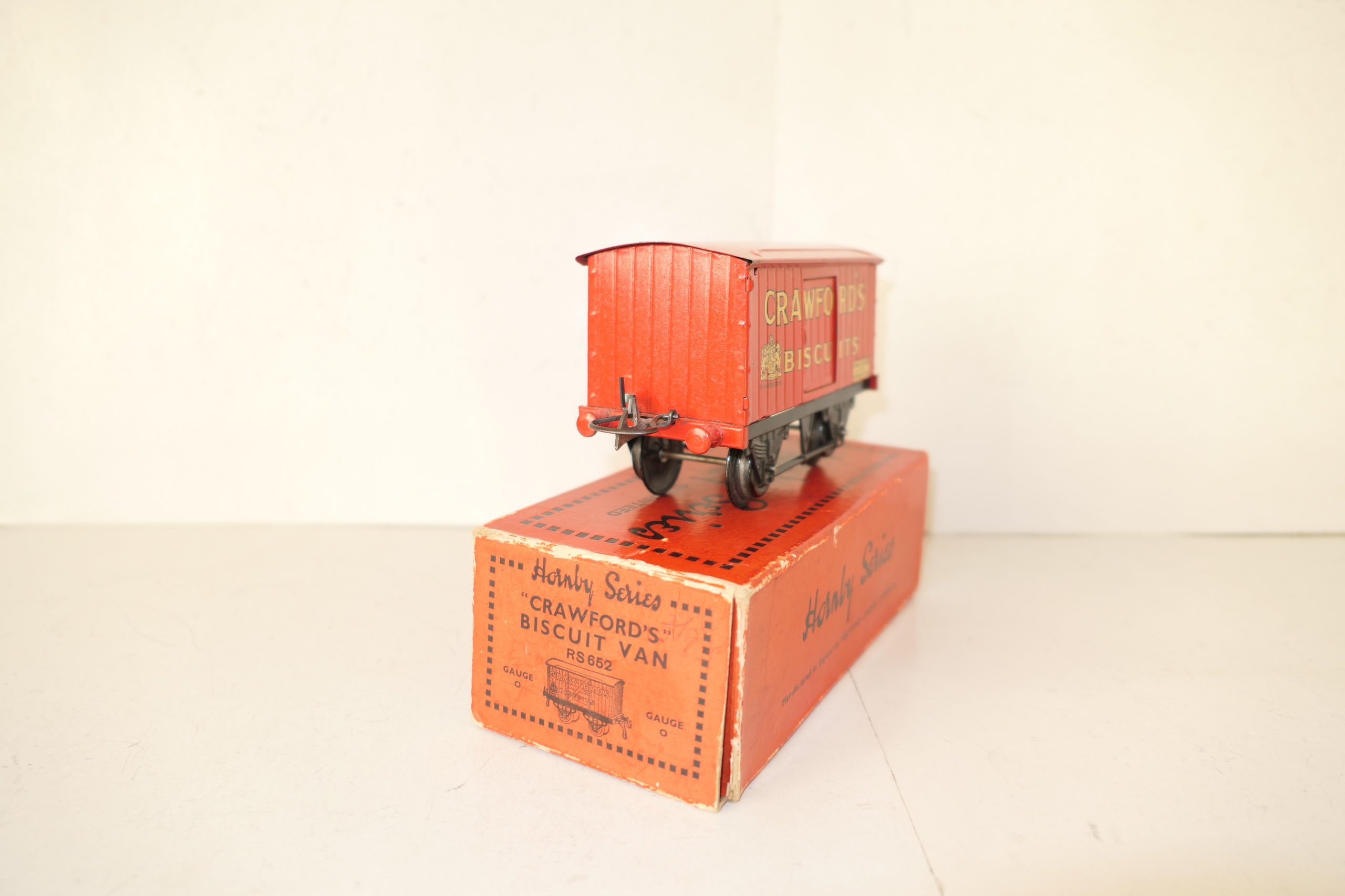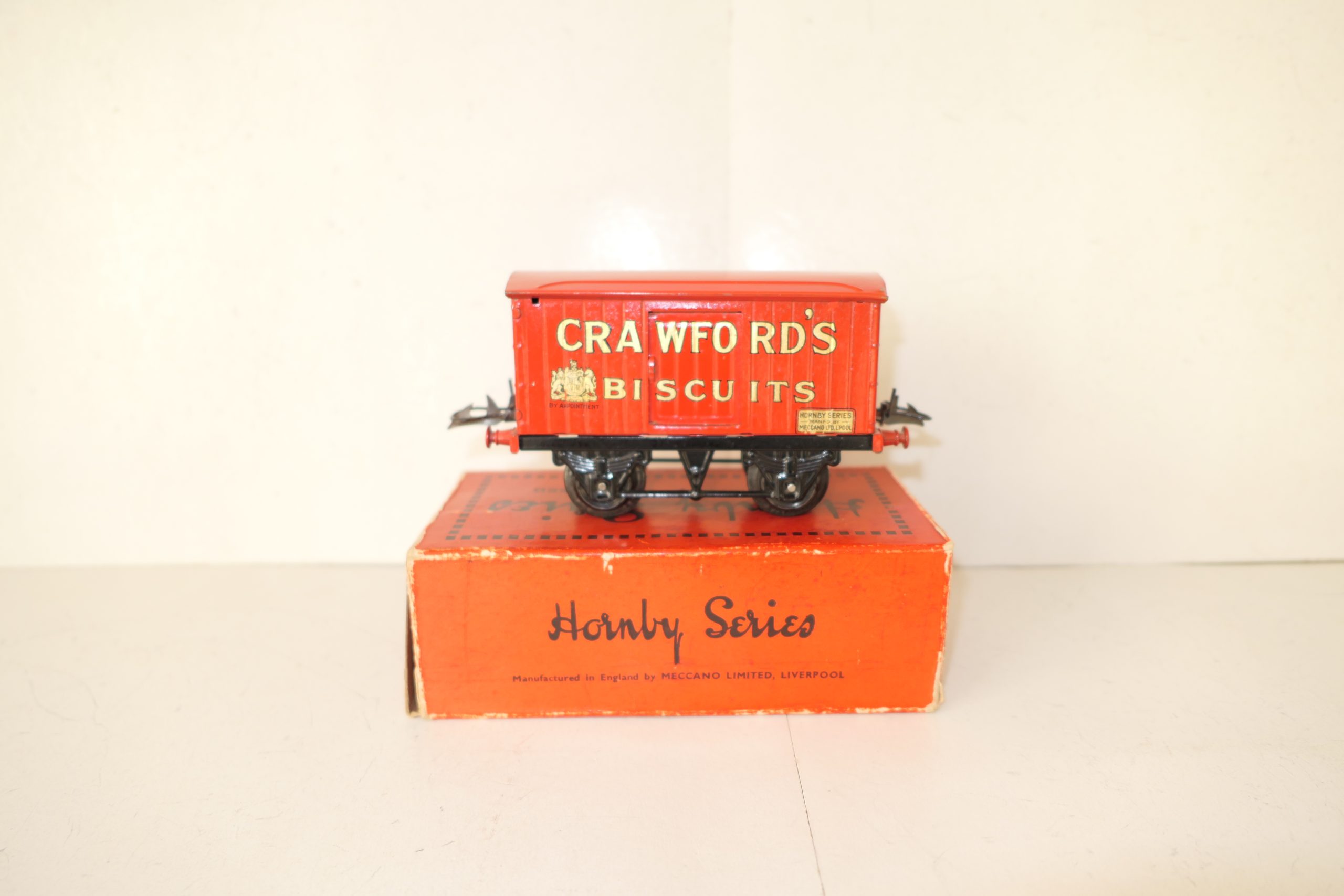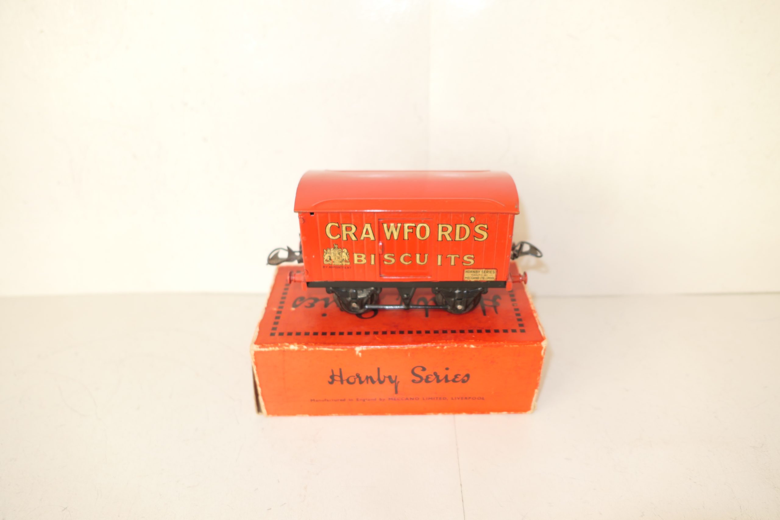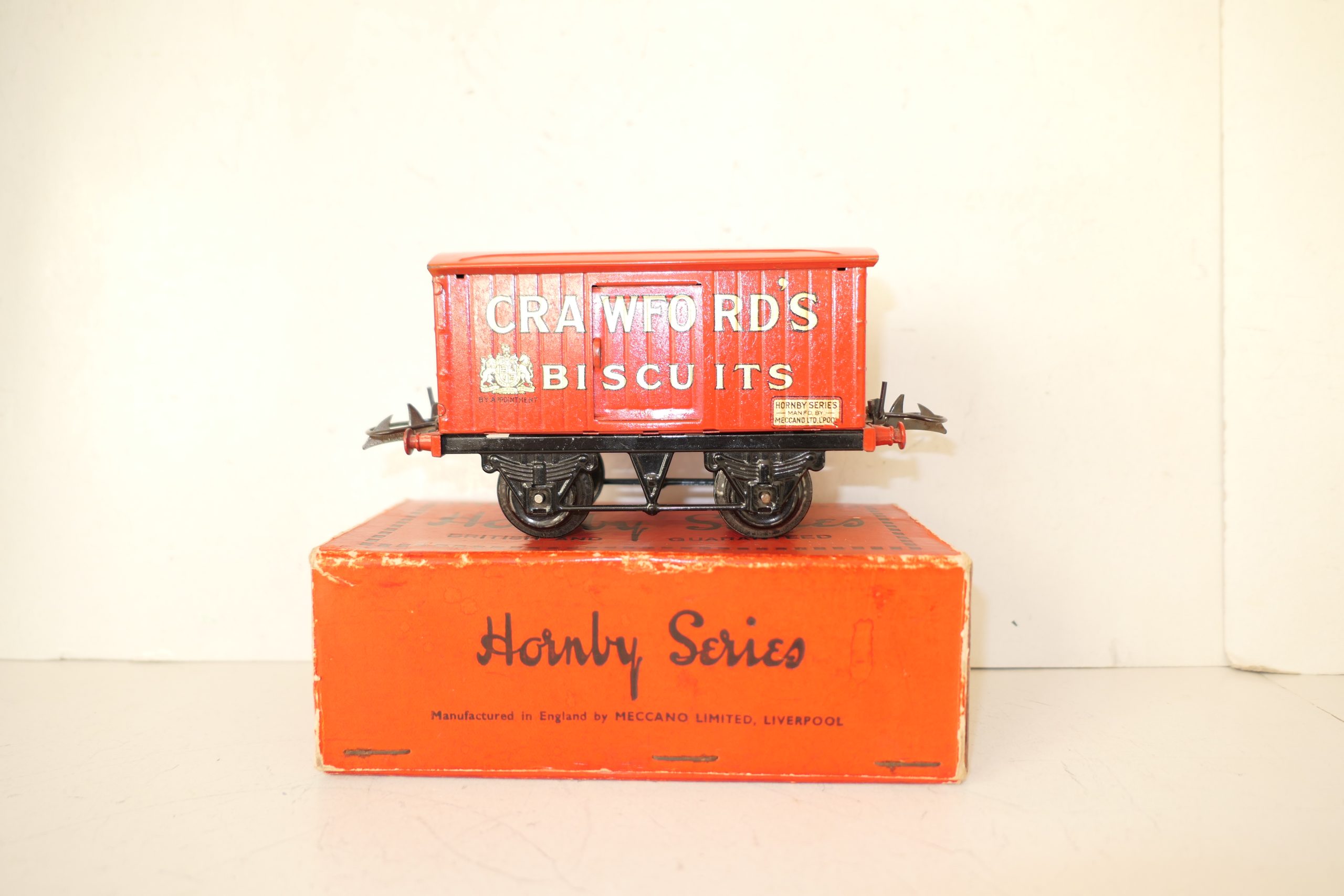 Hornby 0 Gauge ‘CRAWFORDS’ Biscuits Private owner van – Boxed – Sides Excellent/plus – One of the private owner vans issued pre war is this ‘CRAWFORDS’ in Red with gold lettering to the sides, Sides are Excellent/plus all contained in a Good Box. Circa 1932 with the ‘HORNBY SERIES’ transfer to the bottom right hand sides of the van. A great addition to the Hornby range of Private owner vans