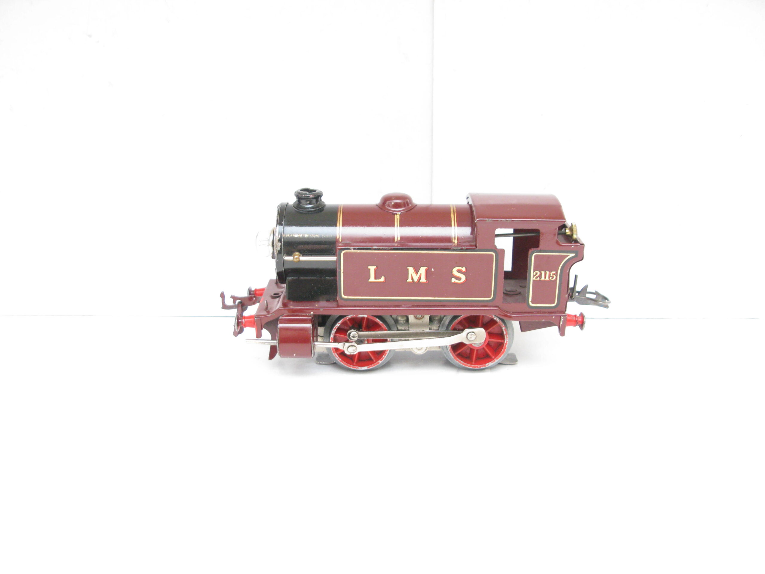 Hornby 0 Gauge E120 Tank Loco LMS Maroon No.2115, 20 volt electric – unboxed This is one of the popular E120 Tank locos which Hornby produced for all 4 regions this example is in LMS maroon, overall Excellent/plus condition. a great runner and ideal item for the Hornby collector