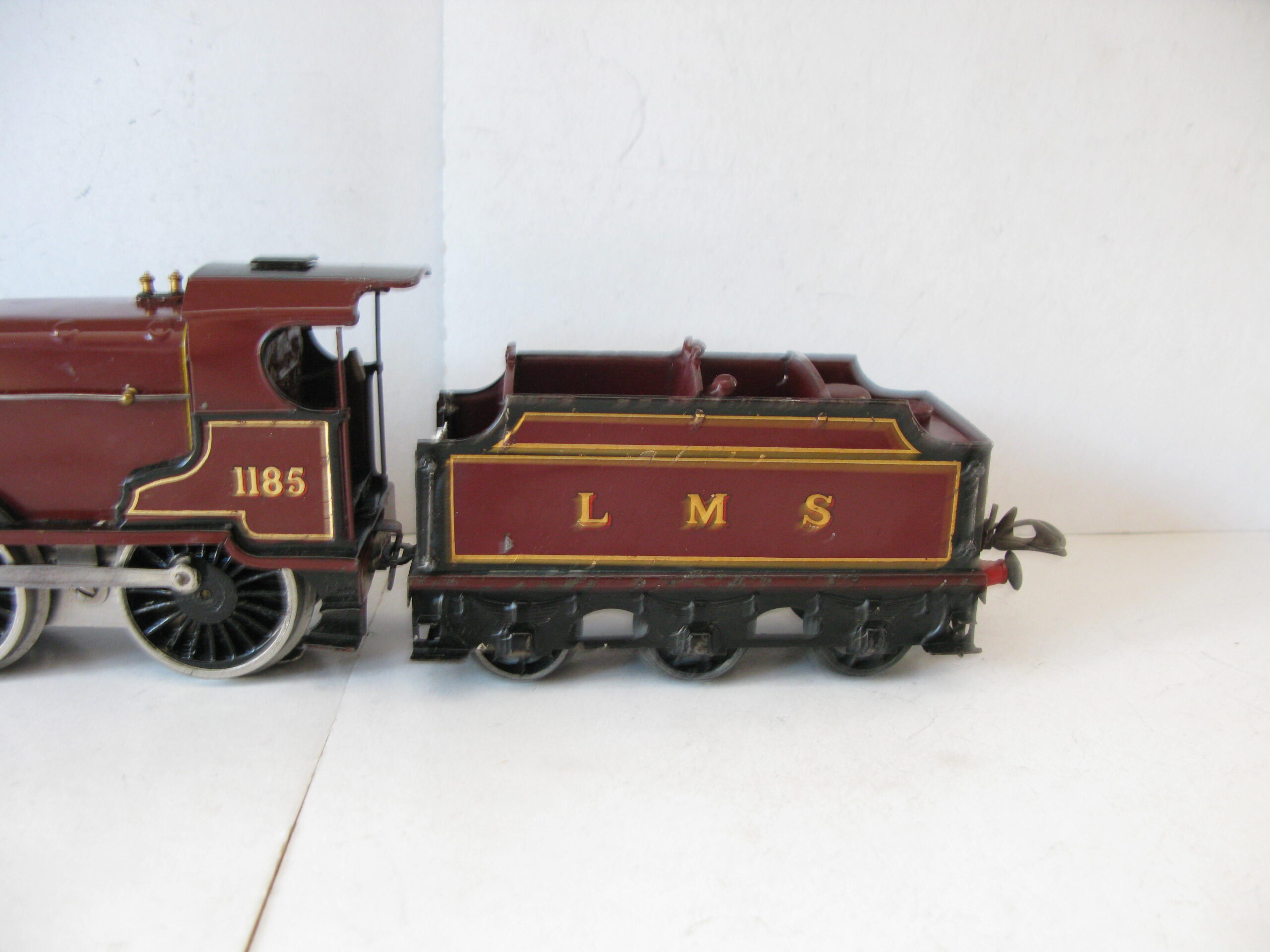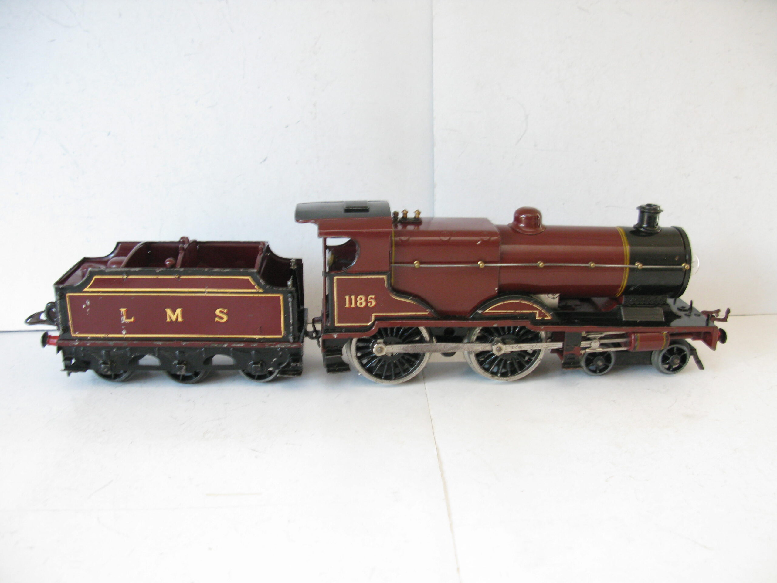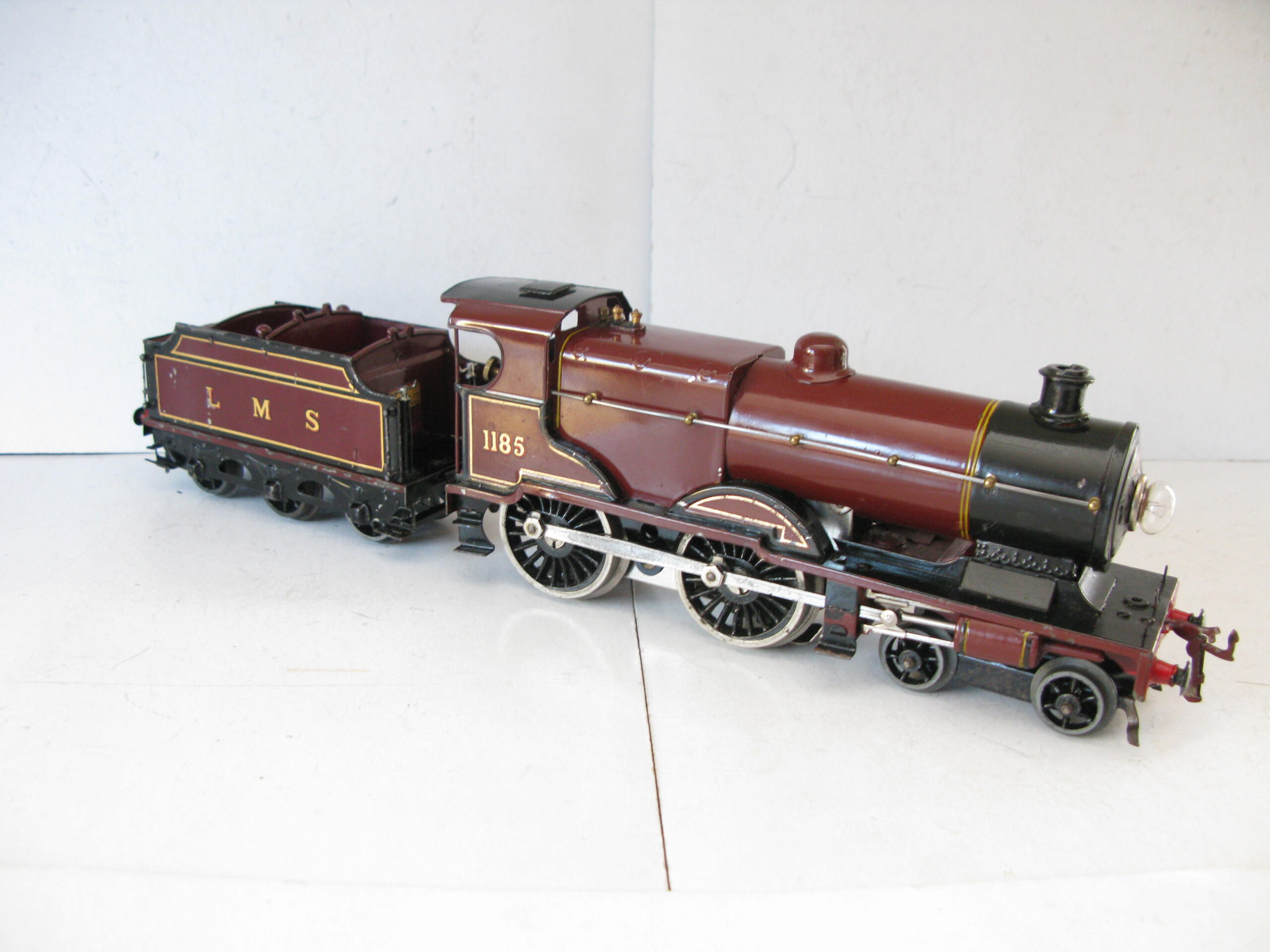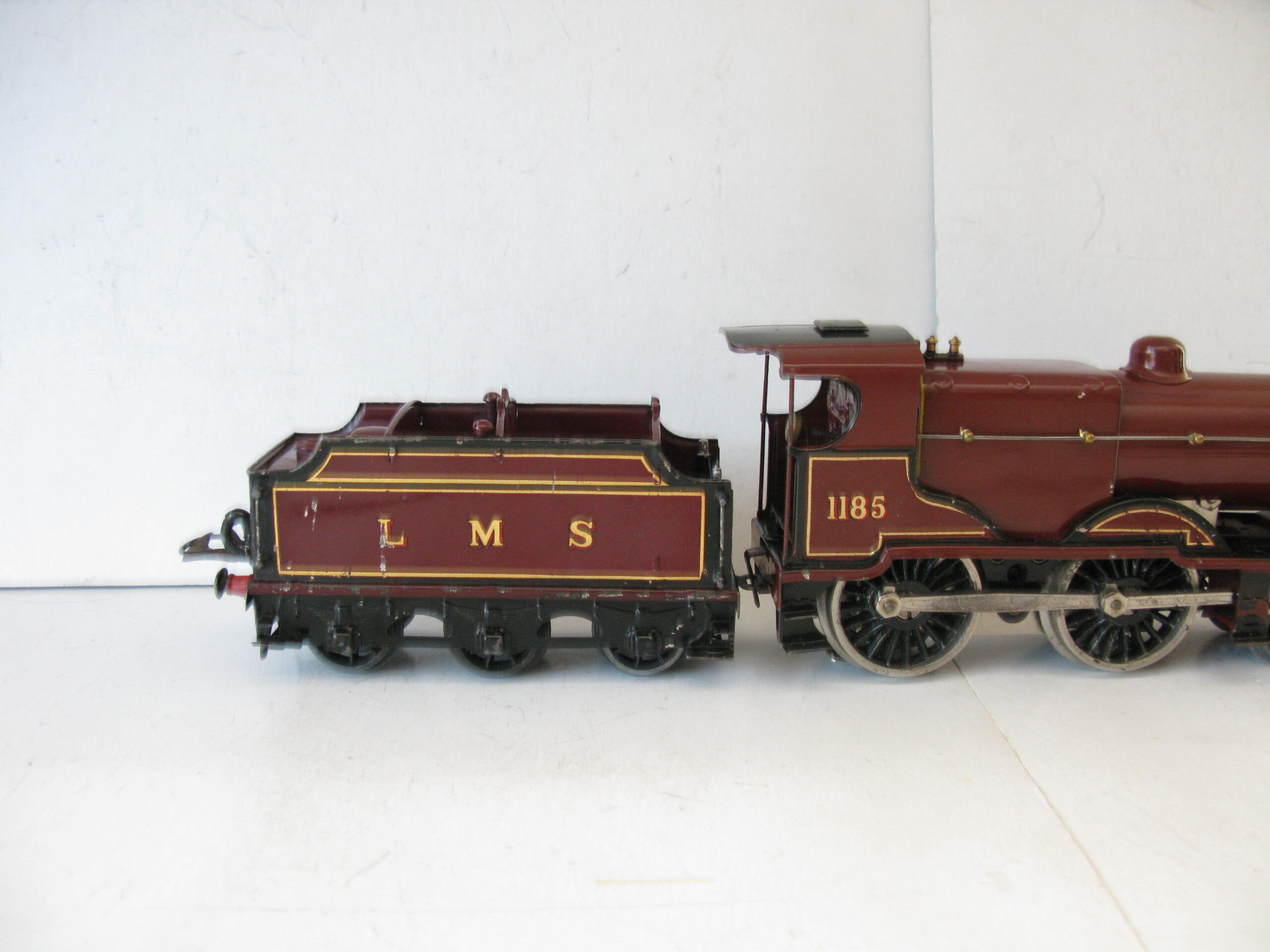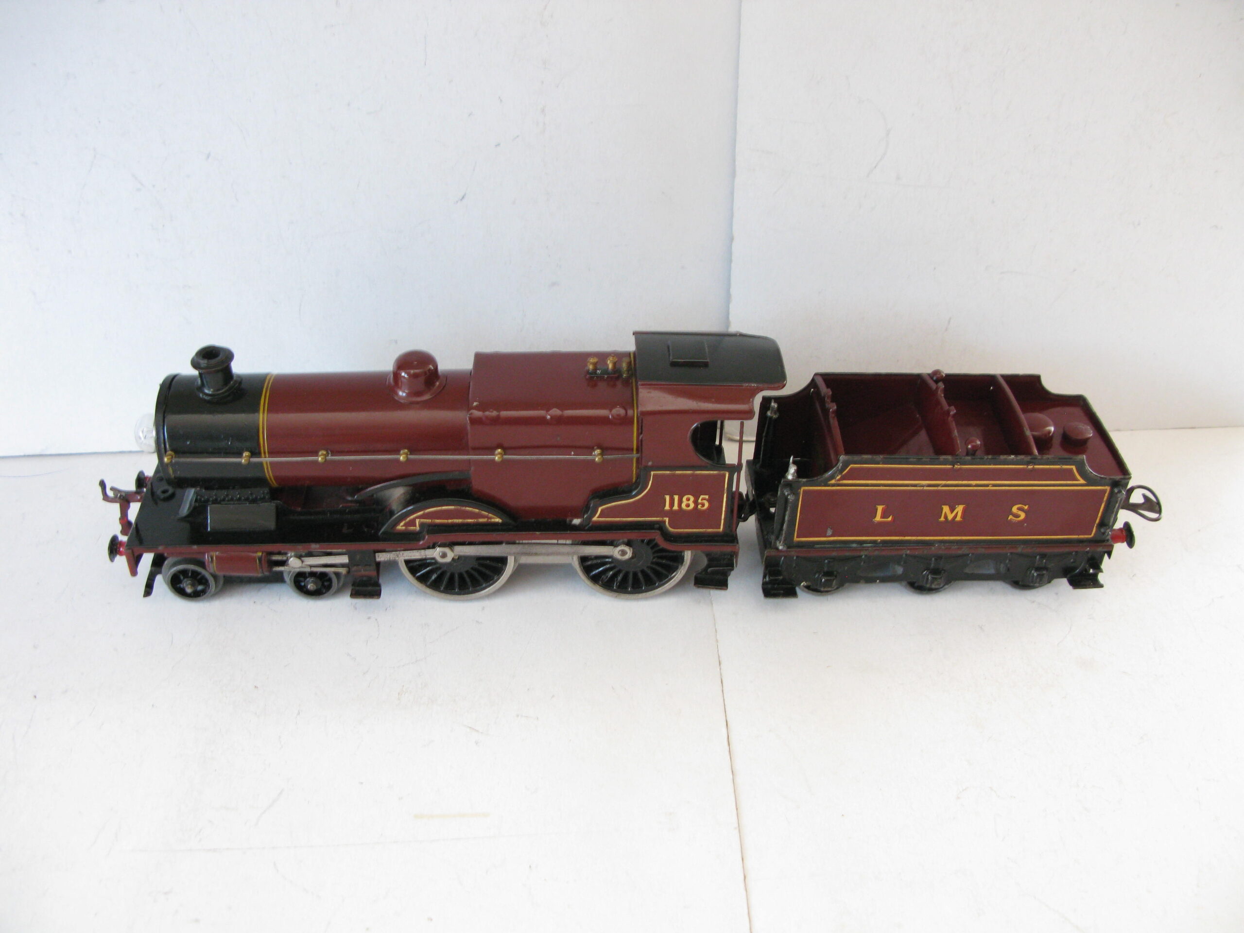 Hornby 0 Gauge E220 Special Loco & Tender LMS Maroon ‘COMPOUND’ No.1185, 3-rail 20 volt electric – unboxed