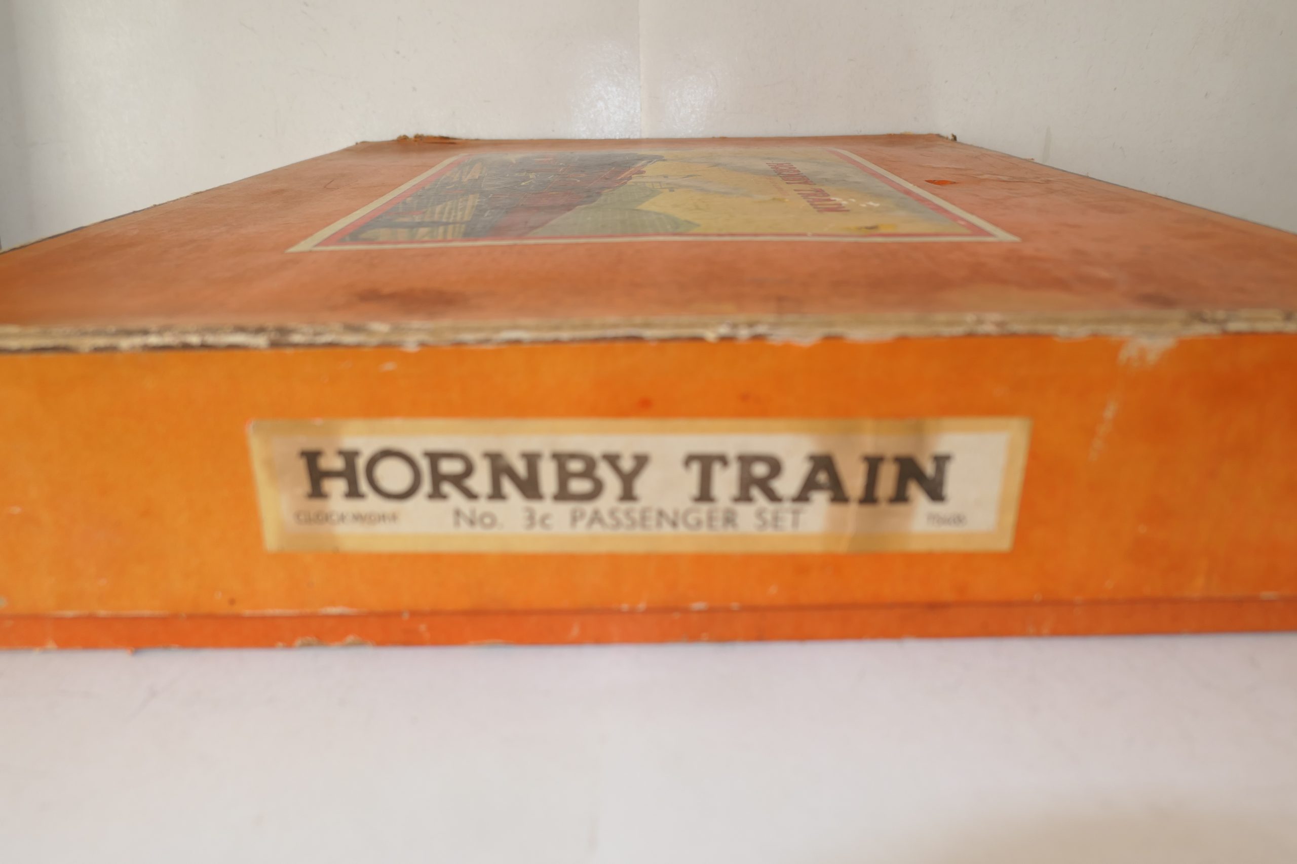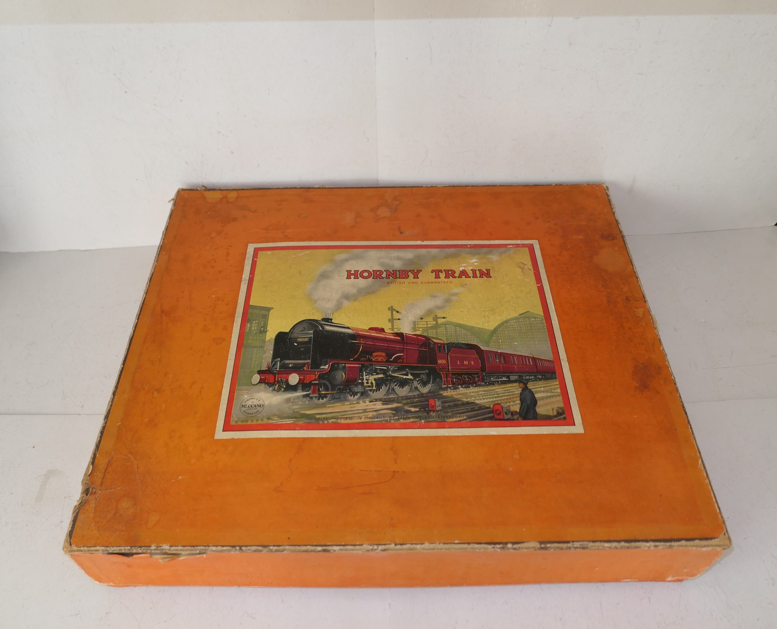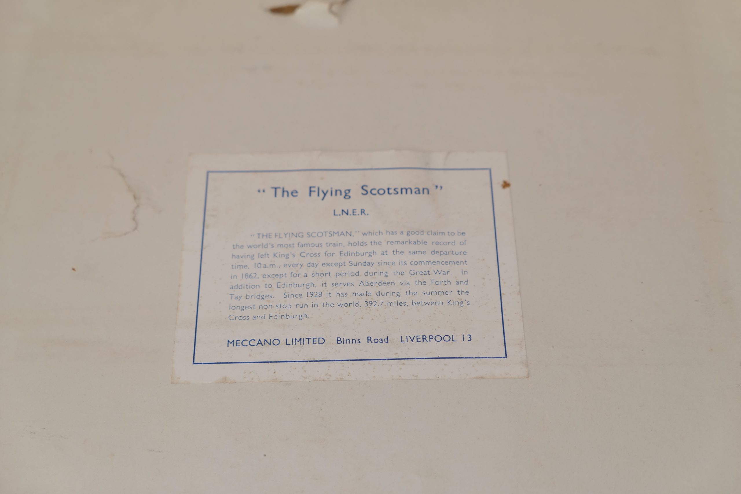 Hornby 0 Gauge EMPTY Set Box for a No.3C ‘Flying Scotsman’ which would have a No.3Loco Tender and pair of LNER coaches – Box – PLEASE NOTE THIS IS FOR AN EMPTY SET BOX. This is for the Empty set box and does not contain the loco, Tender or coaches but does have an oval of tinplate 2-rail clockwork track. The underside of the box lid has the ‘FLYING SCOTSMAN’ label. Overall Very Good condition. Good box with picture lid. A great addition to Hornby 0 Gauge Collection.