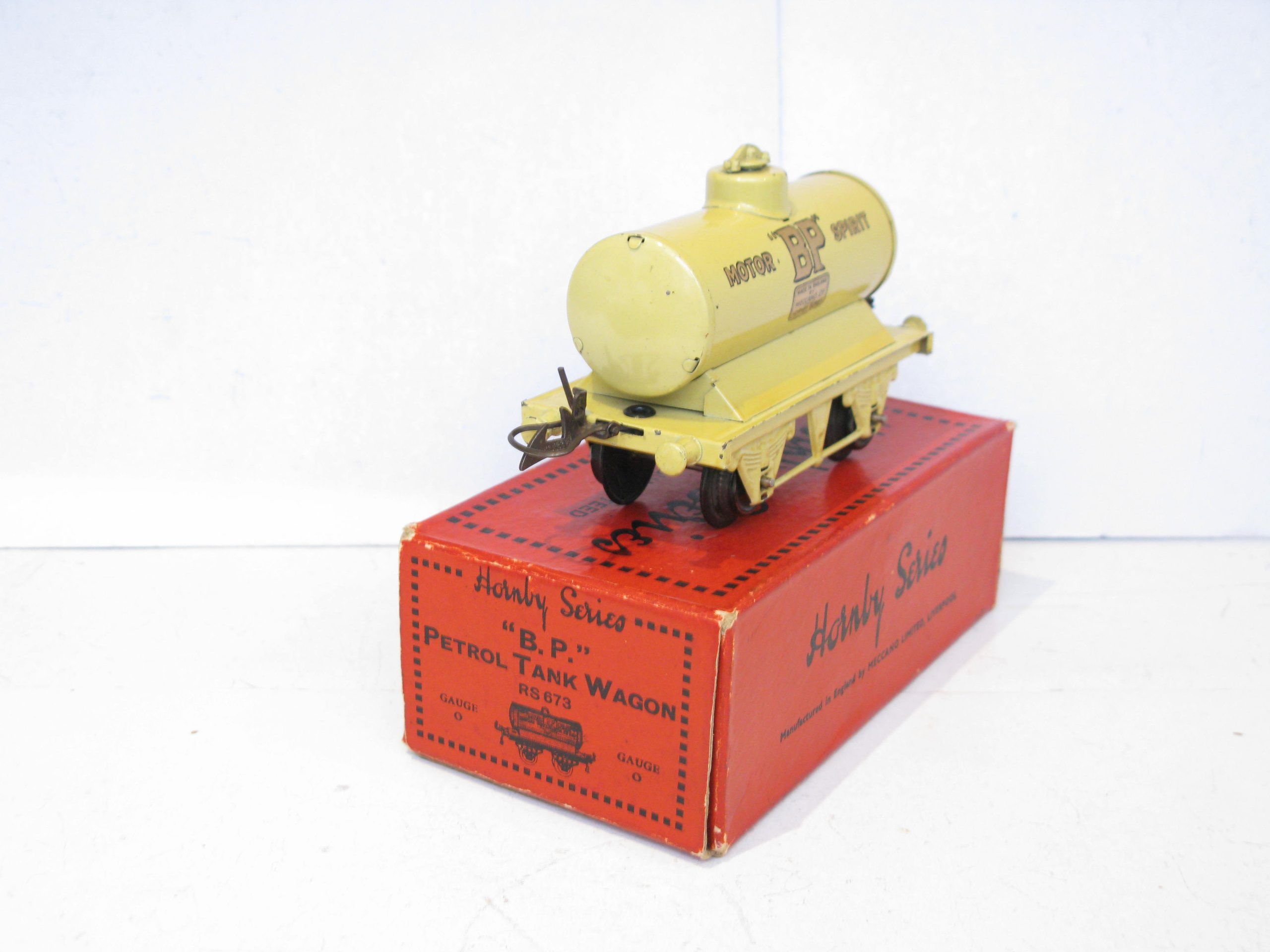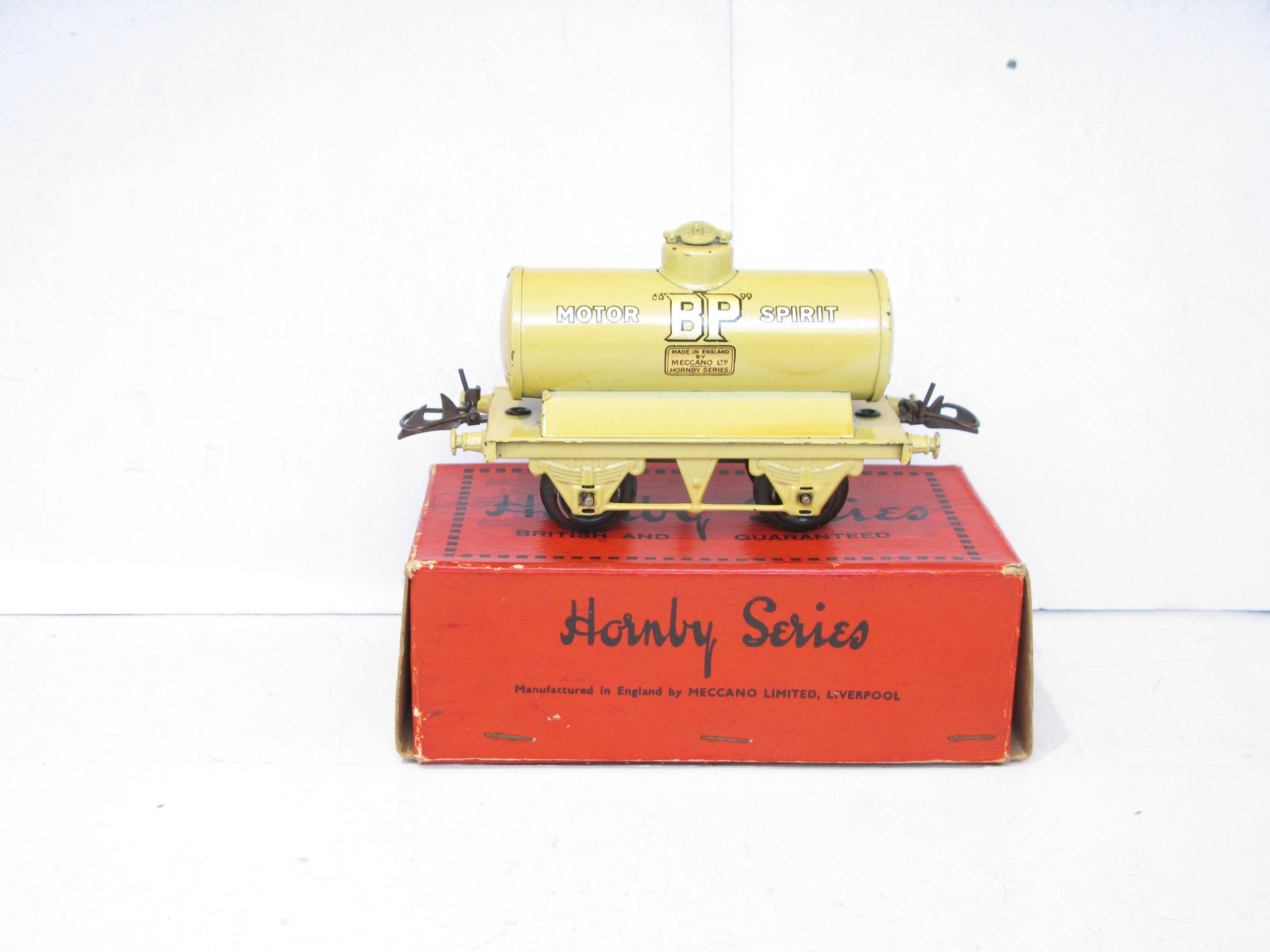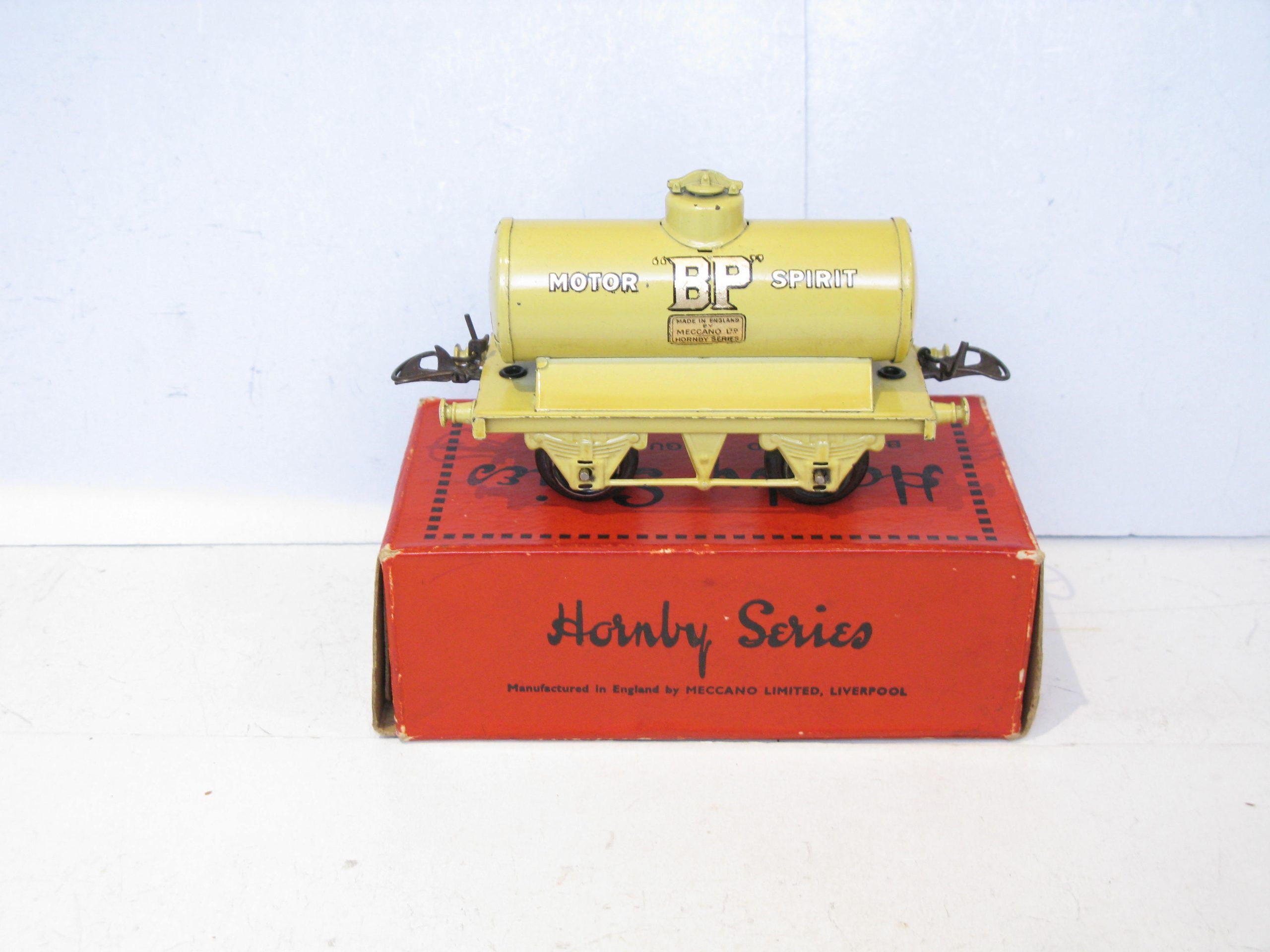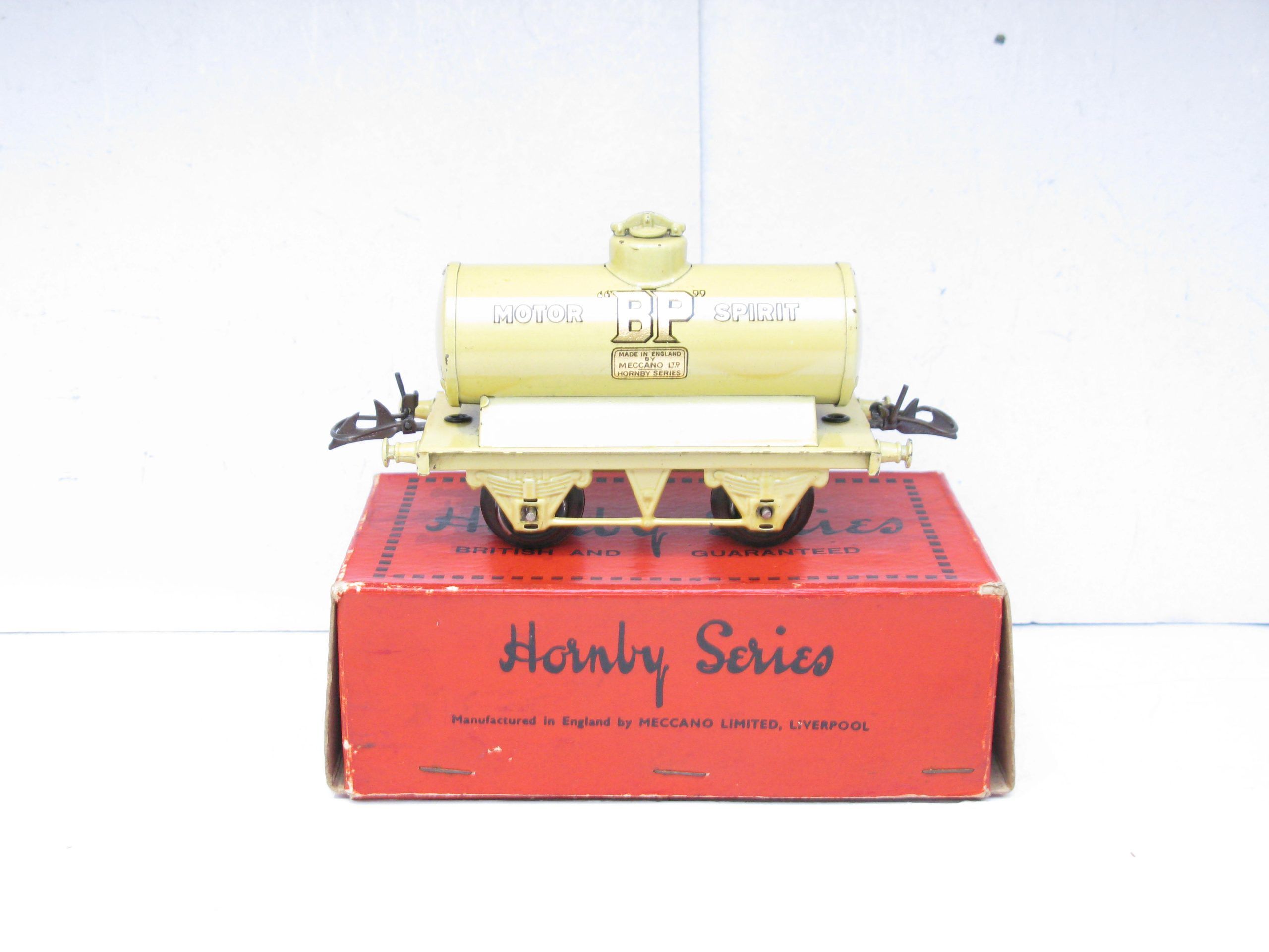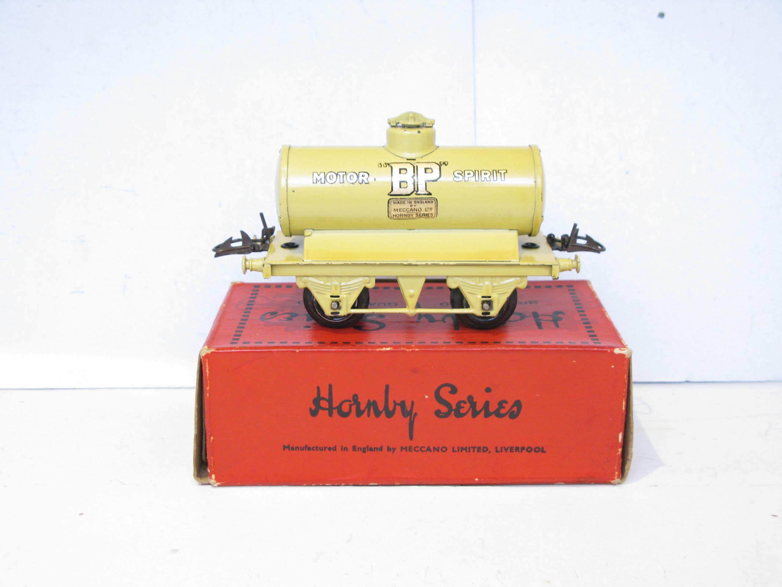 Hornby 0 Gauge Large ‘BP’ Petrol Tanker wagon – Boxed – Excellent – From the range of tankers produced both pre and post war is this pre-war LARGE ‘BP’ Petrol Tanker in Yellow with the ‘MOTOR SPIRIT’ transfers on the closed chassis with automatic couplings and produced in this format 1932/3, Overall Excellent in a GGood. One of the More difficult Tankers to find in Exccellent condition. A great addition to the Petrol Tanker collection