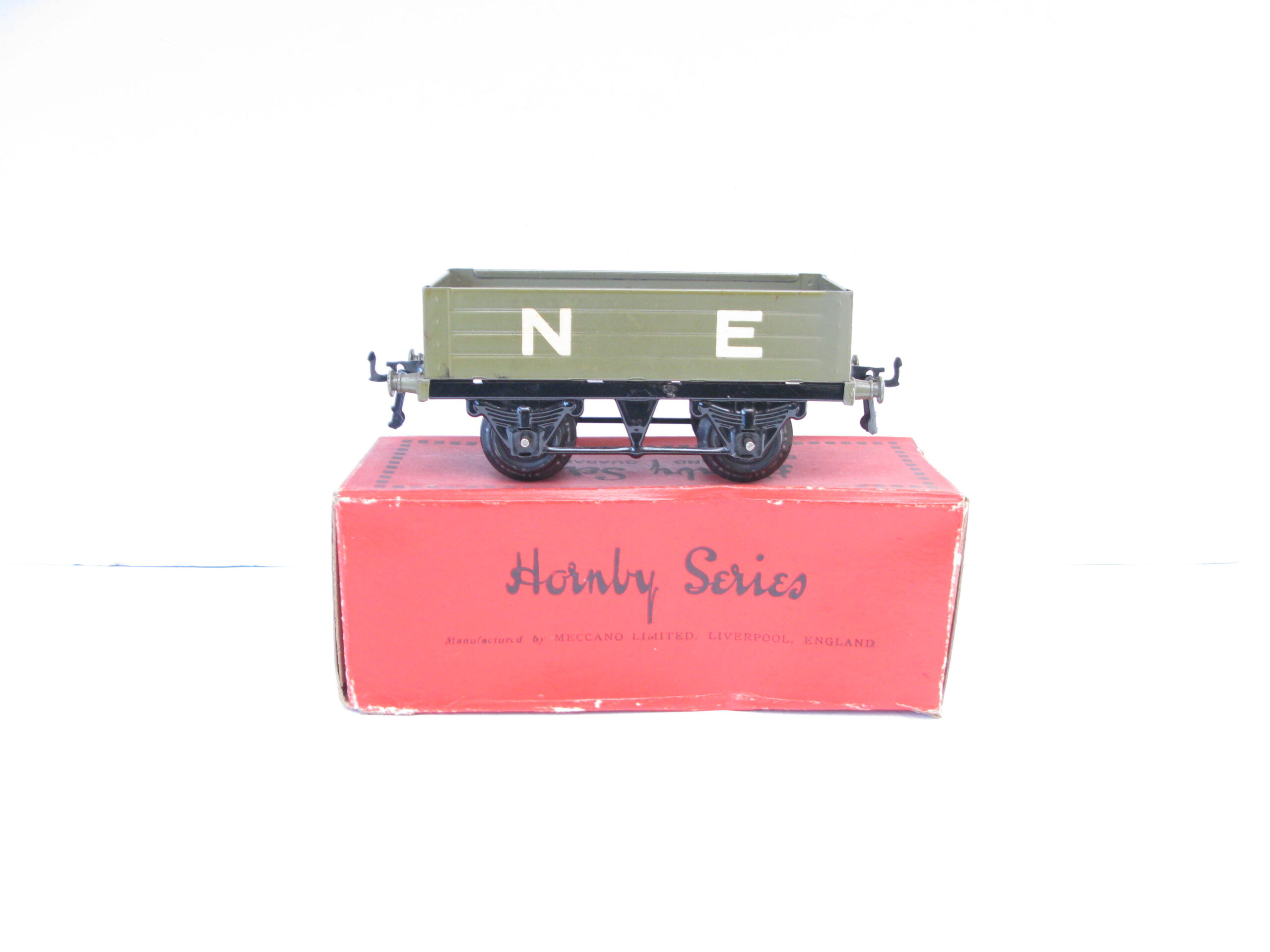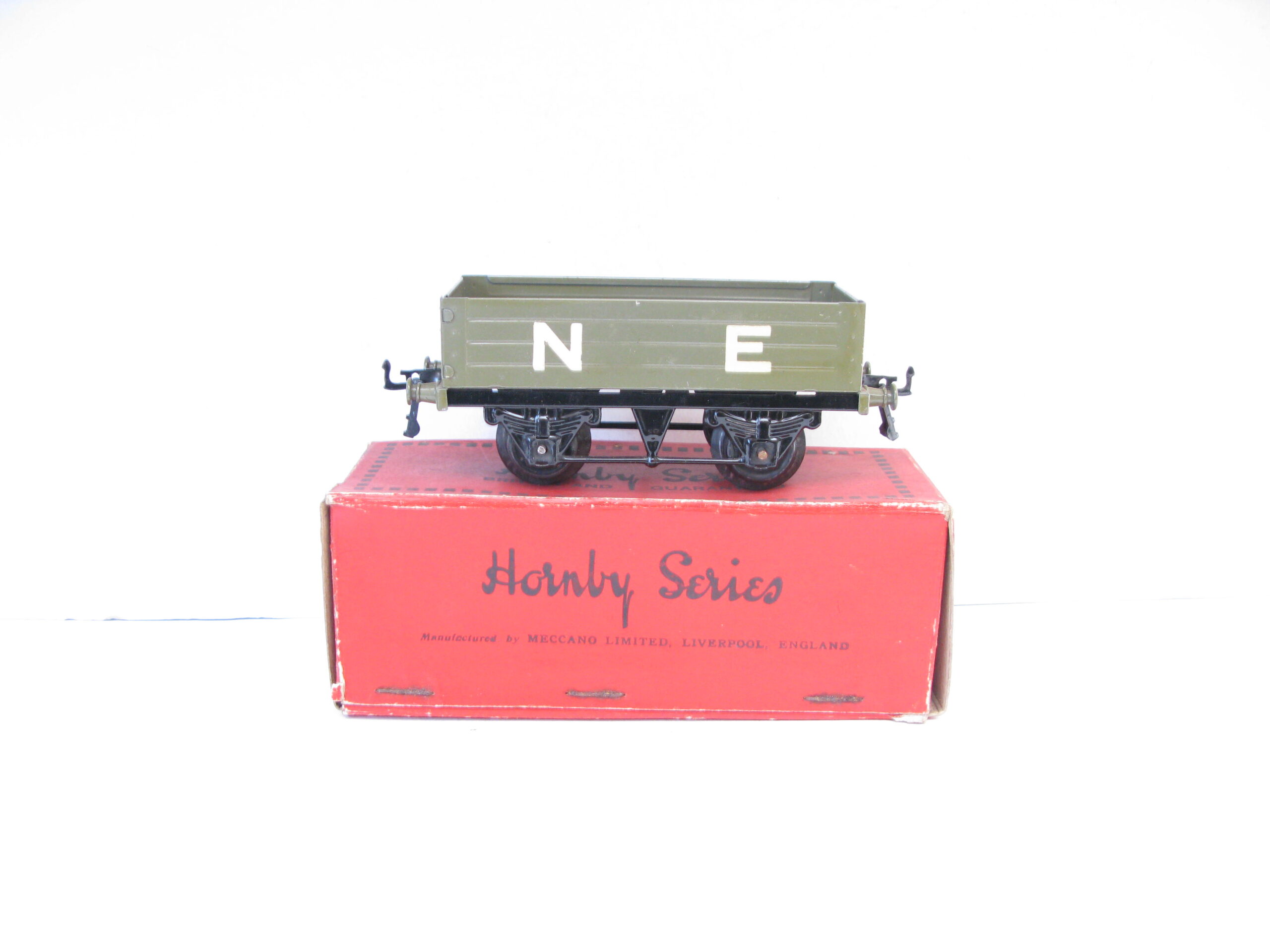 Hornby 0 Gauge NE No.1 Open Wagon Circa 1930 – Boxed – Hornby 0 Gauge NE No.1 Open Wagon version with Drop link couplings on a closed base dating this to 1930, overall near Mint in Excellent box, a great addition to any Hornby collection