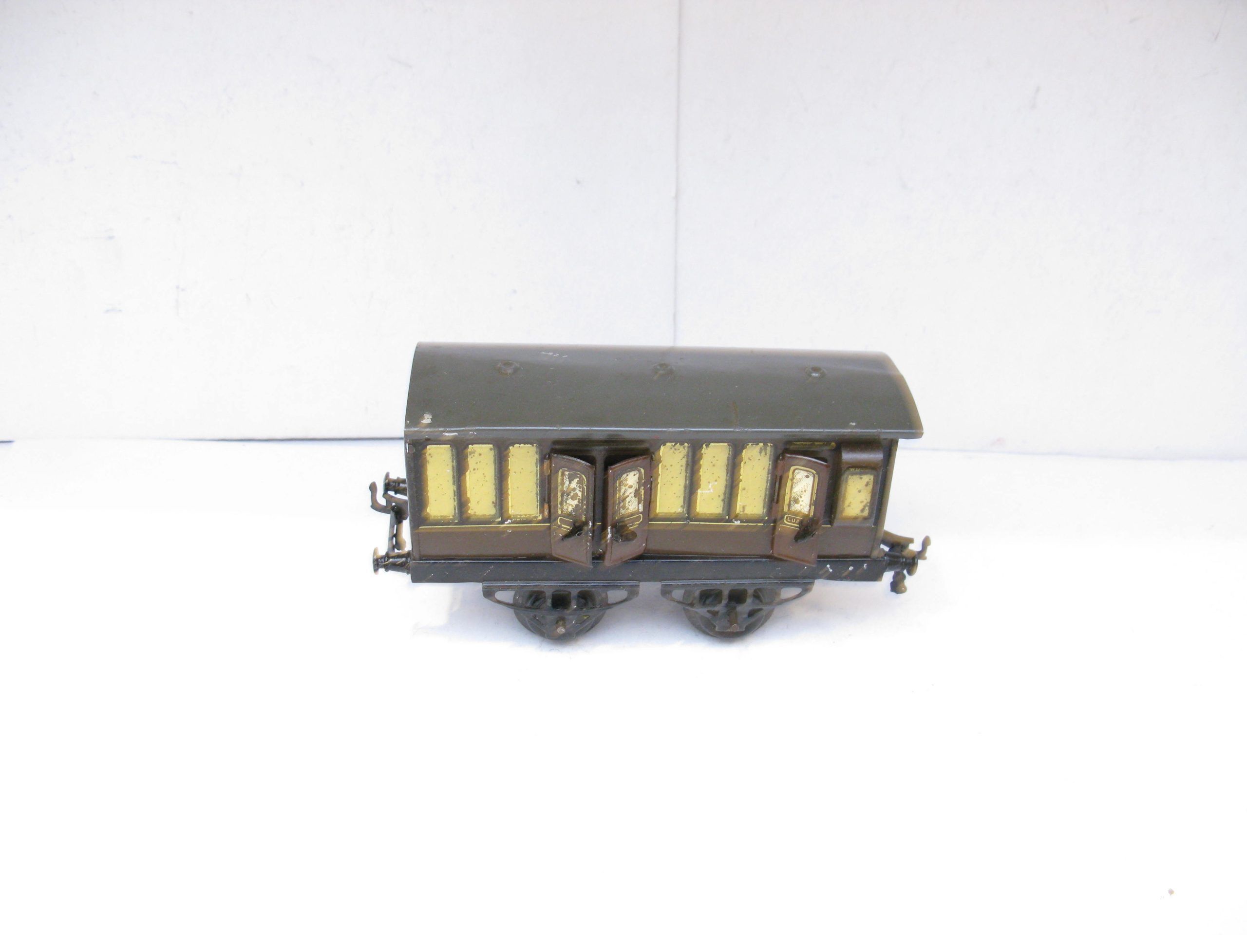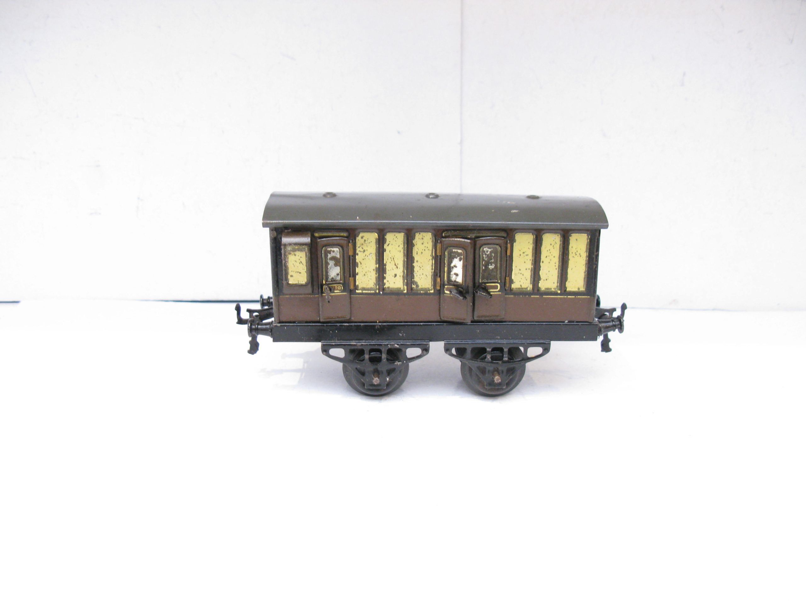 Hornby 0 Gauge No.1 GWR Brake end Passenger Coach – unboxed – Excellent – From the popular range of No.1 Passenger coaches produced in the late 1920’s is this GWR No.1 full Brake end coach. version with open axles guards and drop link couplings dating this to circa 1930/31, sides and roof are excellent.