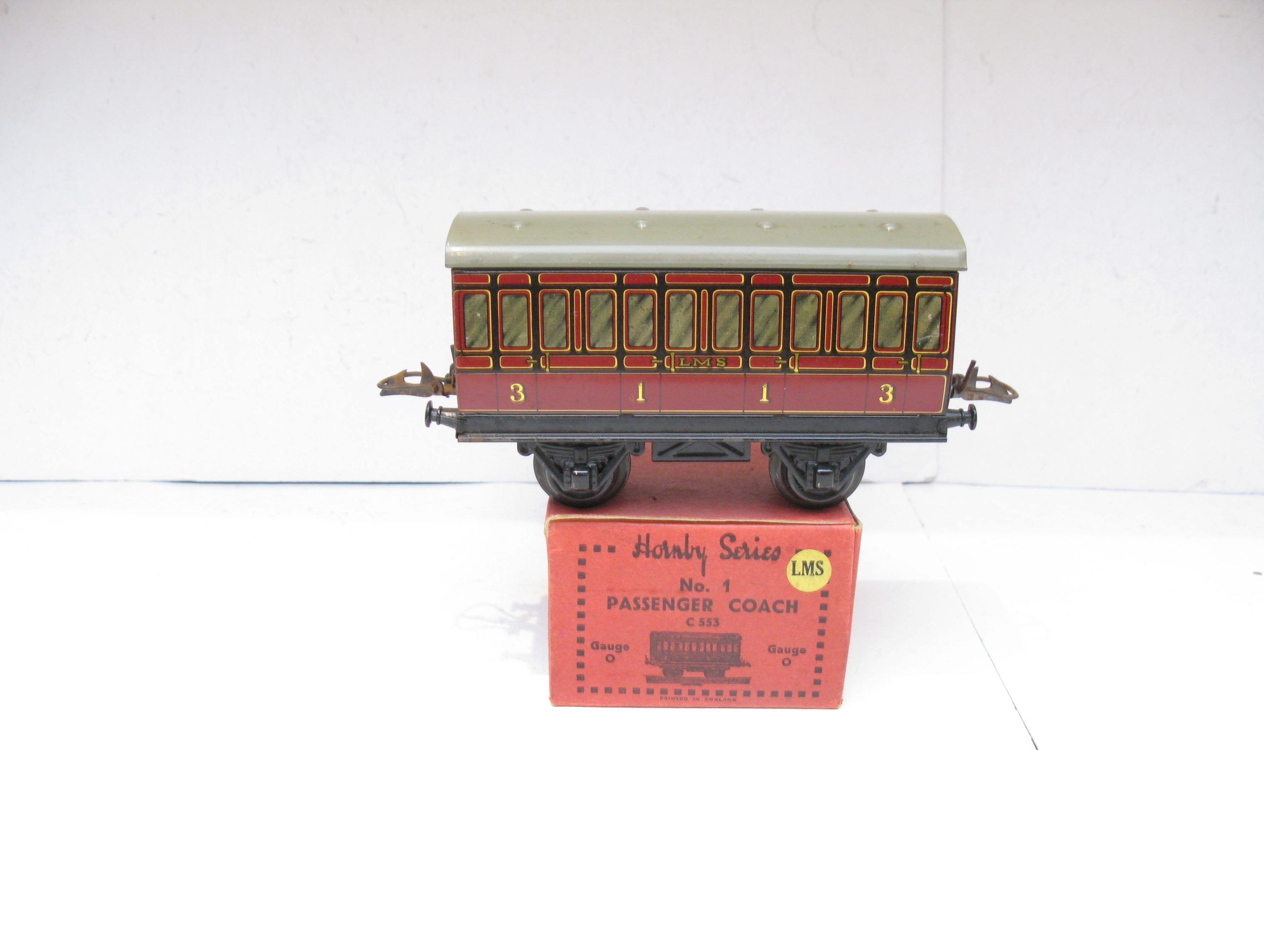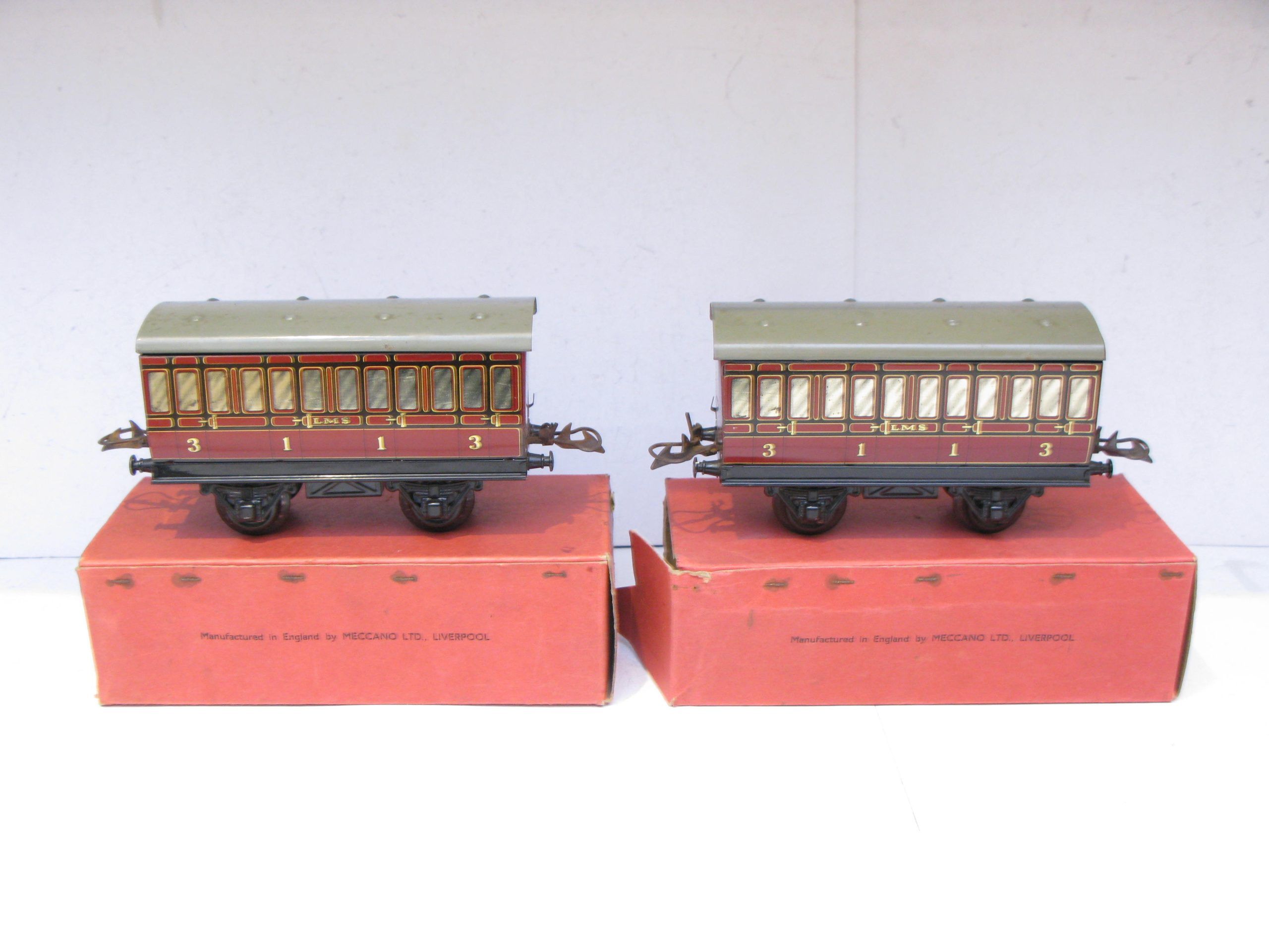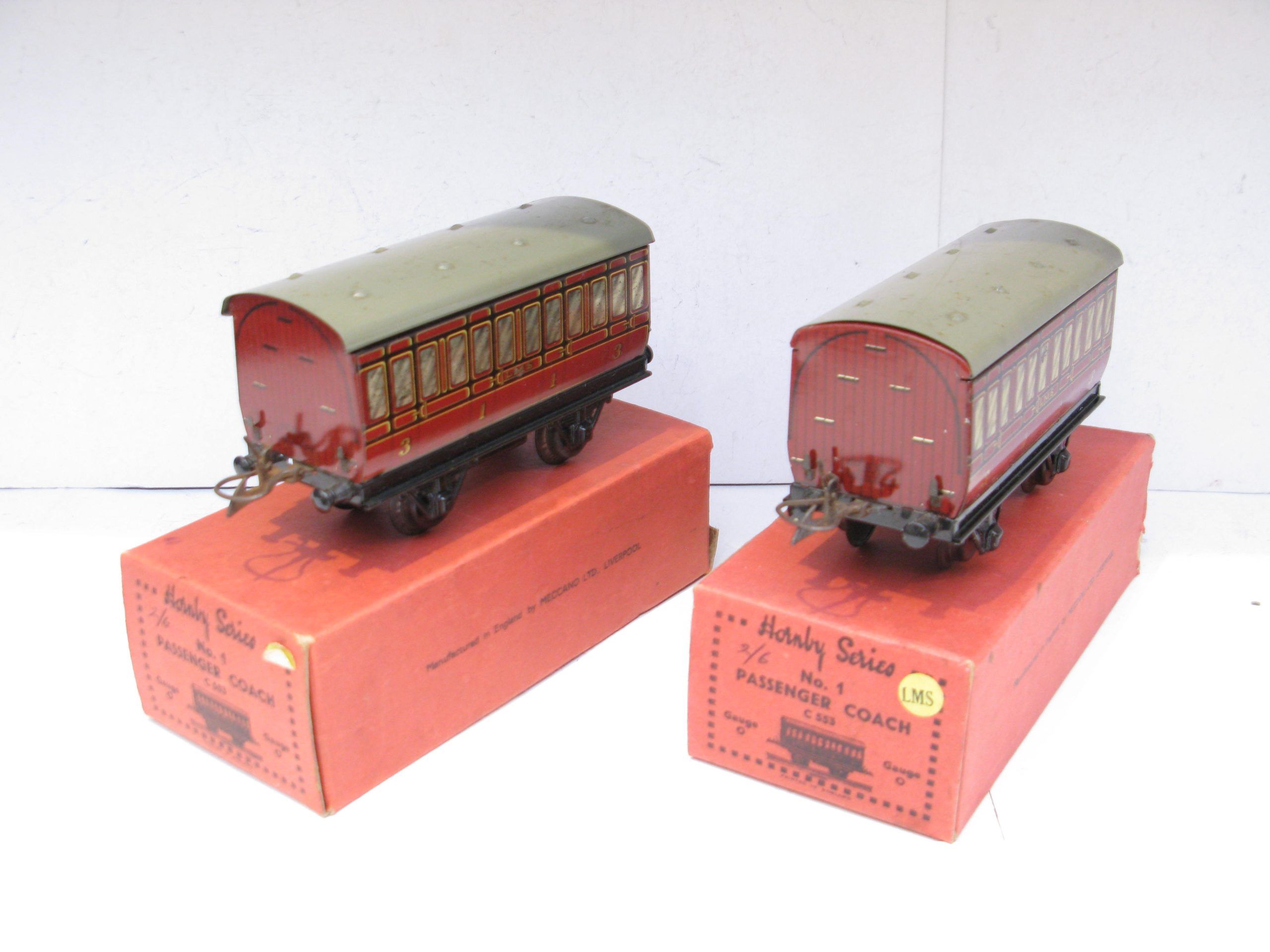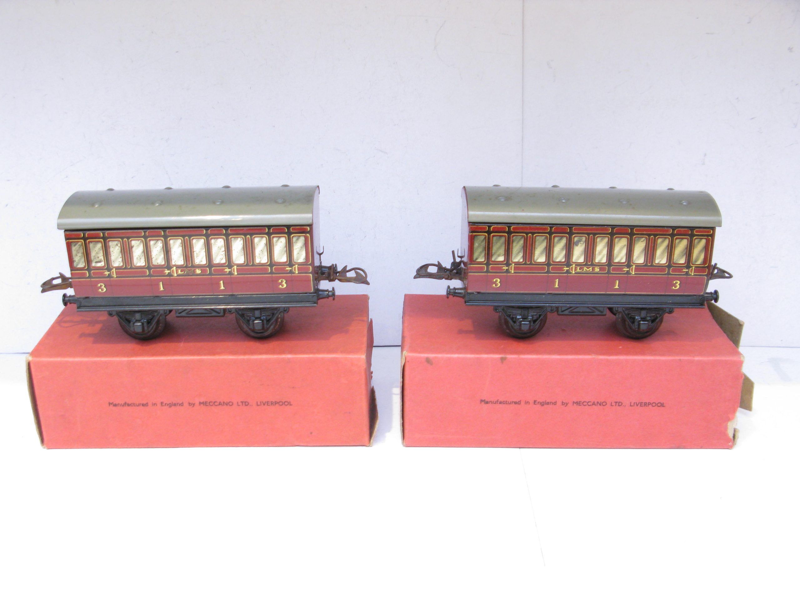 Hornby 0 Gauge No.1 LMS Passenger coaches – Boxed – From the popular range of No.1 Passenger coaches produced in the 1930’s are these LMS consisting 1st/3rd Coaches. These were producted by Hornby for all 4 railway regions and these are the LMS versions. Overall Excellent there are 2 coaches which have the end flaps missing at one end, they other 2 coach boxes are complete. They are all priced at £32 each coach. Overall Excellent in Fair to Excellent boxes.