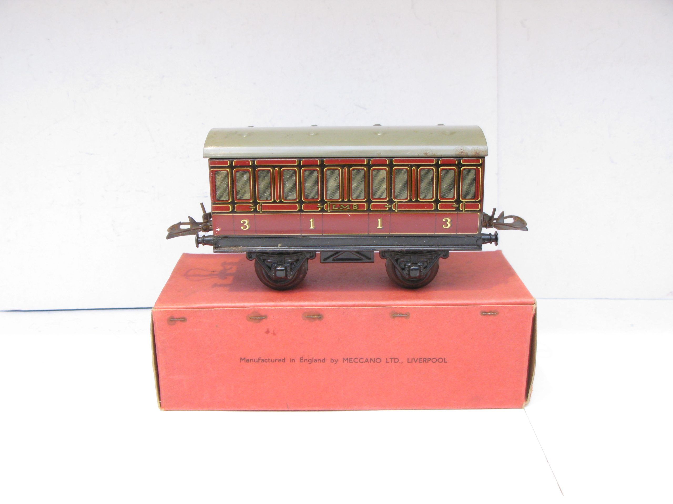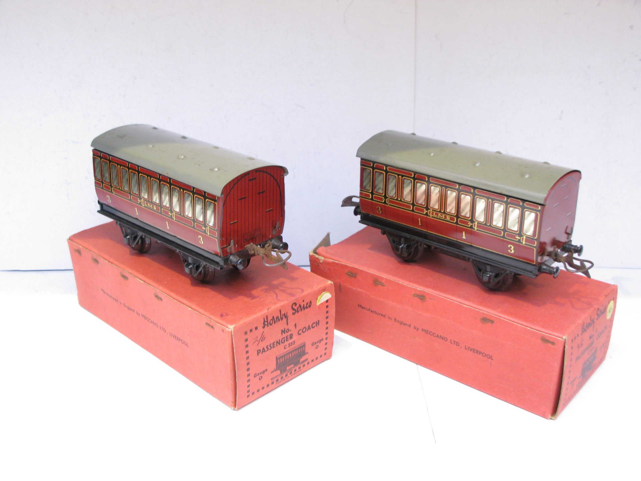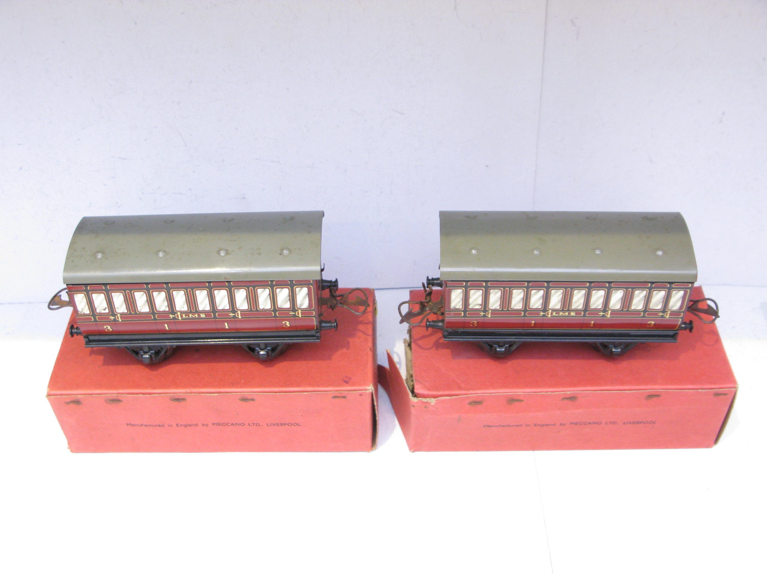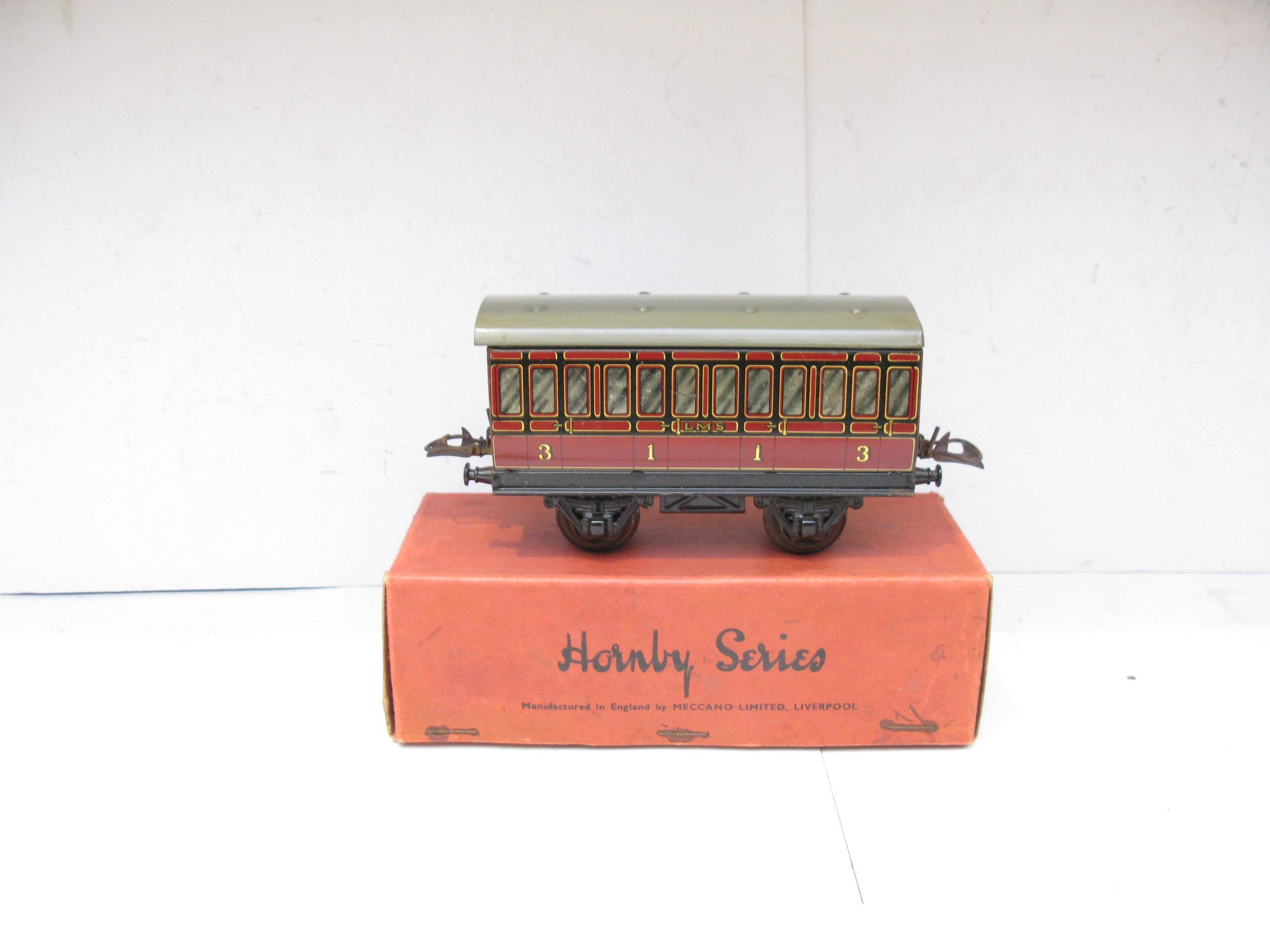 Hornby 0 Gauge No.1 LMS Passenger coaches – Boxed – From the popular range of No.1 Passenger coaches produced in the 1930’s are these LMS consisting 1st/3rd Coaches. These were producted by Hornby for all 4 railway regions and these are the LMS versions. Overall Excellent there are 2 coaches which have the end flaps missing at one end, they other 2 coach boxes are complete. They are all priced at £32 each coach. Overall Excellent in Fair to Excellent boxes.
