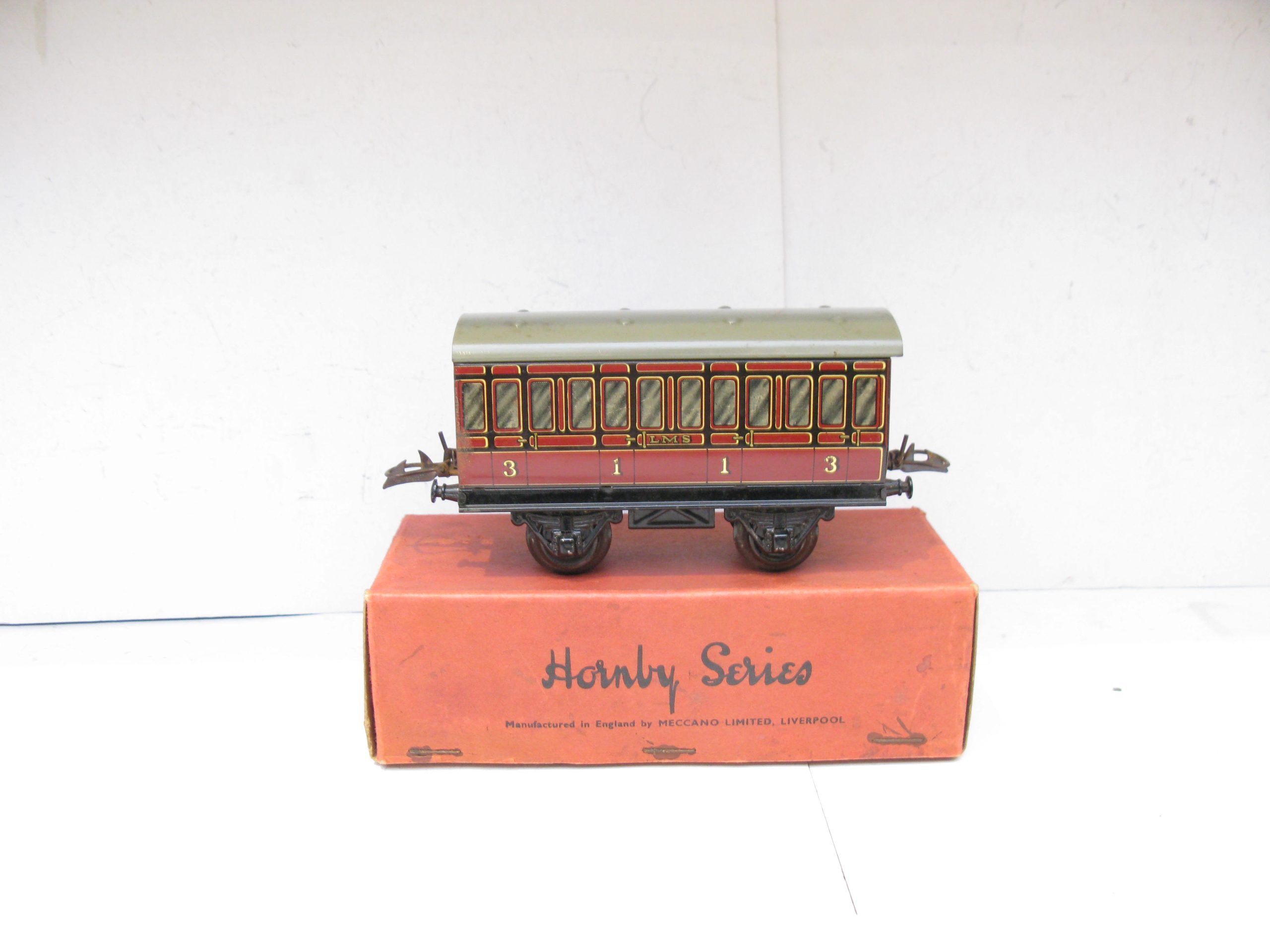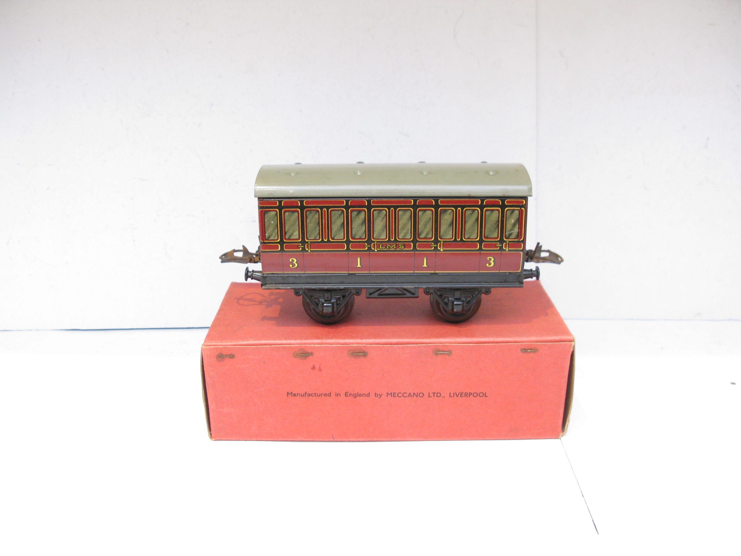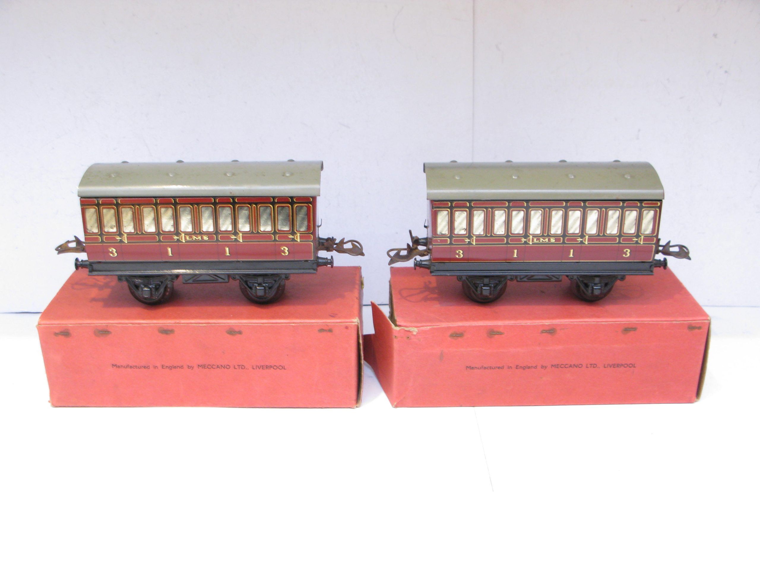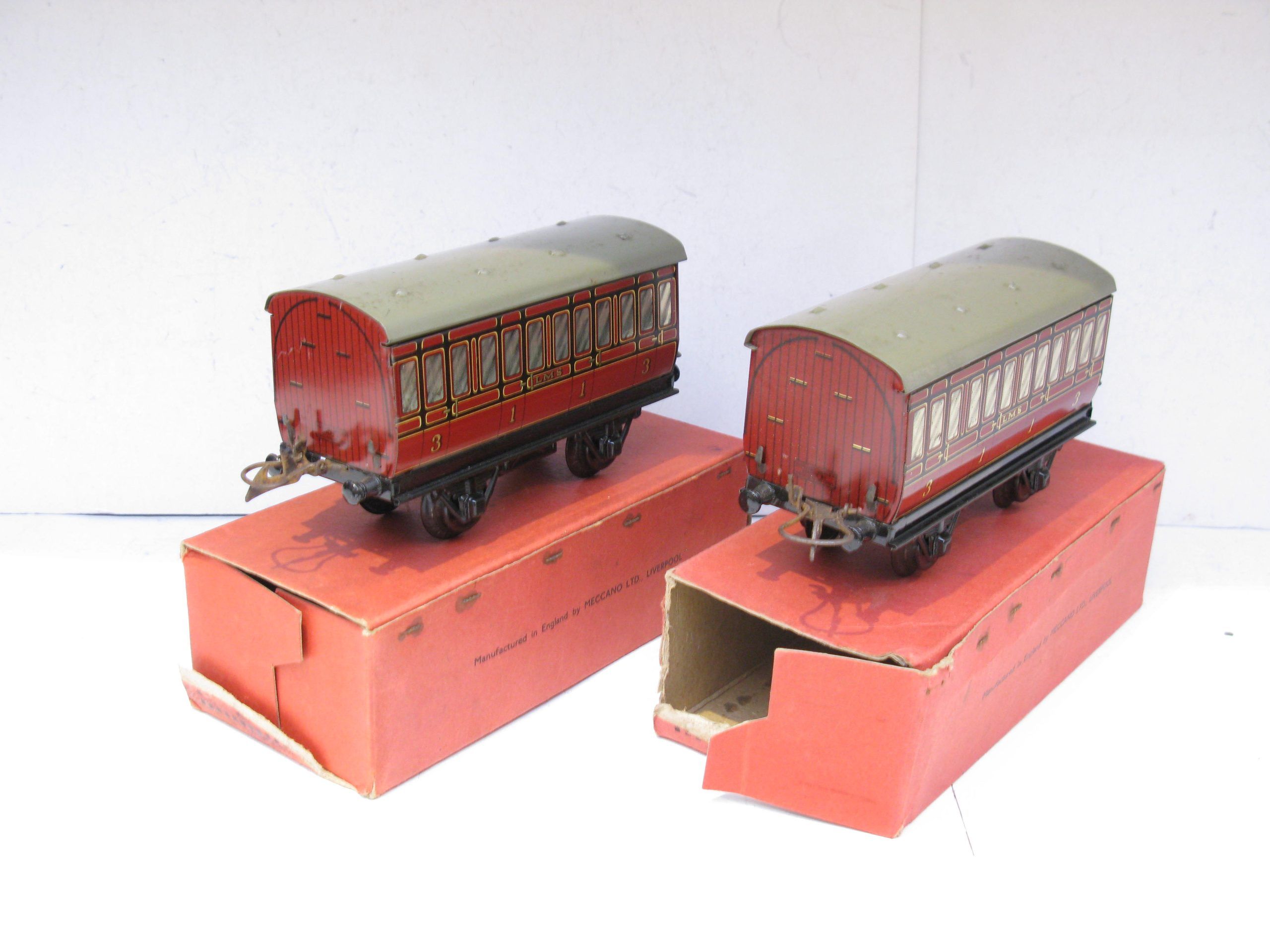 Hornby 0 Gauge No.1 LMS Passenger coaches – Boxed – From the popular range of No.1 Passenger coaches produced in the 1930’s are these LMS consisting 1st/3rd Coaches. These were producted by Hornby for all 4 railway regions and these are the LMS versions. Overall Excellent there are 2 coaches which have the end flaps missing at one end, they other 2 coach boxes are complete. They are all priced at £32 each coach. Overall Excellent in Fair to Excellent boxes.