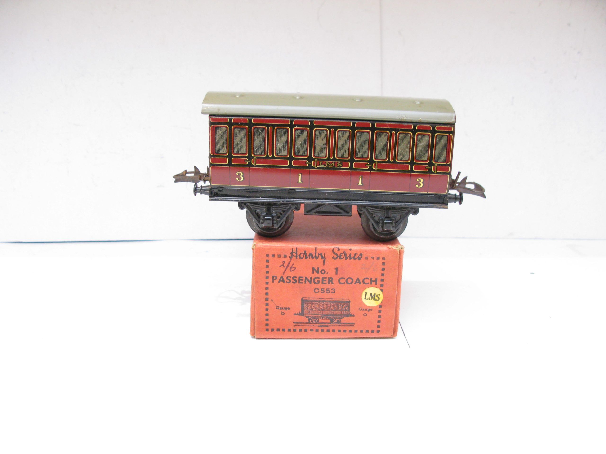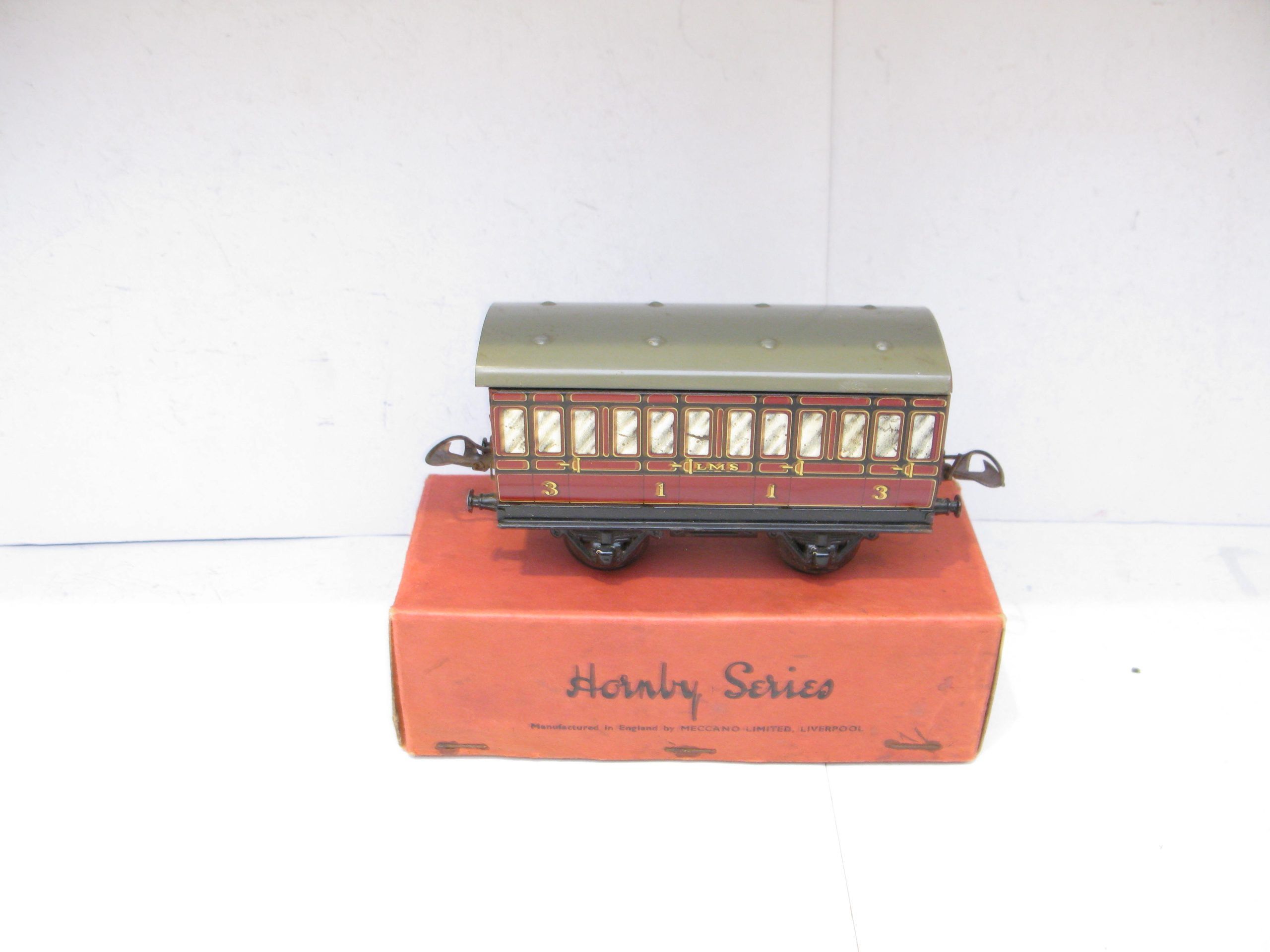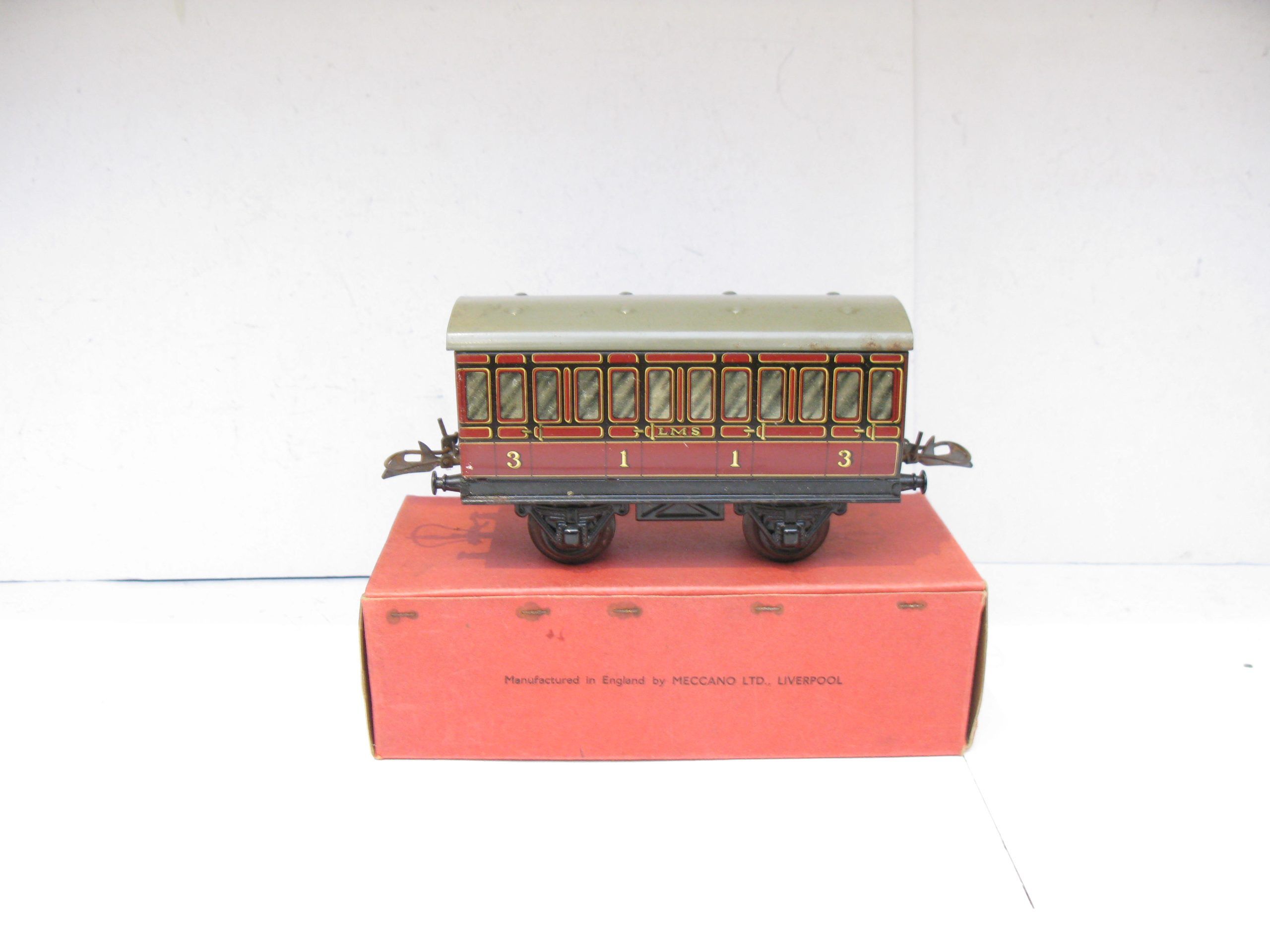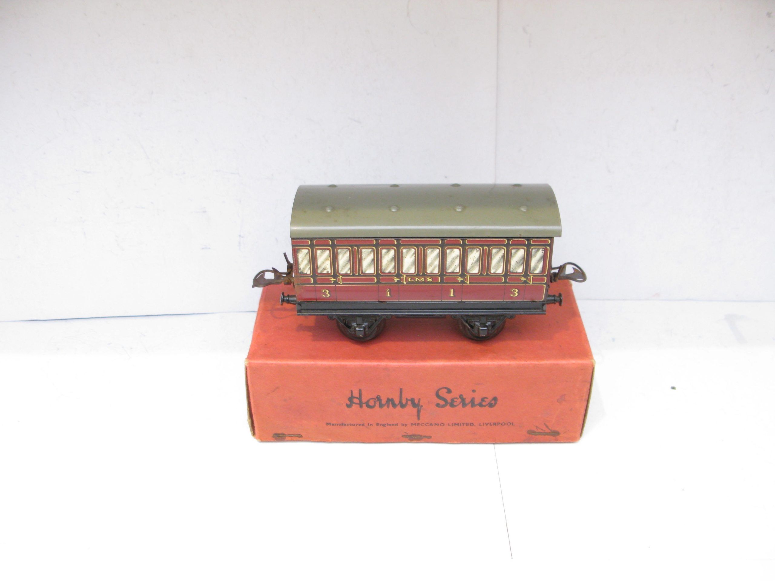 Hornby 0 Gauge No.1 LMS Passenger coaches – Boxed – From the popular range of No.1 Passenger coaches produced in the 1930’s are these LMS consisting 1st/3rd Coaches. These were producted by Hornby for all 4 railway regions and these are the LMS versions. Overall Excellent there are 2 coaches which have the end flaps missing at one end, they other 2 coach boxes are complete. They are all priced at £32 each coach. Overall Excellent in Fair to Excellent boxes.