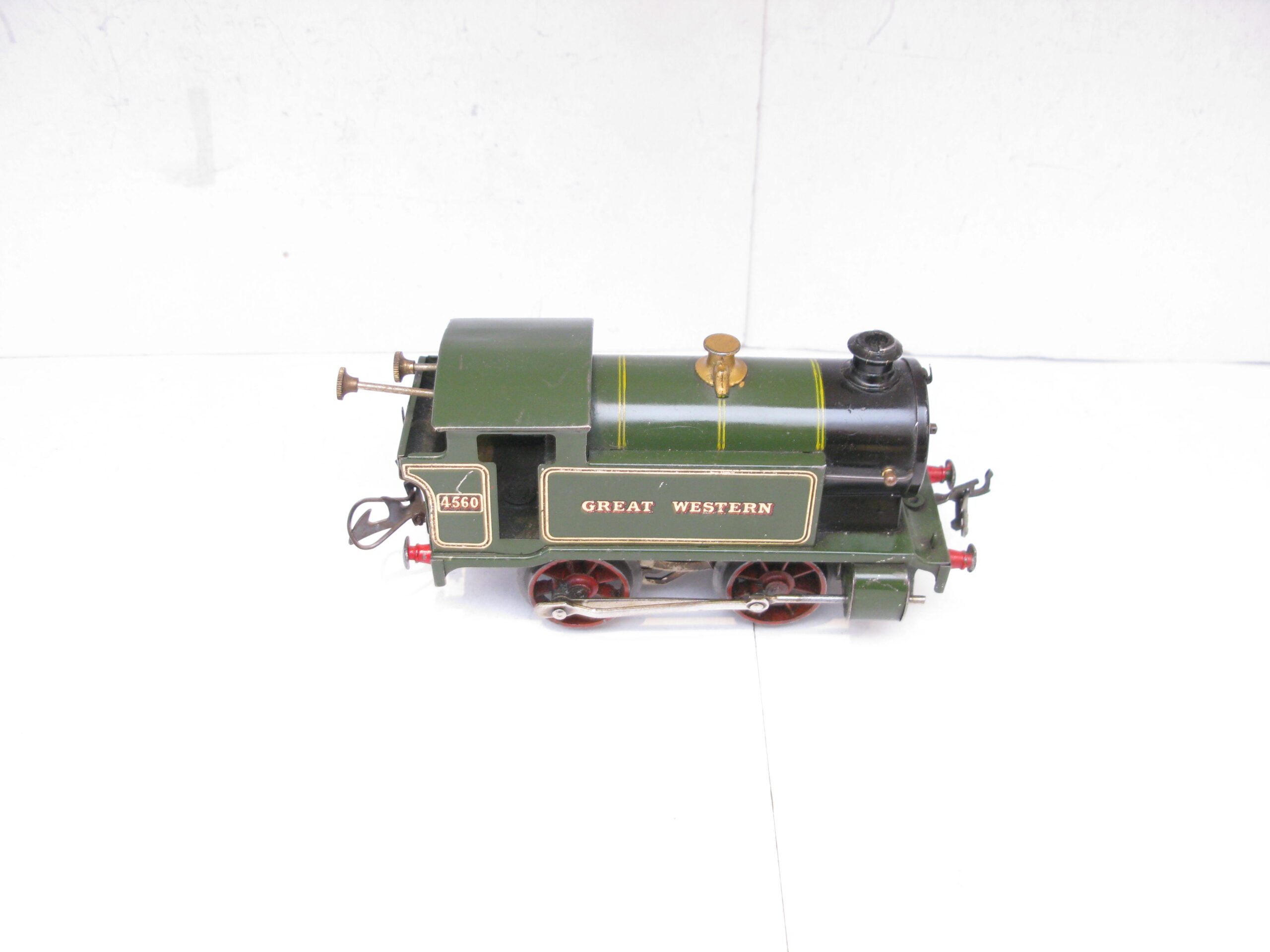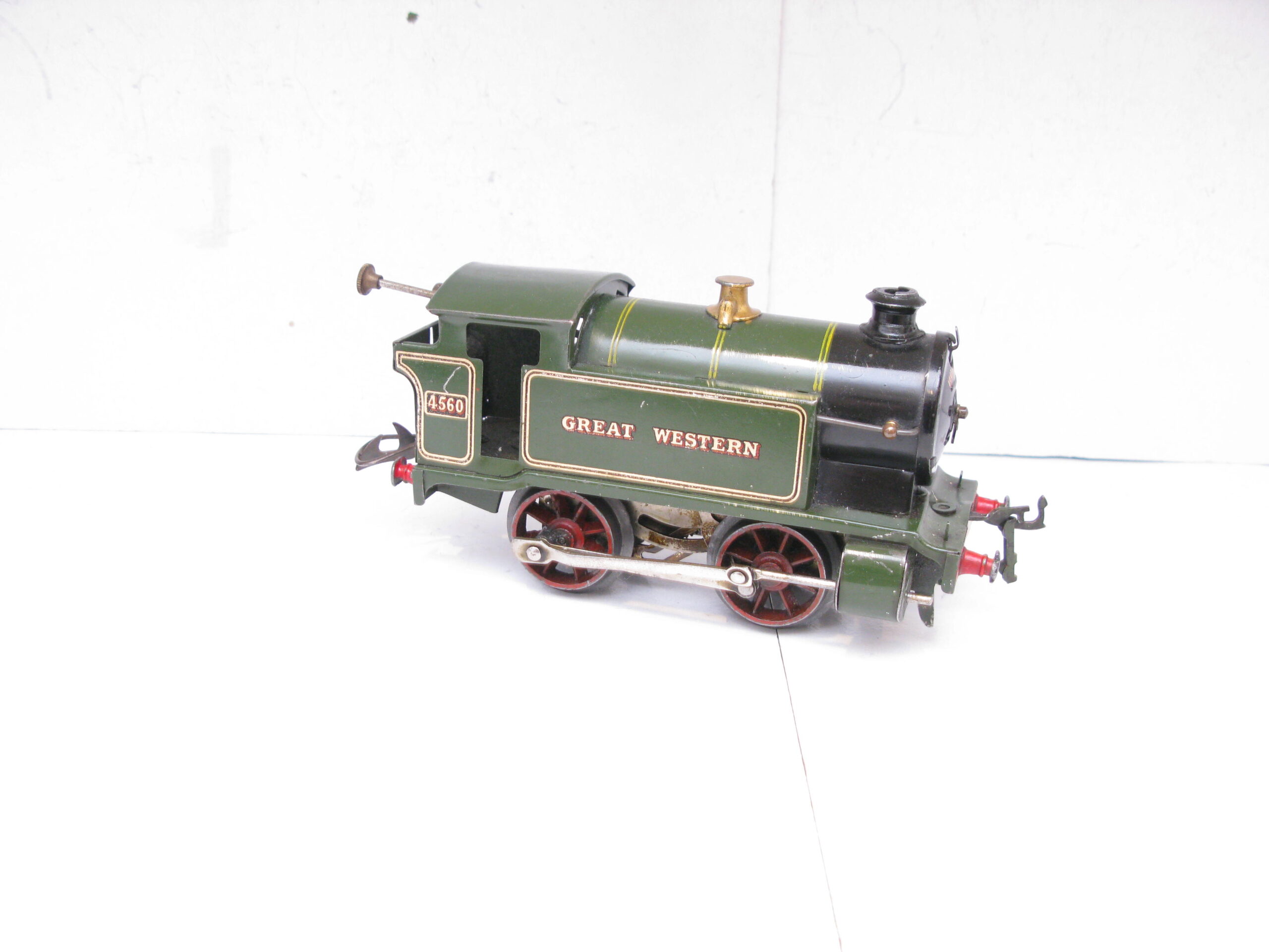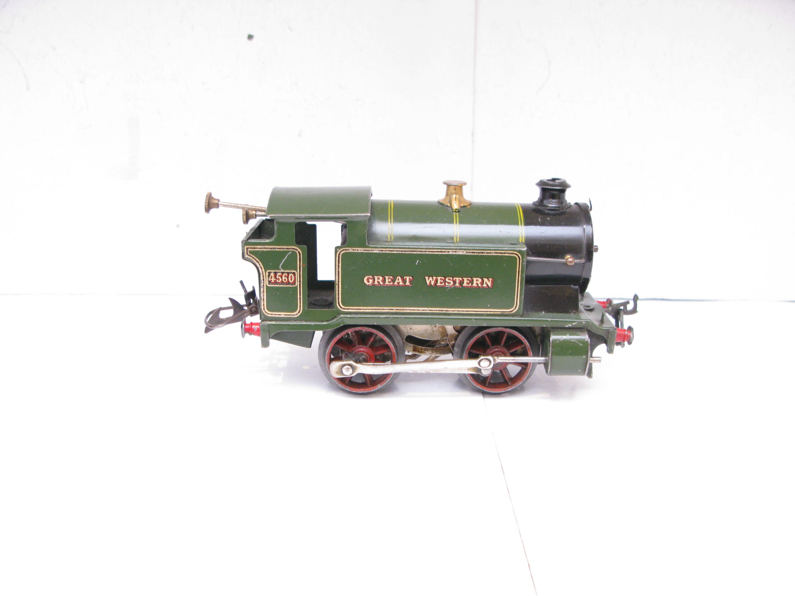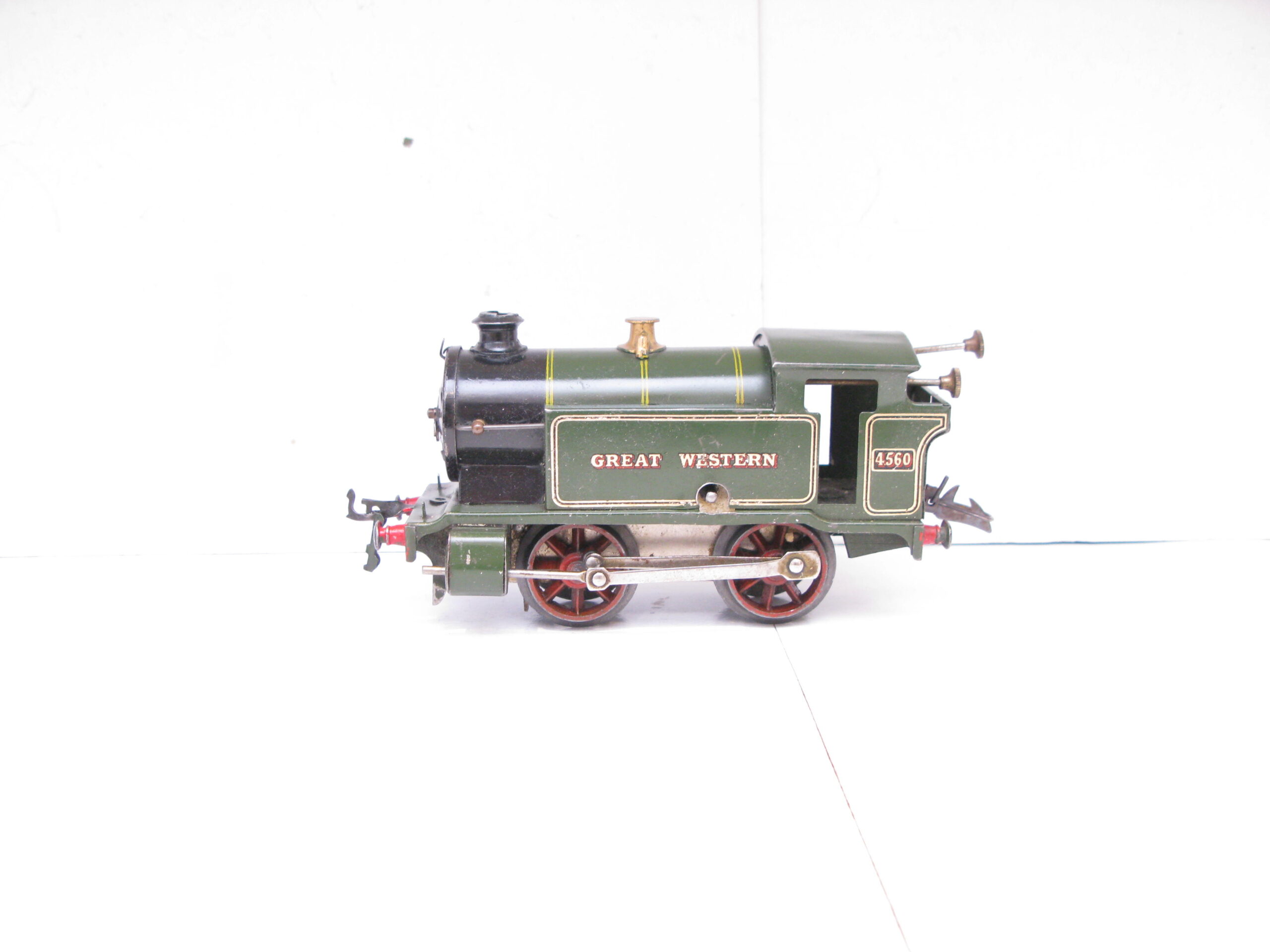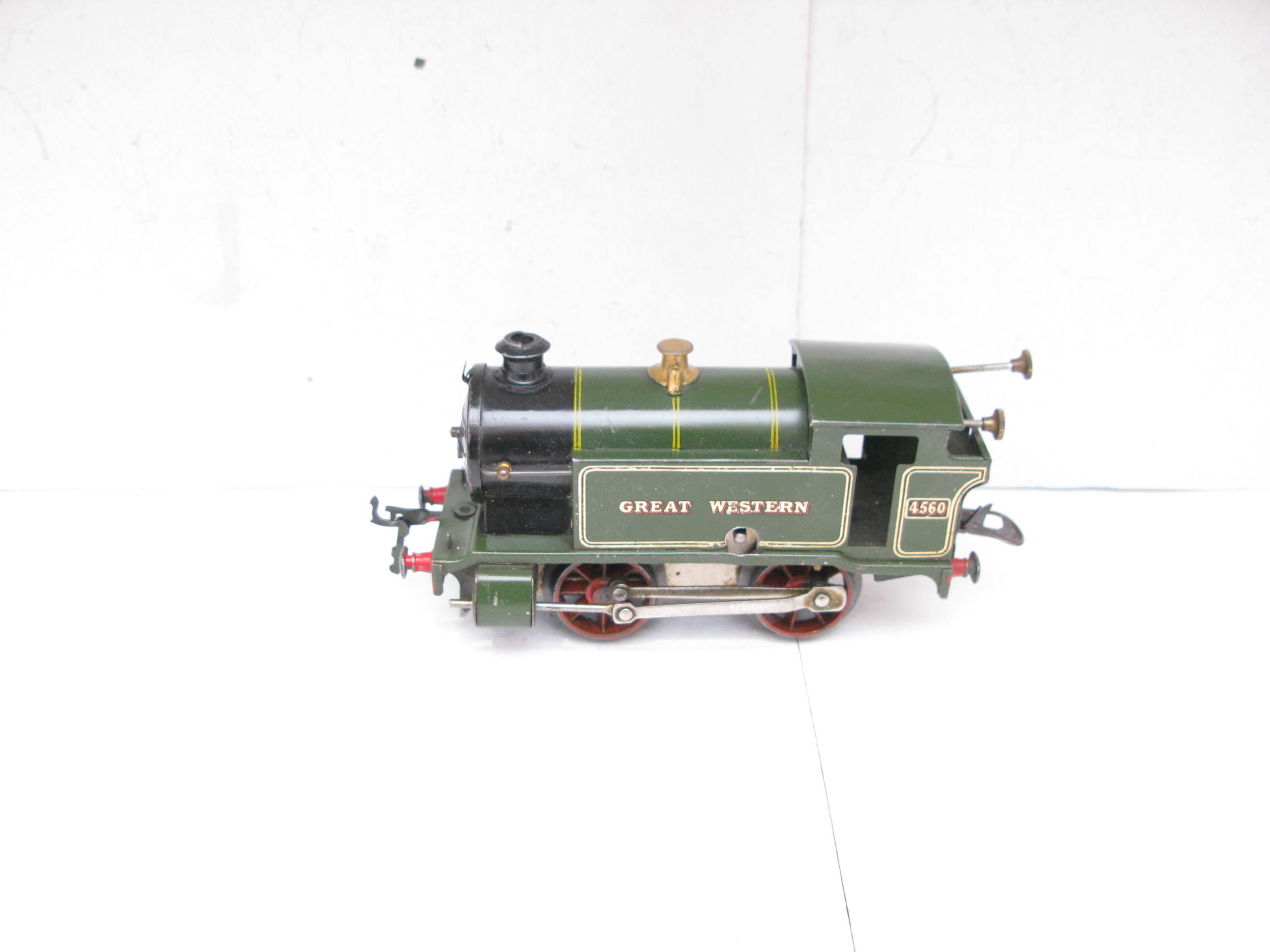 Hornby 0 Gauge No.1 Tank Loco GWR Green No.4560, Clockwork – in reproduction boxes – This is one of the popular No.1 Tank locos which Hornby produced for all 4 regions this example is the GWR version in clockwork No. 4560. Good/plus in Reproduction box and includes the key.
