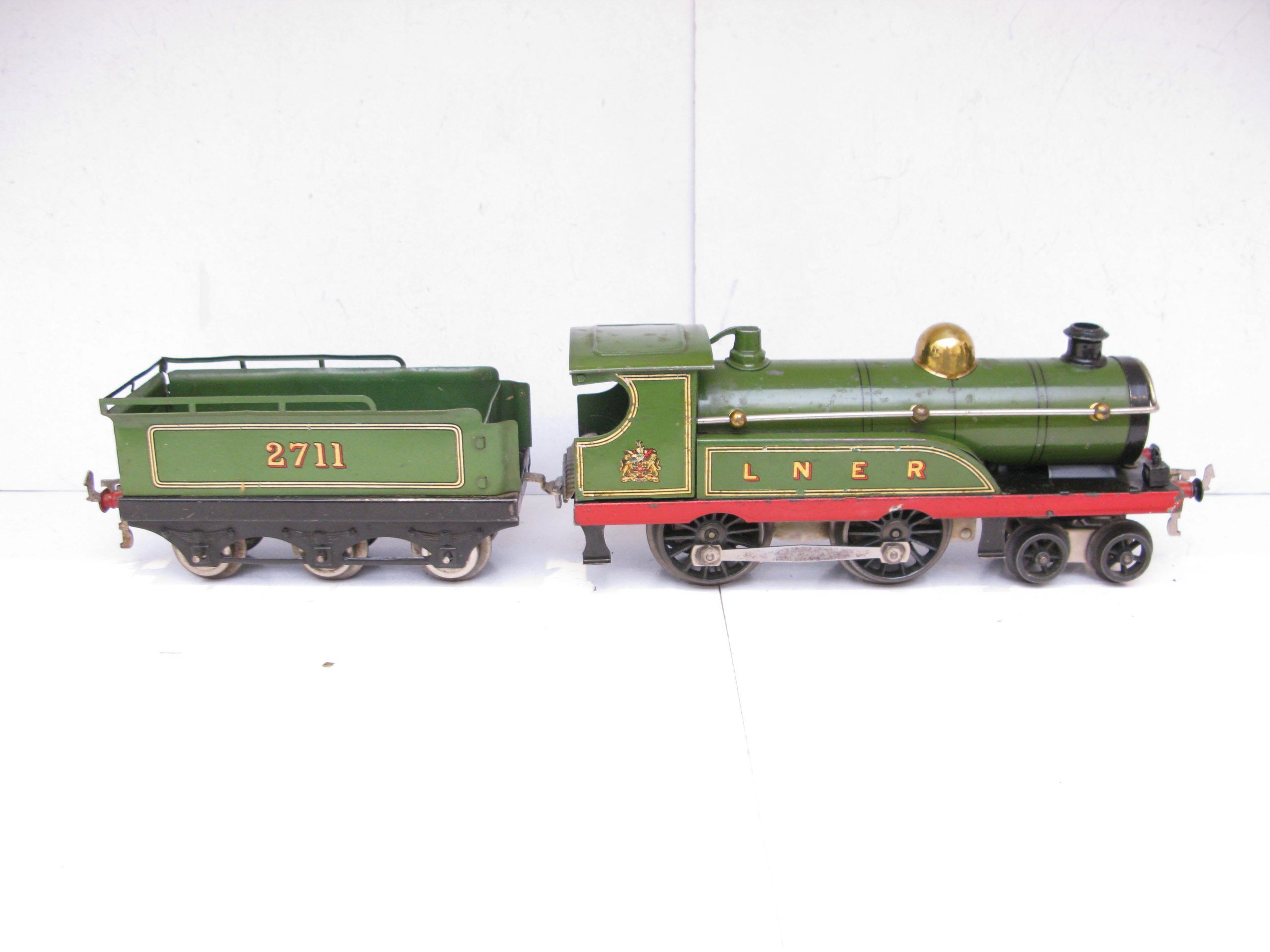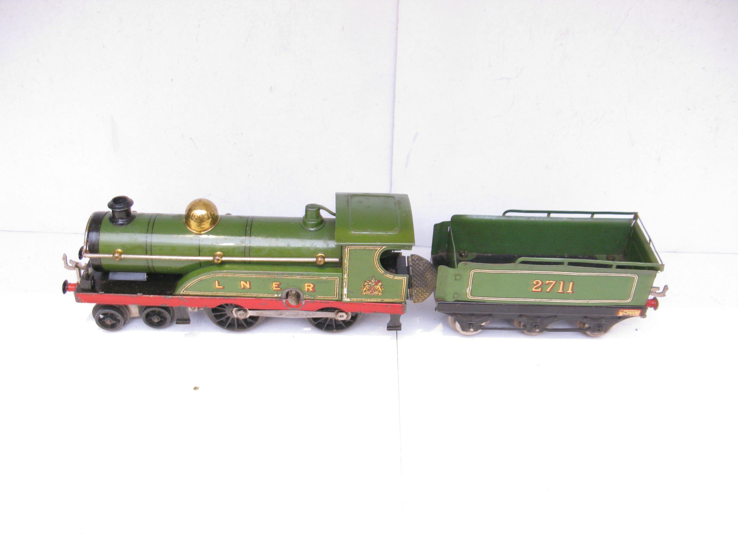 Hornby 0 Gauge No.2 4-4-0 Loco & Tender LNER lined green No.2711, Clockwork – unboxed – Good – From the Range of No.2 4-4-0 No.2711 Loco & Tender is this LNER version with the LNER lettering to the side splashers and number 2711 to the tender sides, overall Good. Hornby produced these for all four regions with the SR version being the hardest to find, any questions please email or phone me.