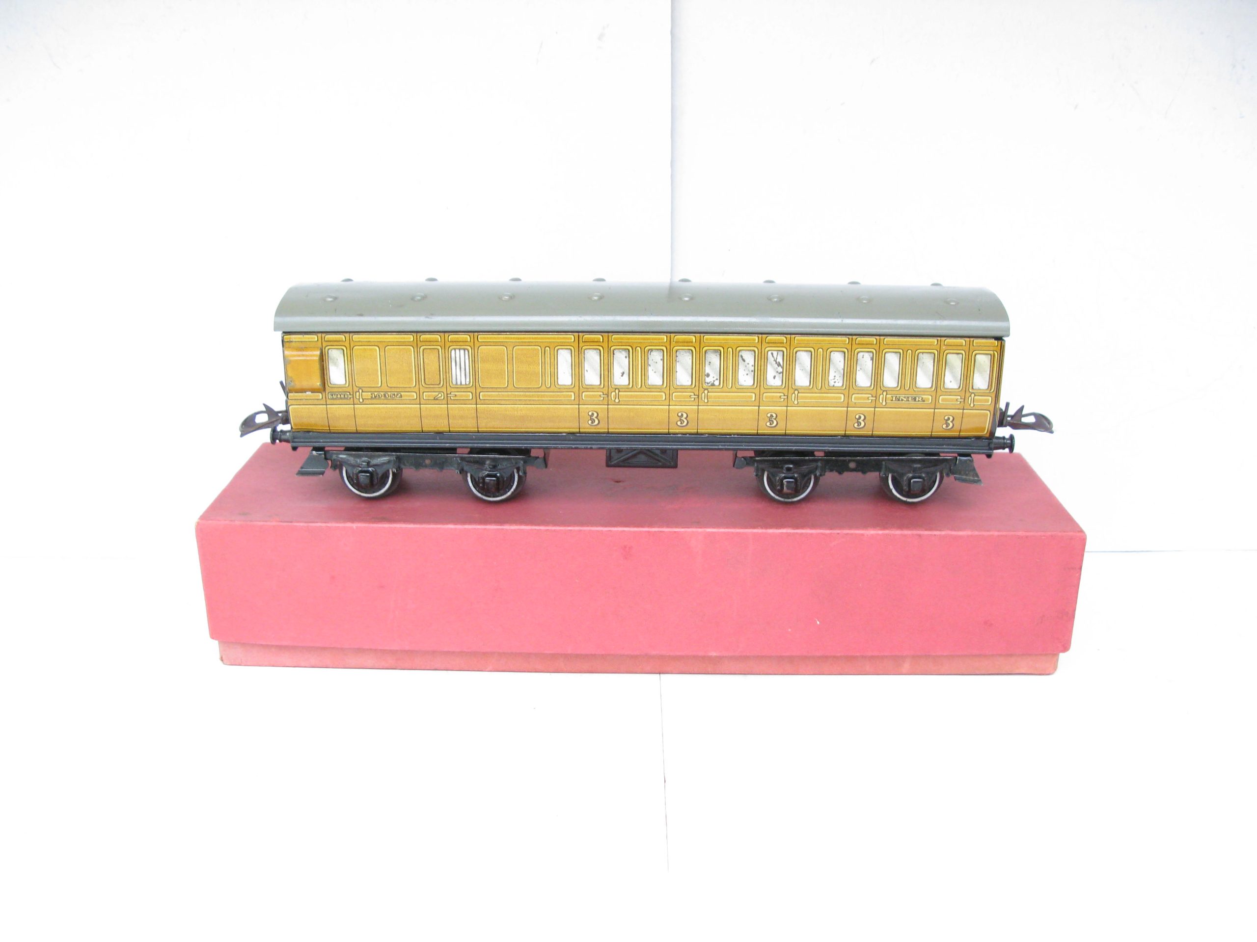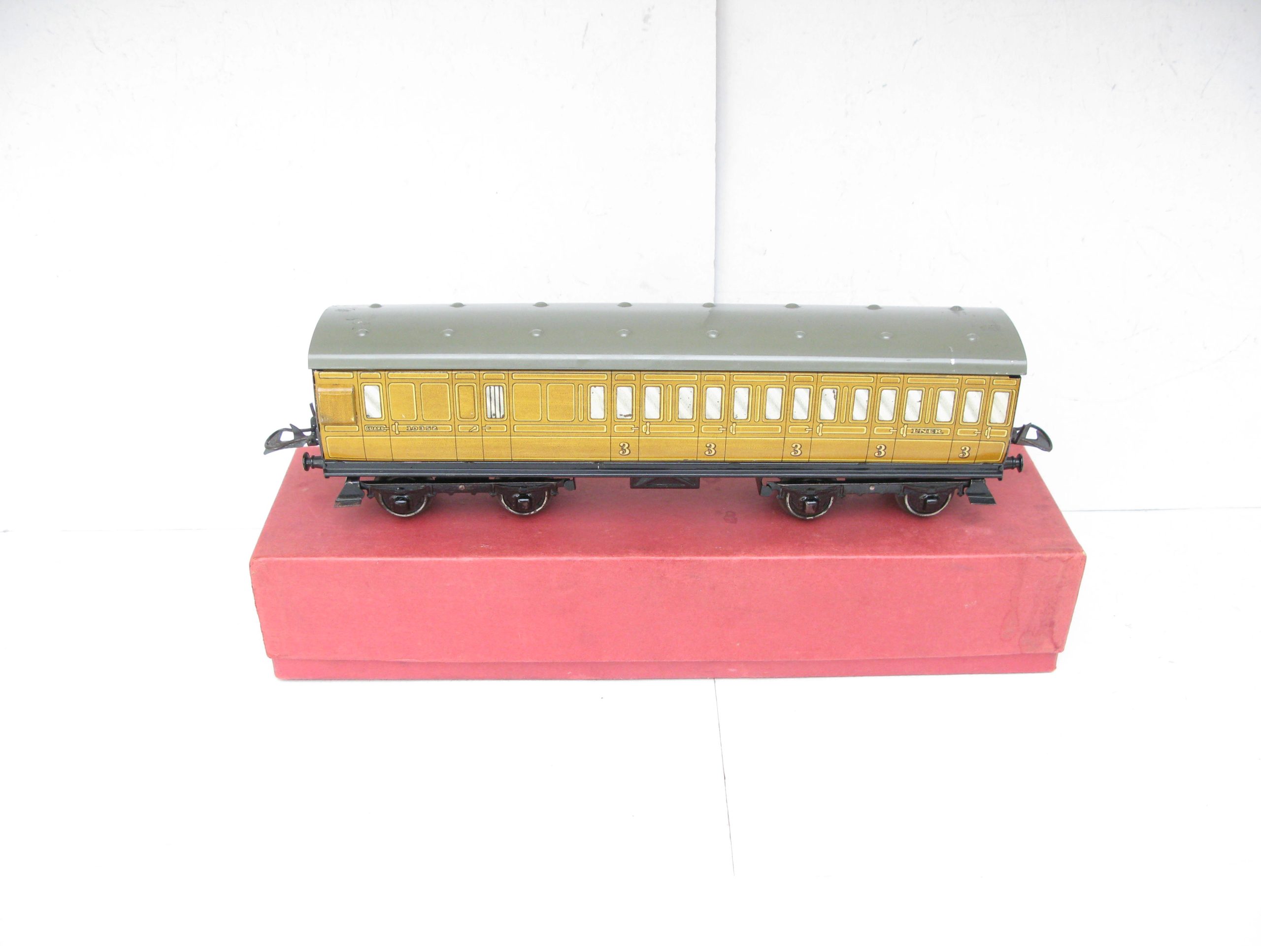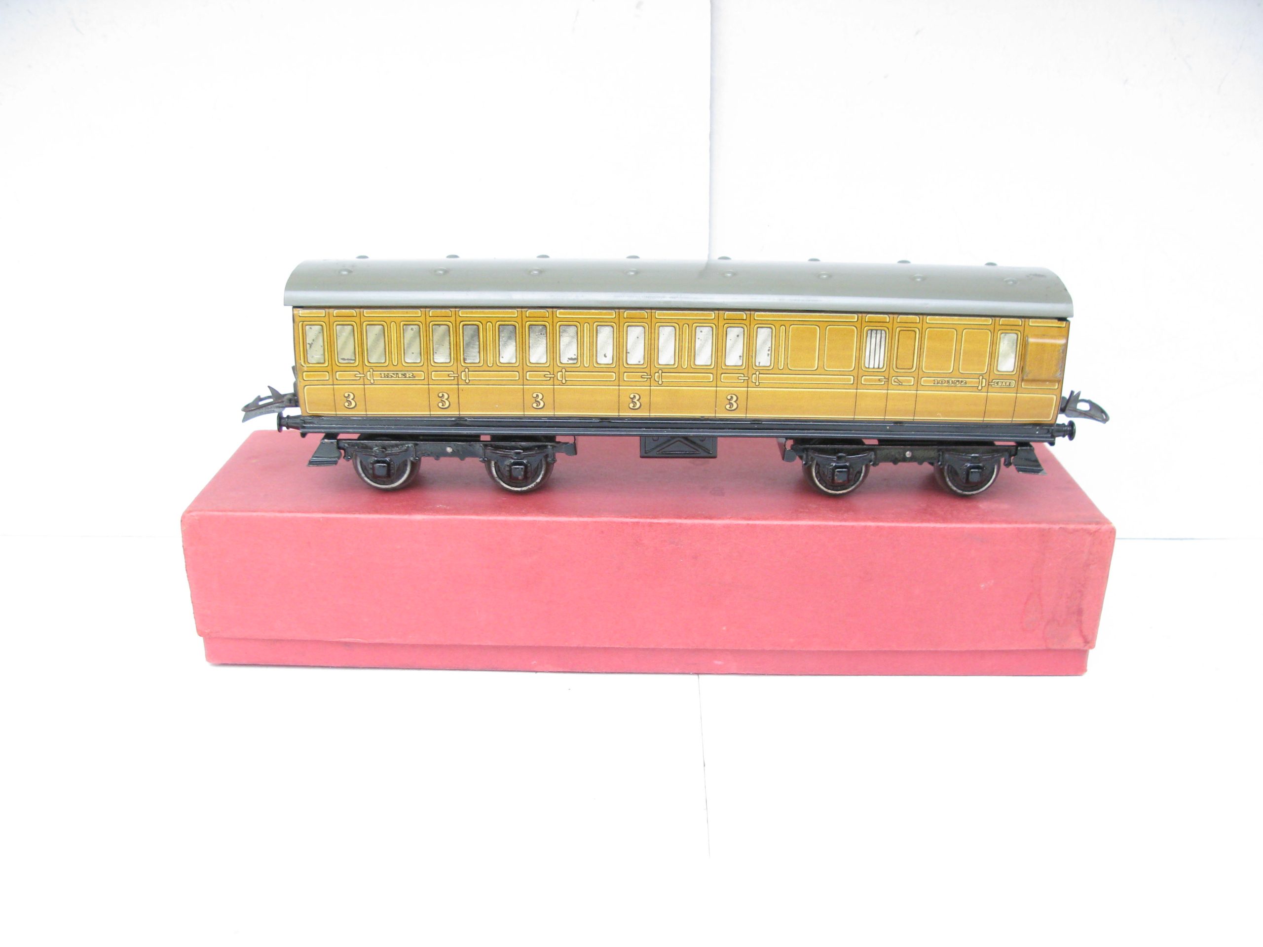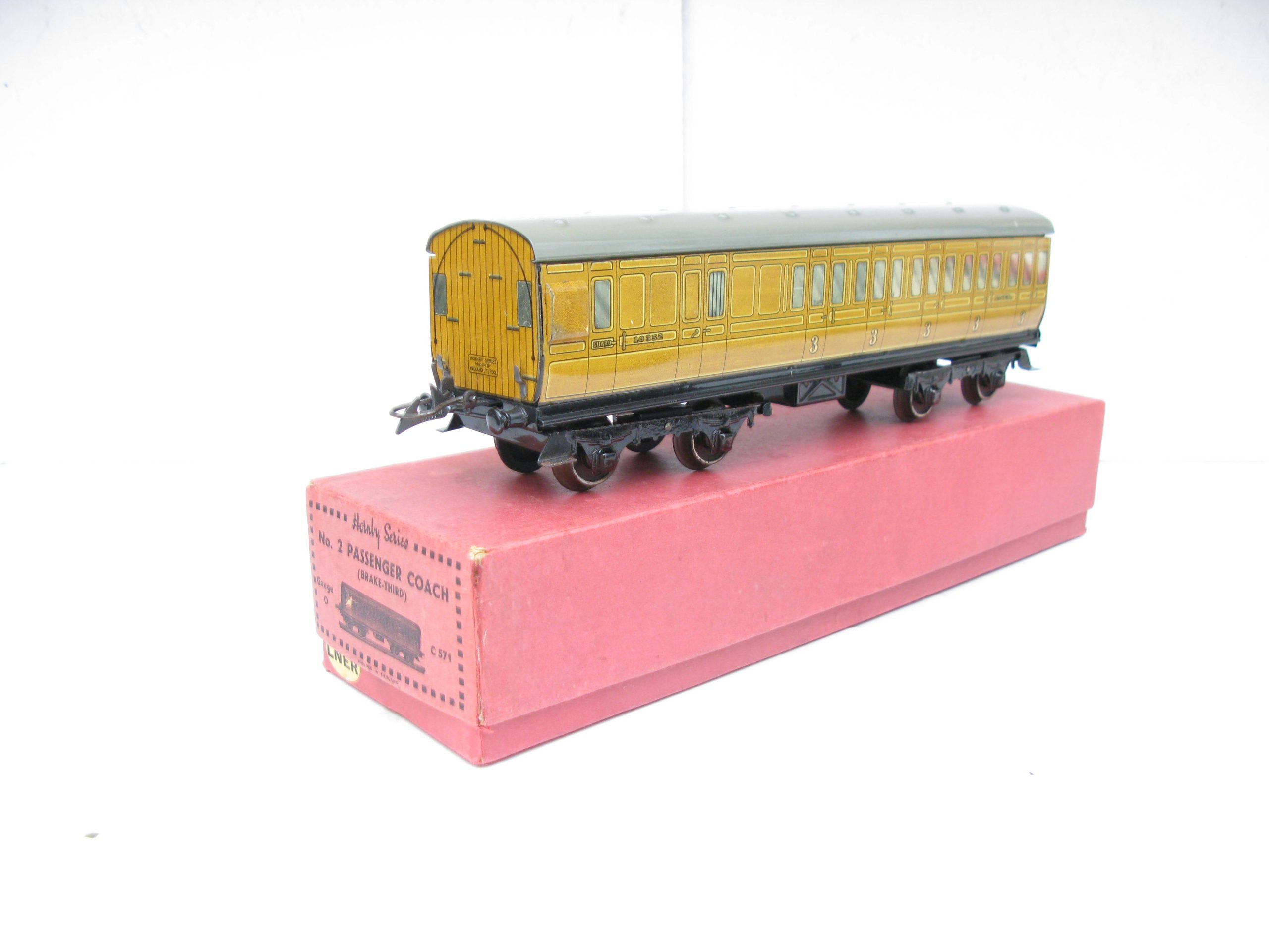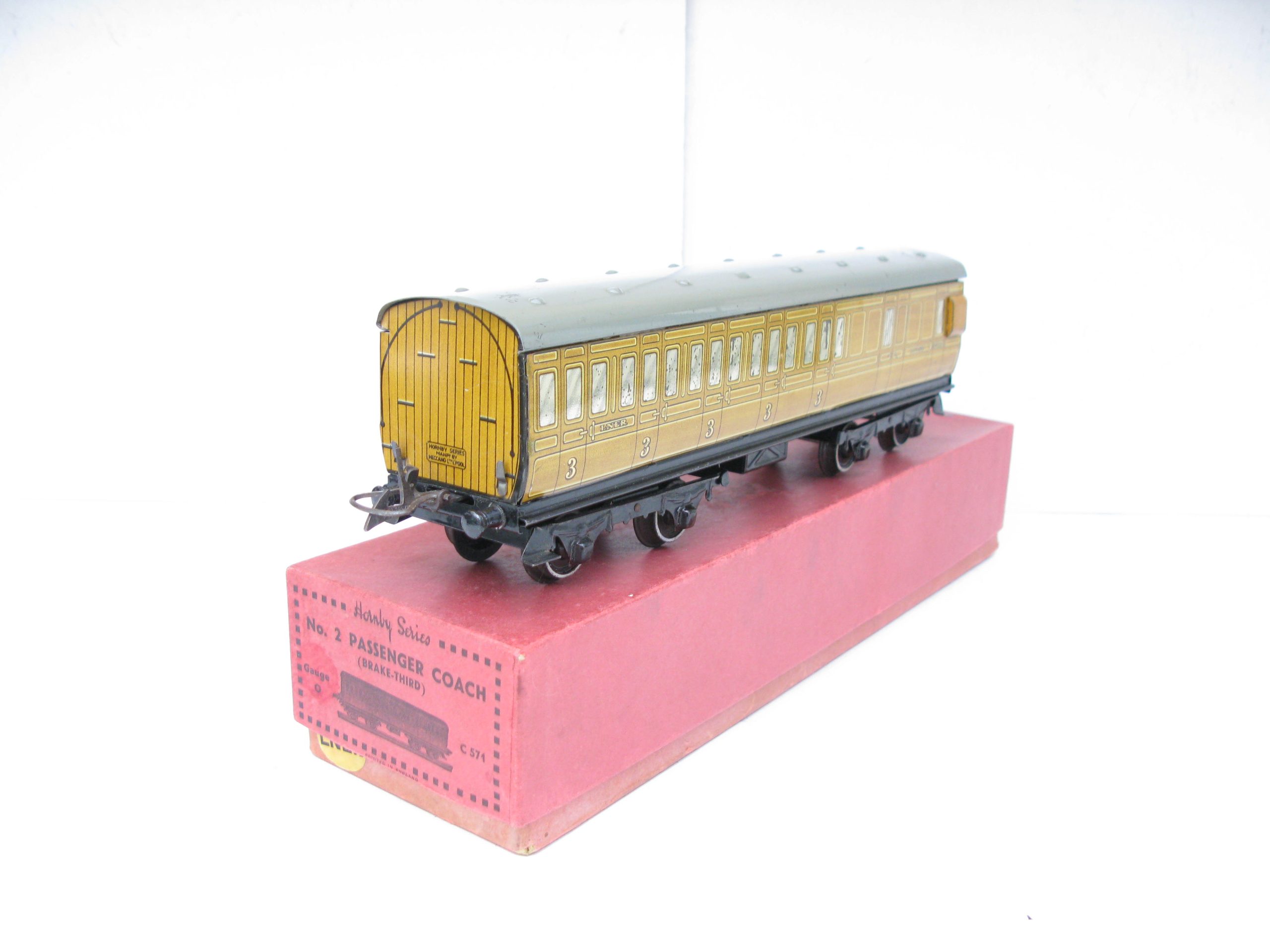 Hornby 0 Gauge No.2 All 3rd Brake end LNER Passenger coach – Boxed – Excellent/plus – This is a No.2 LNER Passenger Brake end Coaches first introduced in 1935, they were produced for all 4 regions. some light marks to the roof from the box staples otherwise Overall Excellent/plus in Excellent box with NE label to one end. 2 available