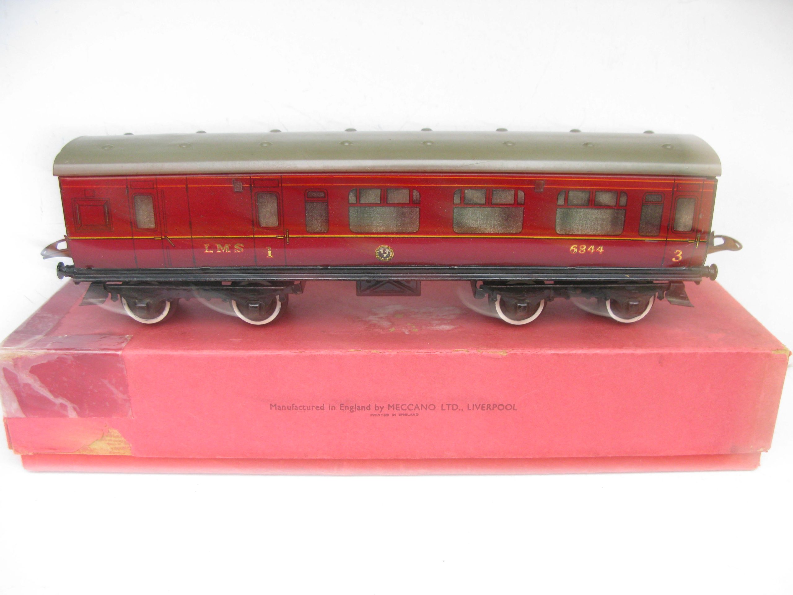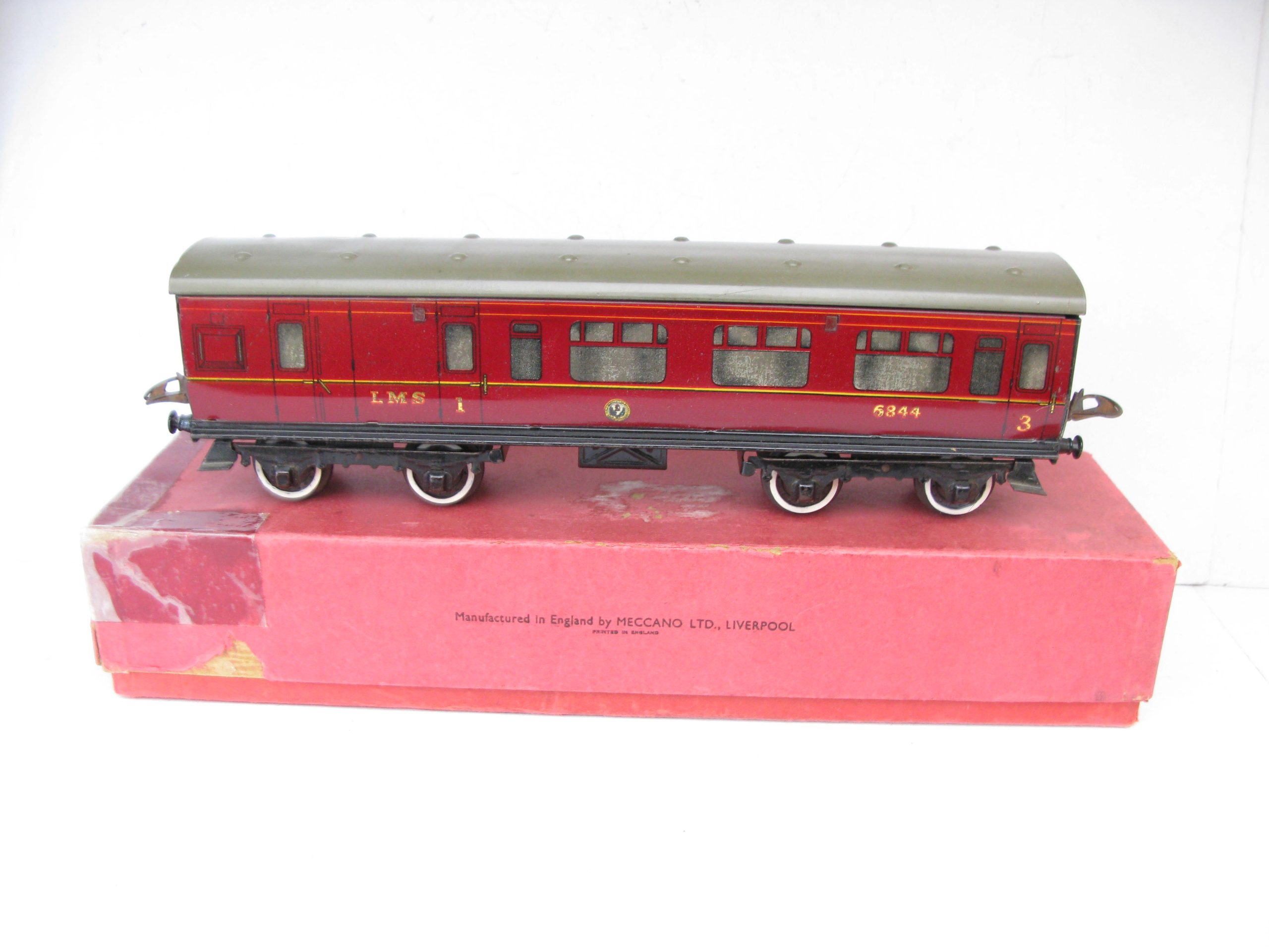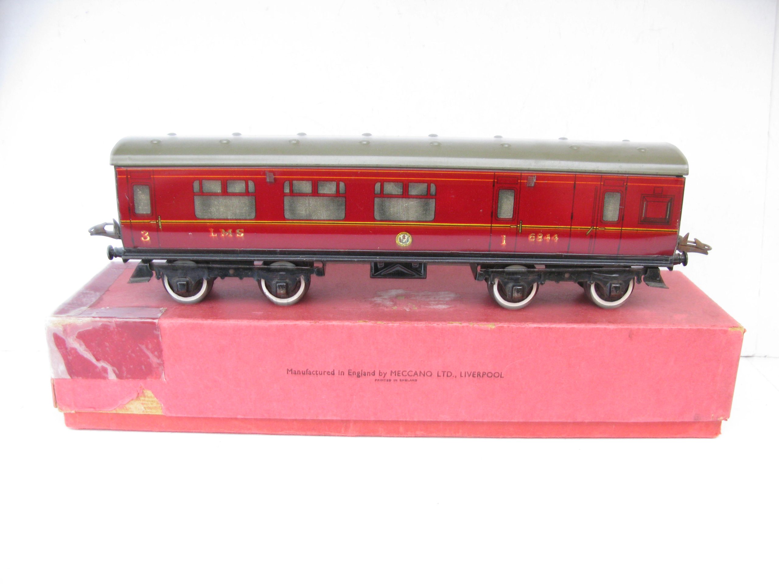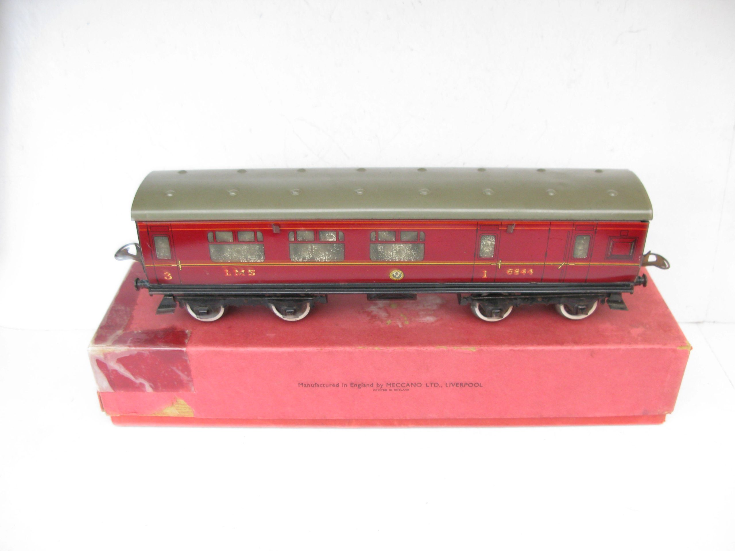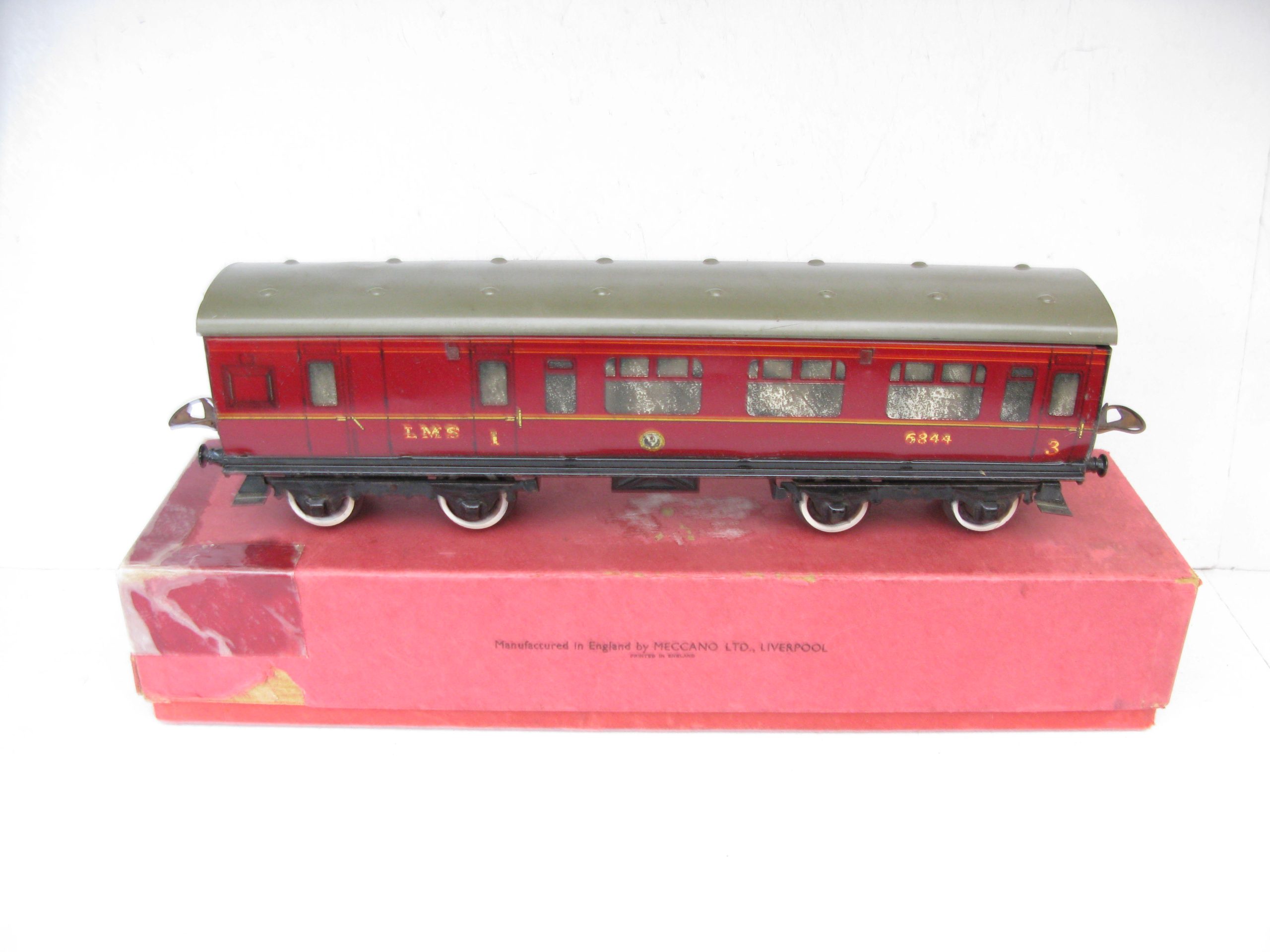 Hornby 0 Gauge No.2 Brake end LMS Corridor Coach – Boxed – Good – Price £48 – Here we have for sale a No.2 LMS Brake end CorridorCoach, some wear to the silvering on the windows, sides are Good, coach fitted with plastic wheel sets all contained in a Fair box with LMS label to one end.