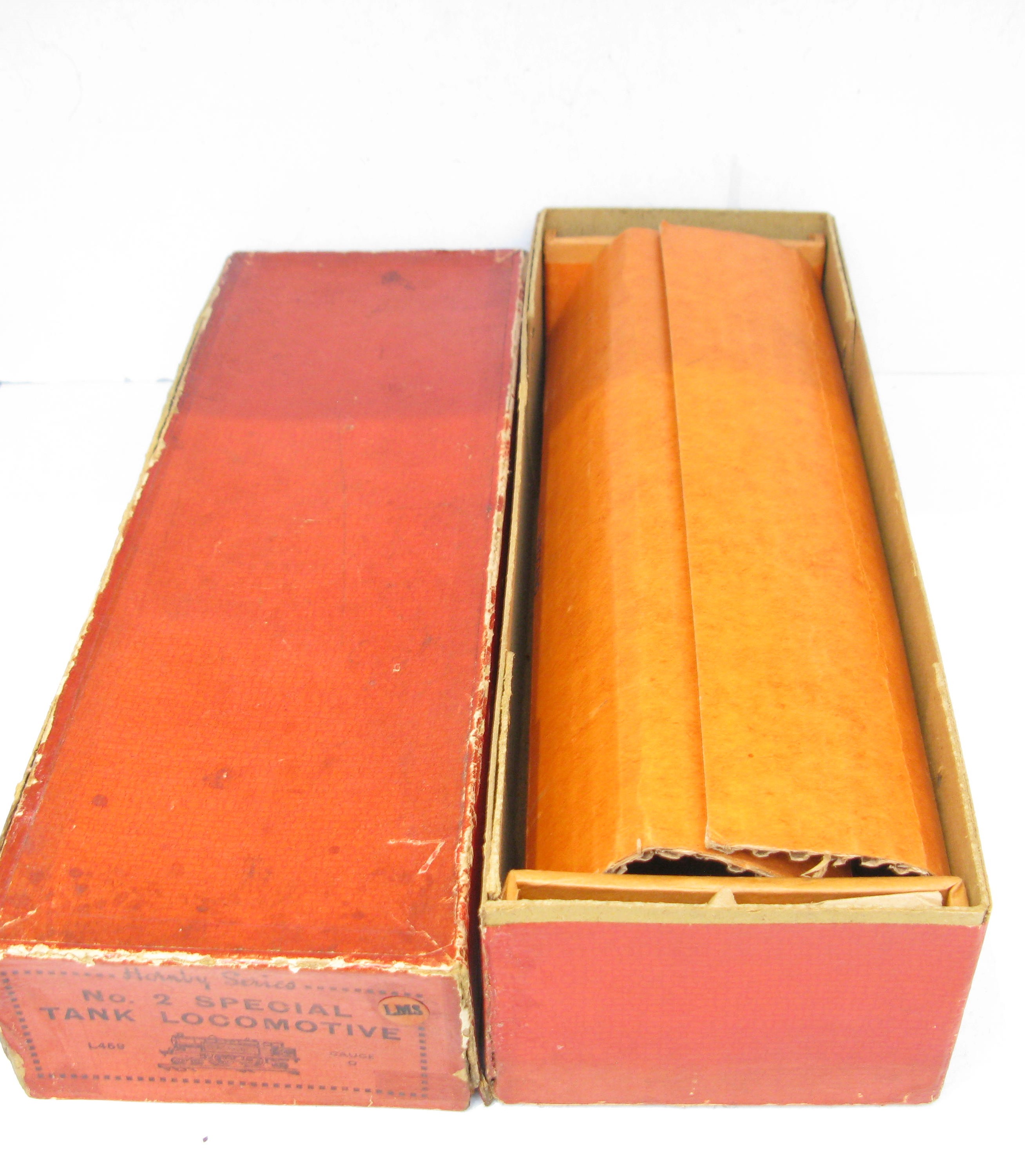 Hornby 0 Gauge No.2C Special Tank Loco LMS Maroon No.6954, Clockwork Circa 1936/38 – Boxed – From the Range of No.2 Special Tank Loco’s produced is this clockwork version dating from 1936/38. The example shows little sign of use and is in Near Mint to Mint overall condition with Test Tag, Key, Spanner, Lamps and loco boiler cover, all contained in an Excellent box with LMS label to one end. A super opportunity to add this Loco to your stud in expectational seldom seen condition.