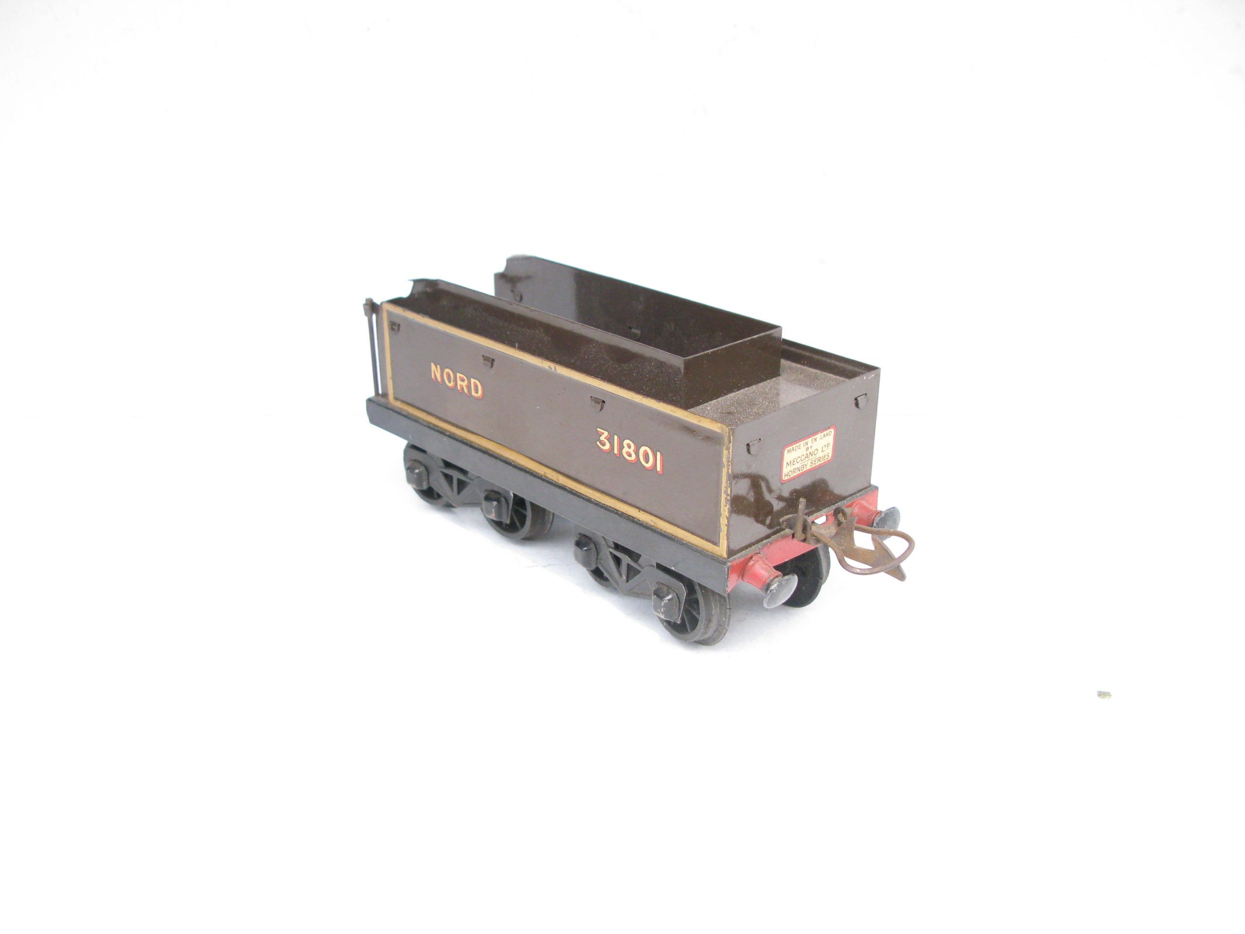 Hornby 0 Gauge No.3 Special Tender in NORD Brown No.31801 – unboxed – Here we have a spare No.3 Special Tender in lined NORD Brown No.31801 which is suitable for a No.3C (clockwork) or E (electric), ‘NORD’ Locomotives, The tender is in Excellent overall condition and ideal for any collector missing the tender. PLEASE NOTE this sale is for the Tender only so if you are looking for one to go with your Locomotive look no further.