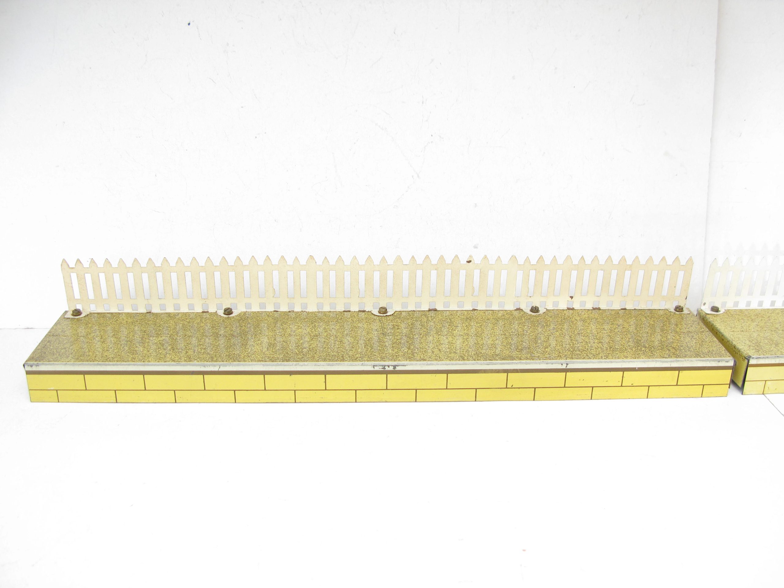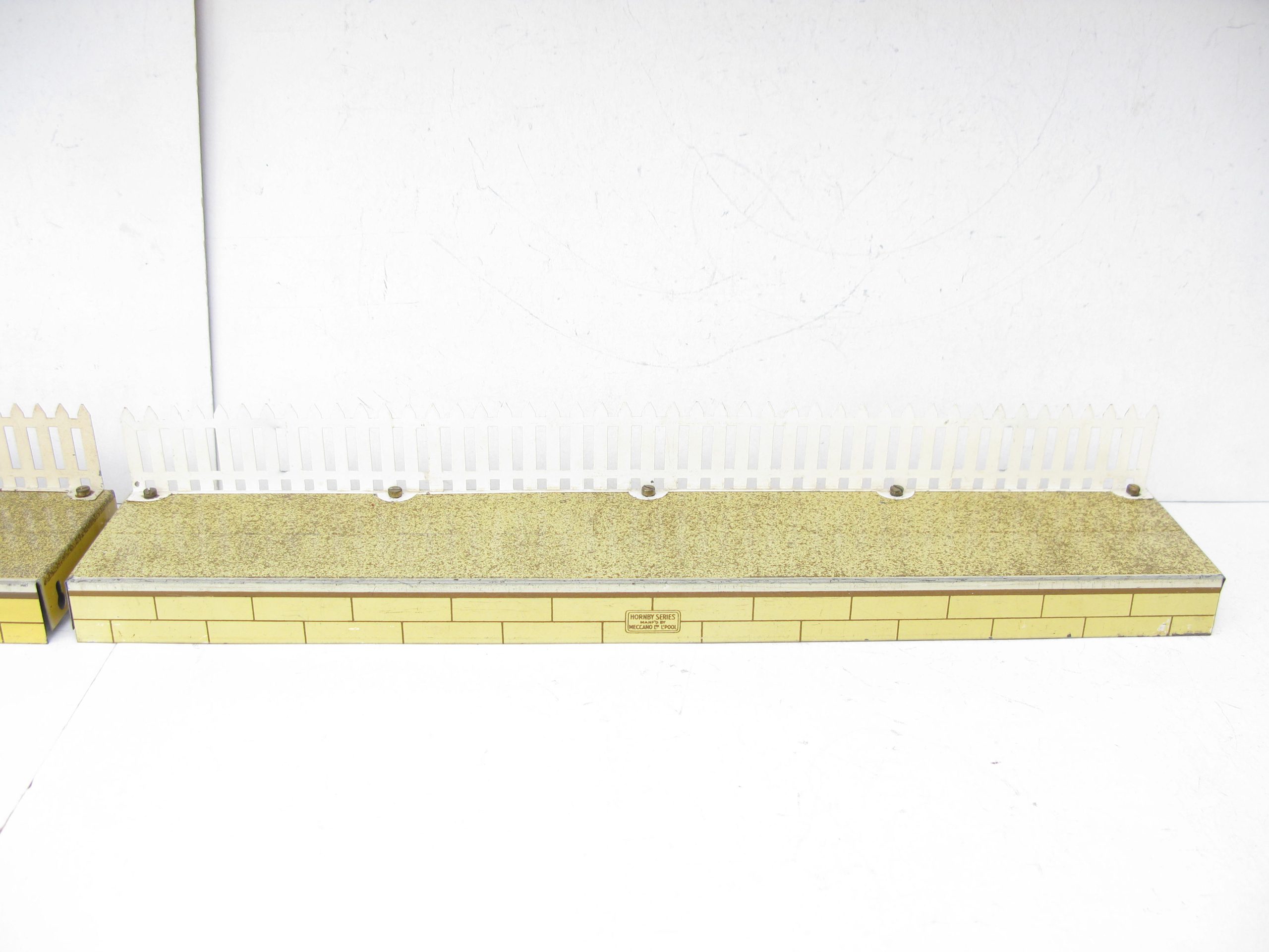 Hornby 0 Gauge Speckled finish Passenger Platform with Fencing – unboxed – Excellent – This is the Speckled finish version of the passenger platform to go with the stations with the same colour bases from 1937/38. Thre are 2 here Circa 1937 and the later version Circa 1939, both are fitted with fencing. Overall Excellent unboxed. A great addition to any Hornby collection.