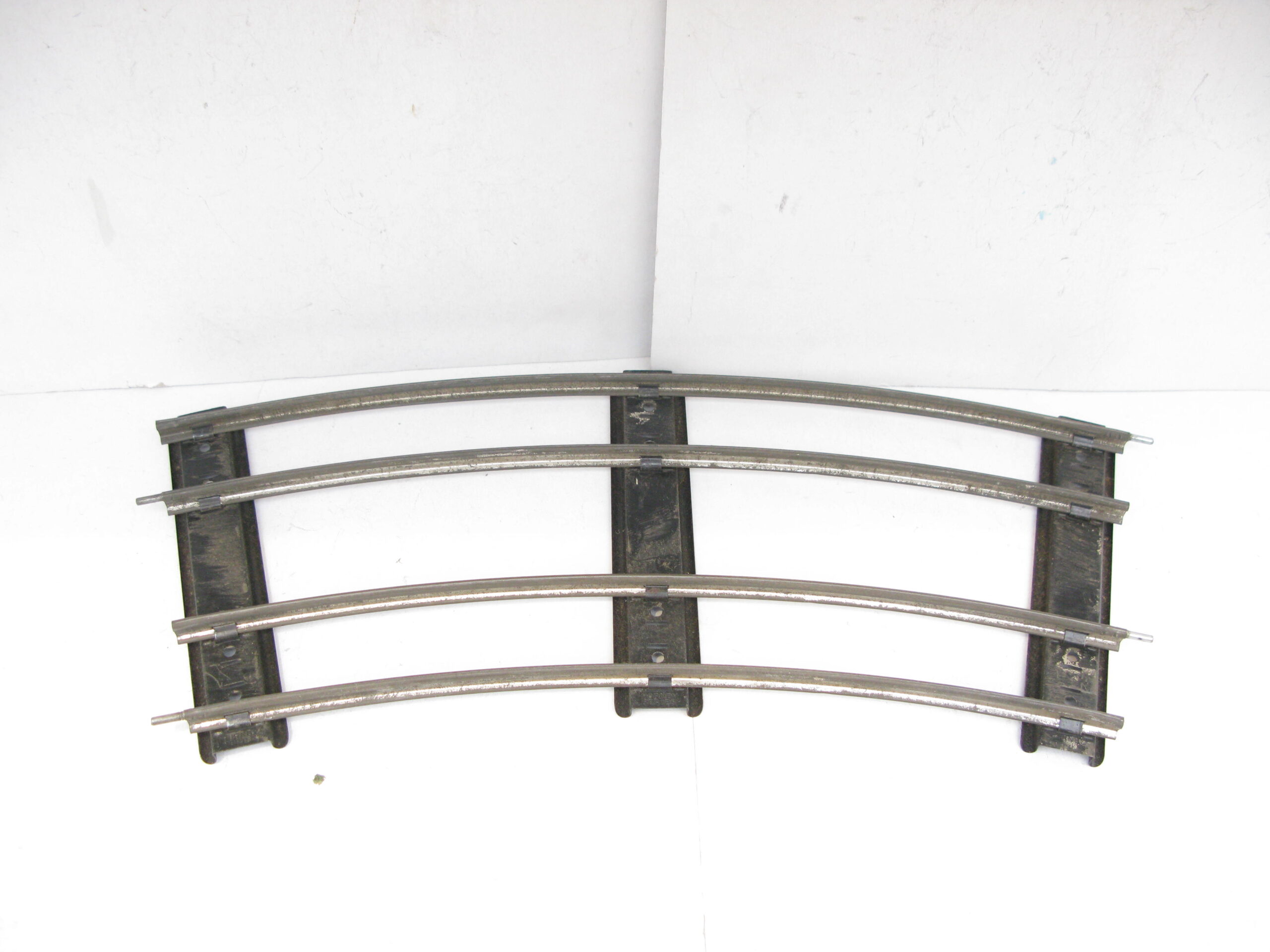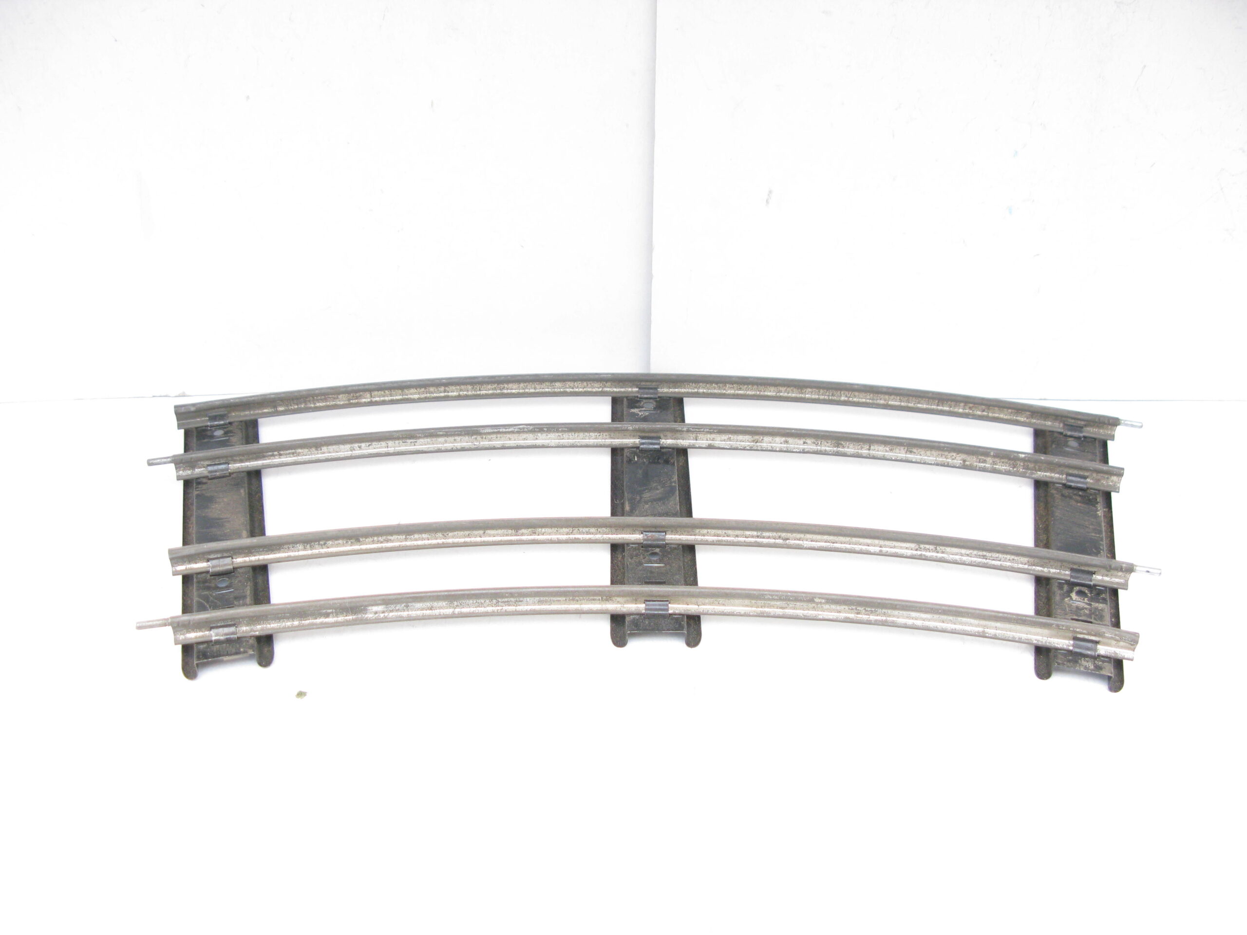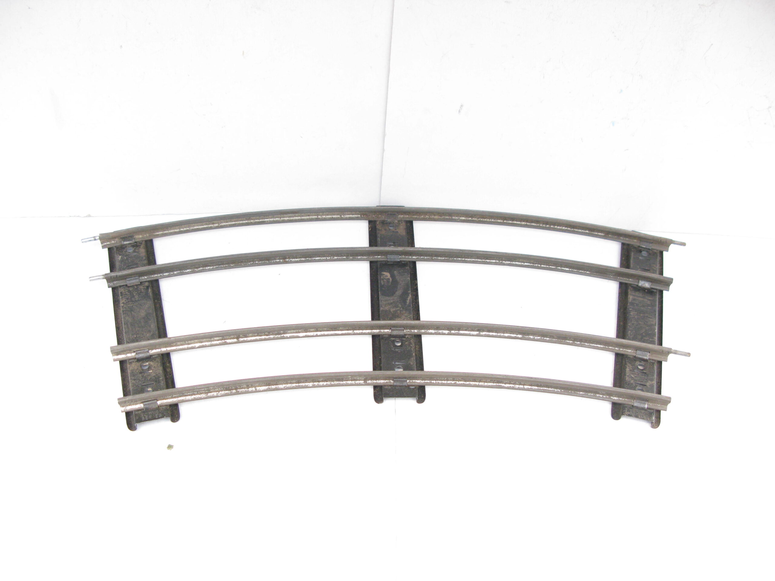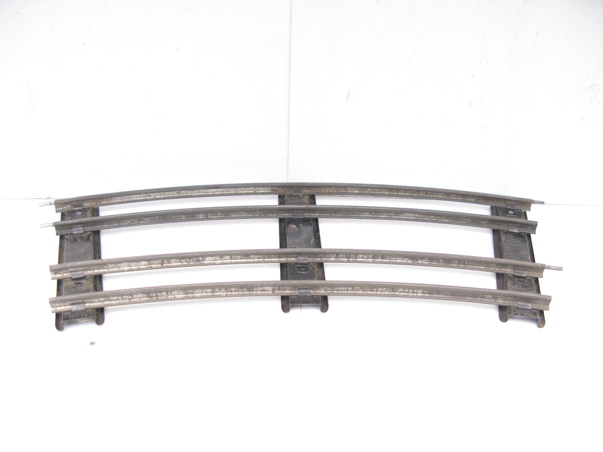 Hornby 0 Gauge Tinplate 2-Rail Clockwork Double Curves *12 (complete circle) – unboxed – Here we have double 2-rail clockwork curves track *12 making a complete circle. There is some wear but in Generally Very good condition overall which make a complete double circle. The price is £125 for all 12 pieces.