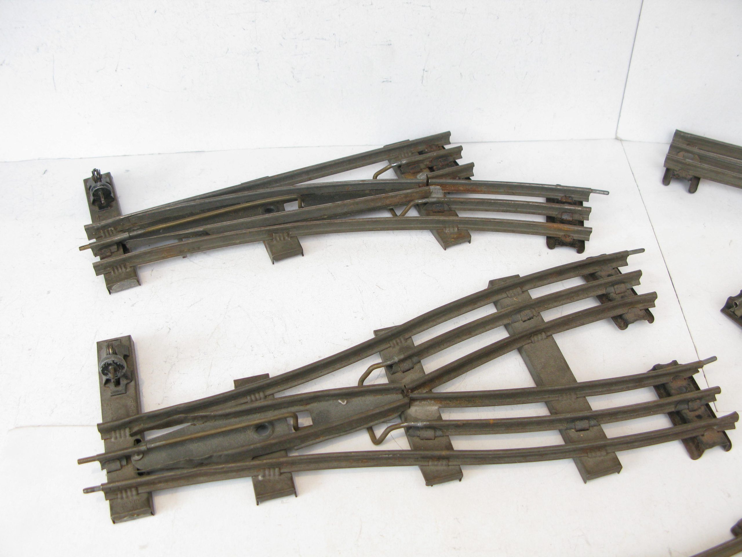 Hornby 0 Gauge Tinplate 3-rail electric, Left hand – Right hand – and Parallel points – unboxed – Here we have a quantity of electric 3-rail points left and right hand and parallel all unboxed, in need of a light clean but all usable, overall Good. These are being sold each at £5, please email me for the quantity you are looking for, thank you