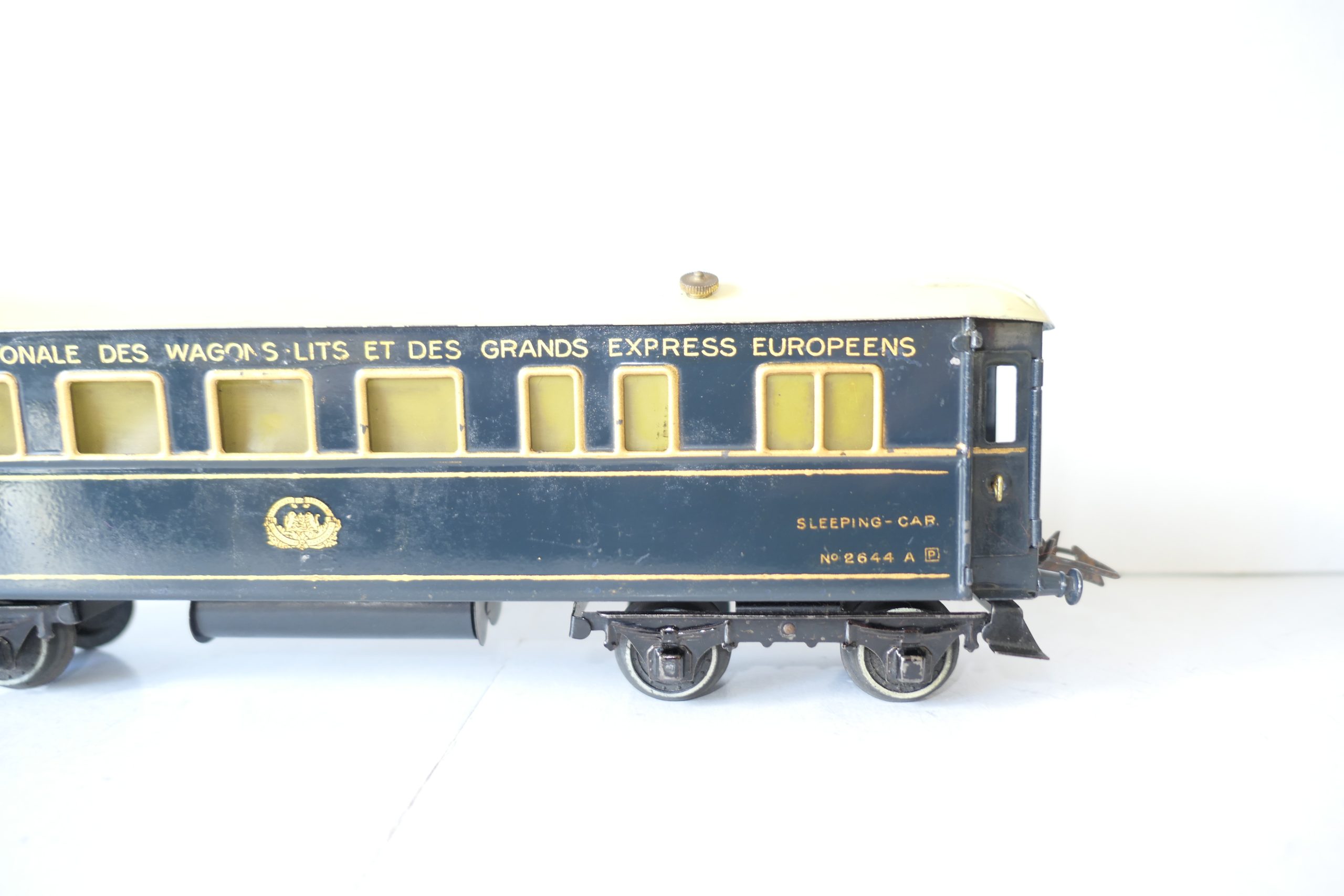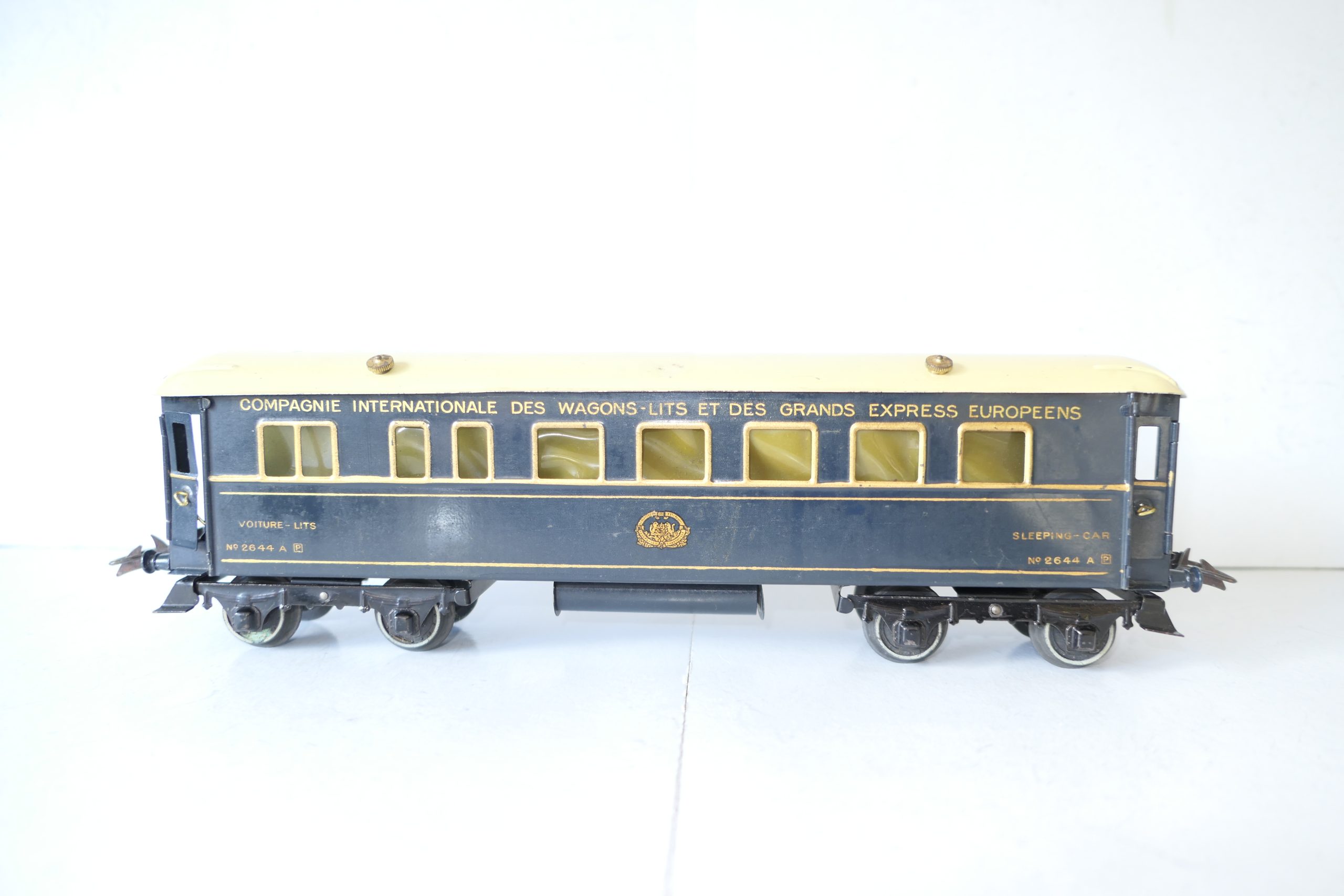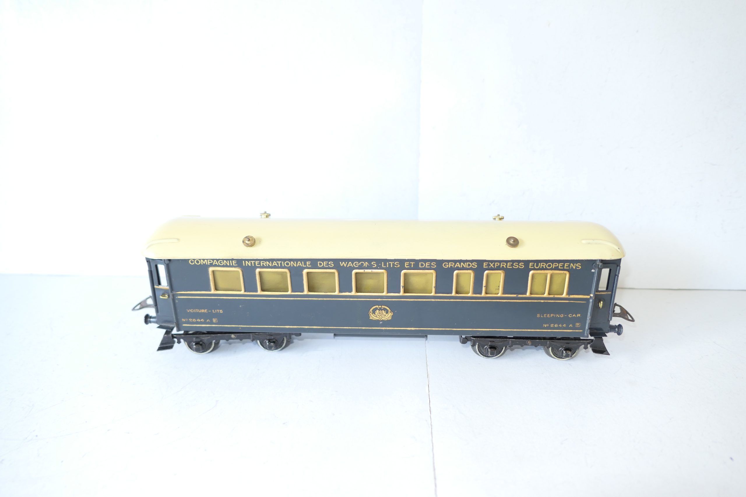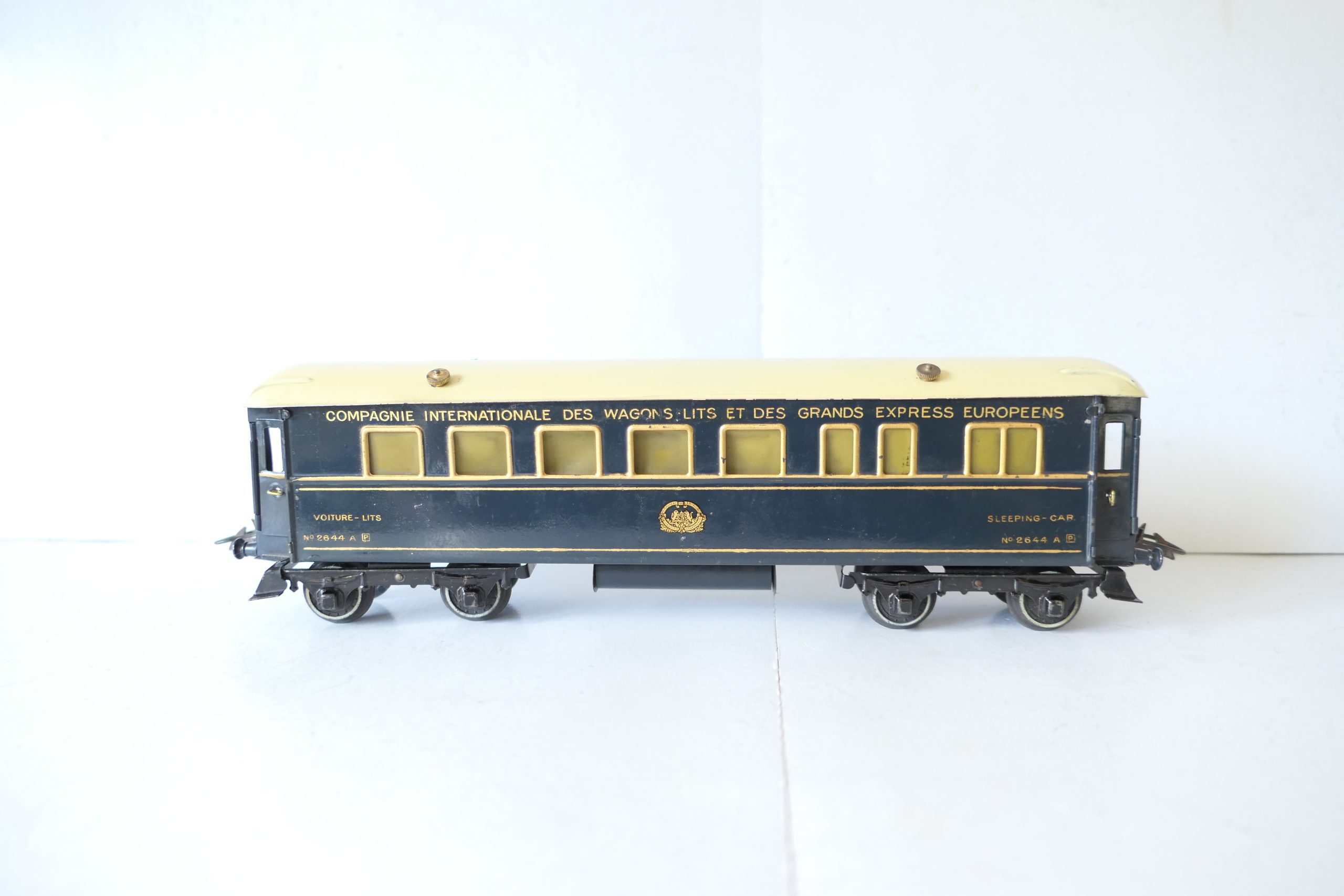 Hornby 0 Gauge Wagon-Lits Grand European Express all Blue Sleeping Car – unboxed – Excellent – Here we have one of a pair Wagon-Lits Grand European Express all Blue Sleeping car. All blue car with gold lettering and lining, sides are Excellent, roof is Good/pluso, unboxed. We have a pair the other being the Dining Car, so have a look they make a nice train.