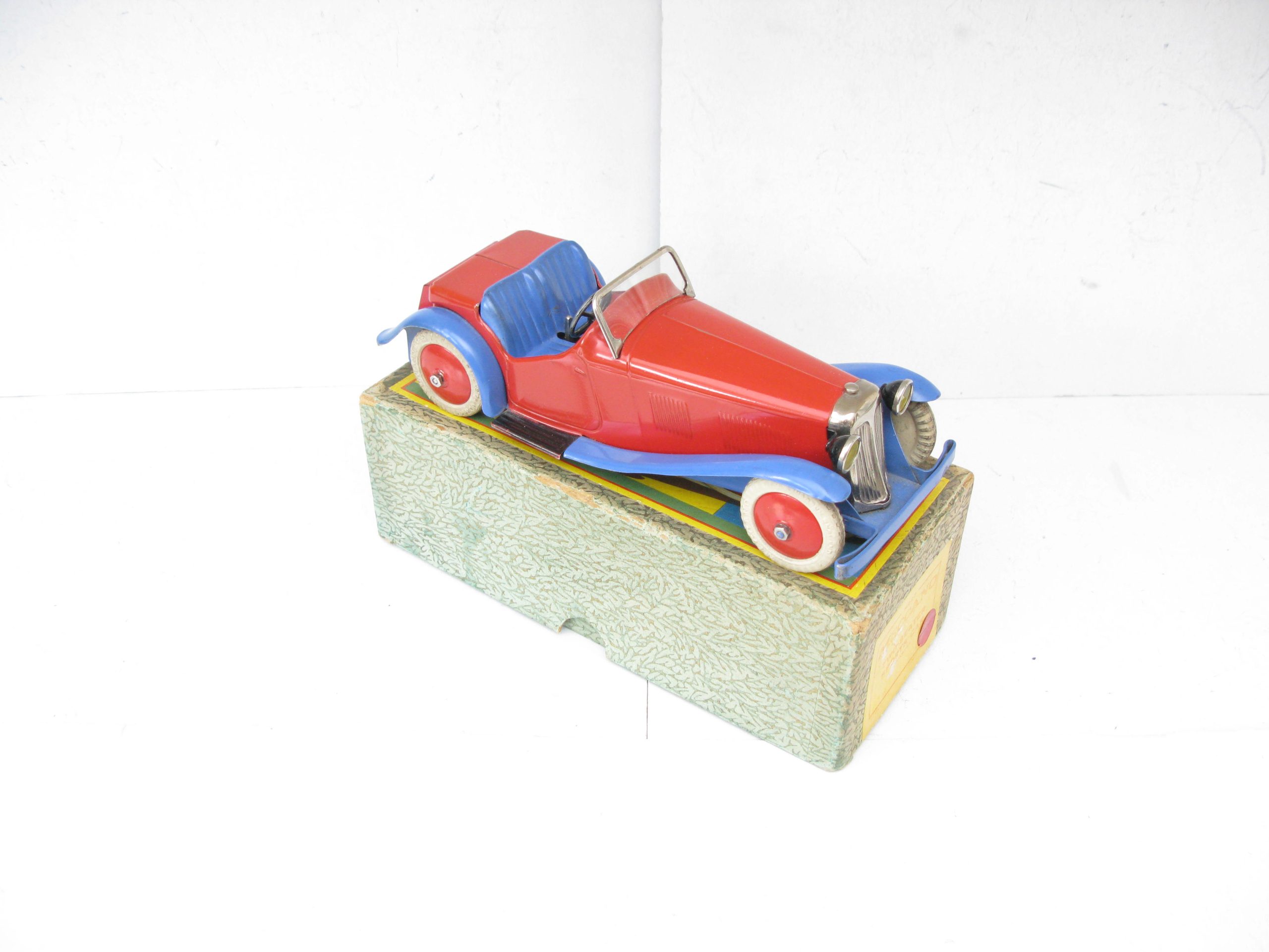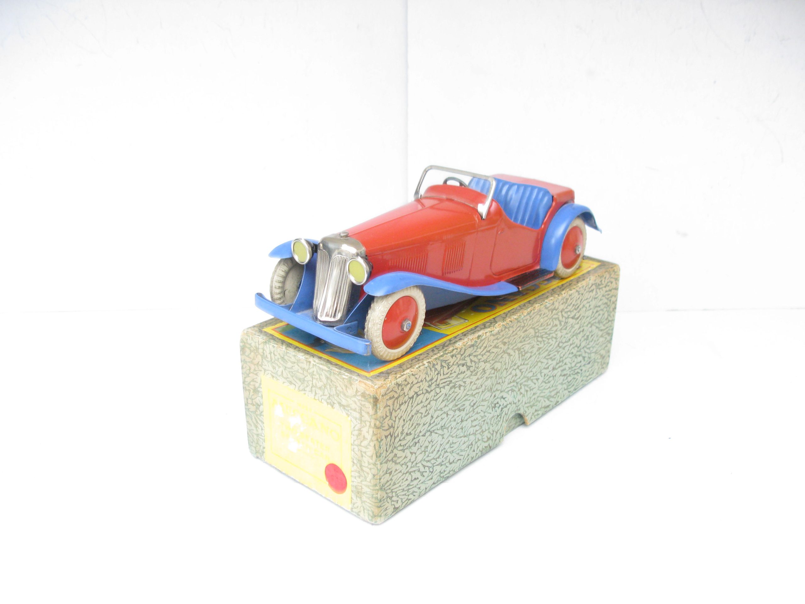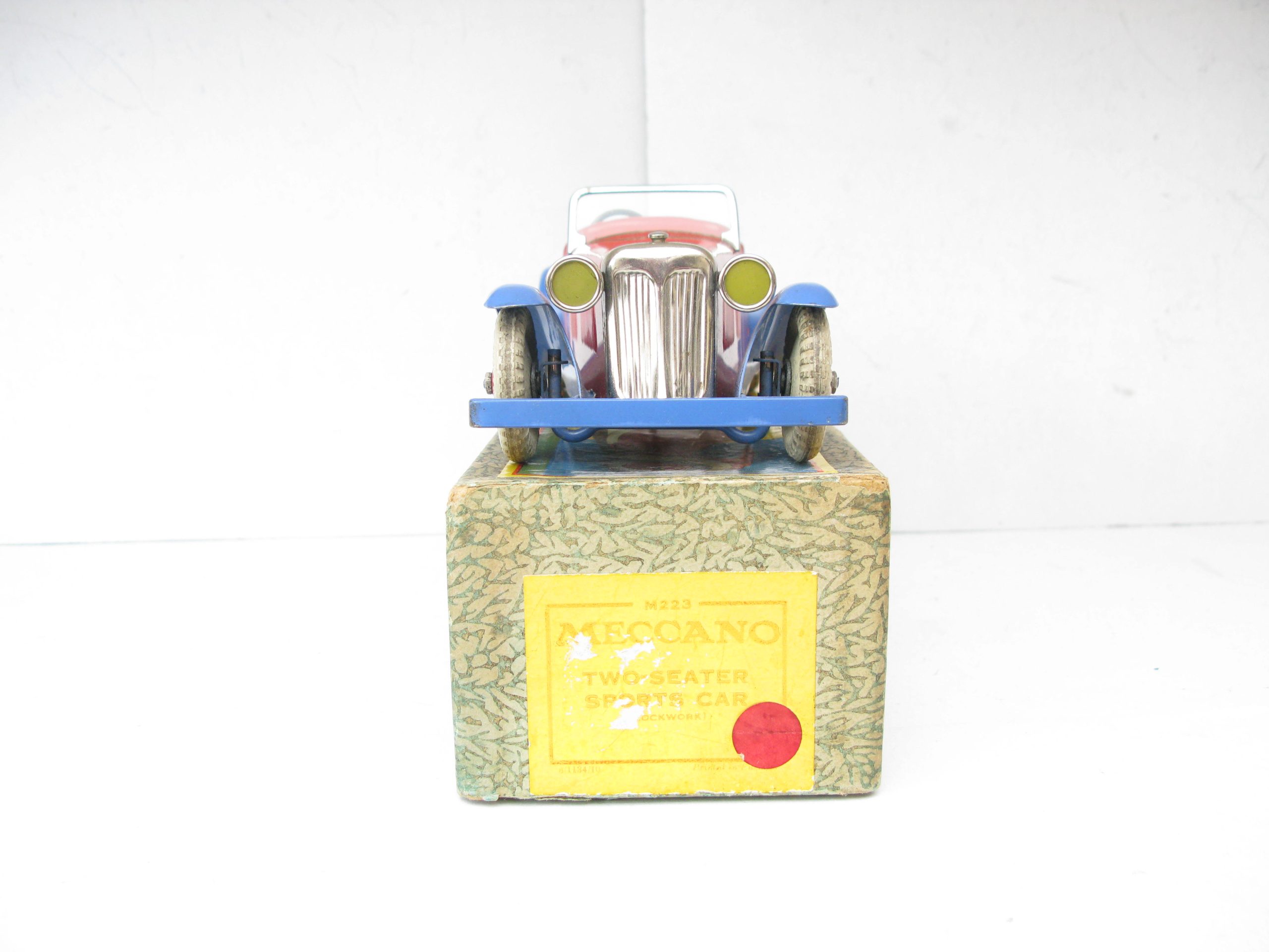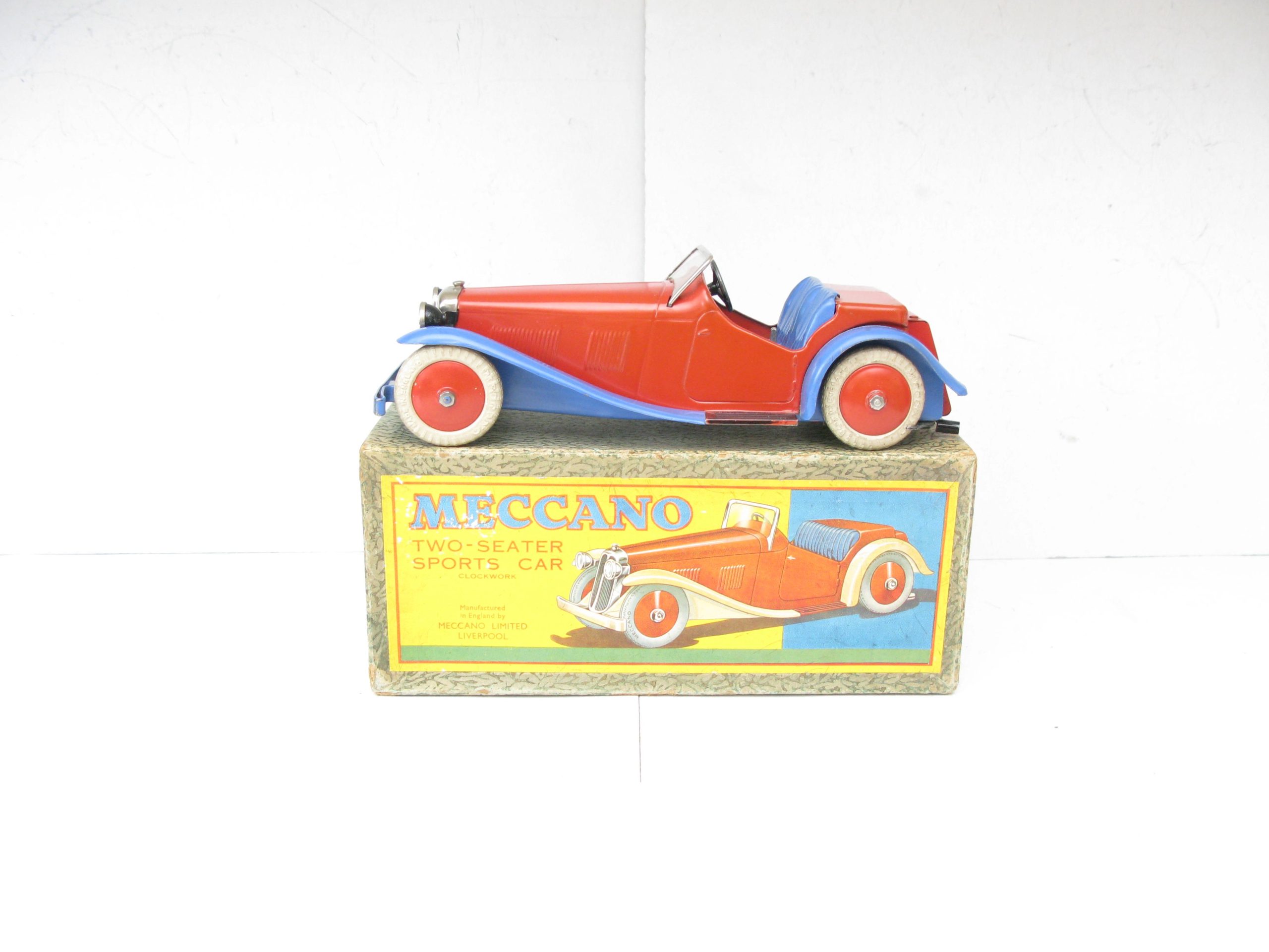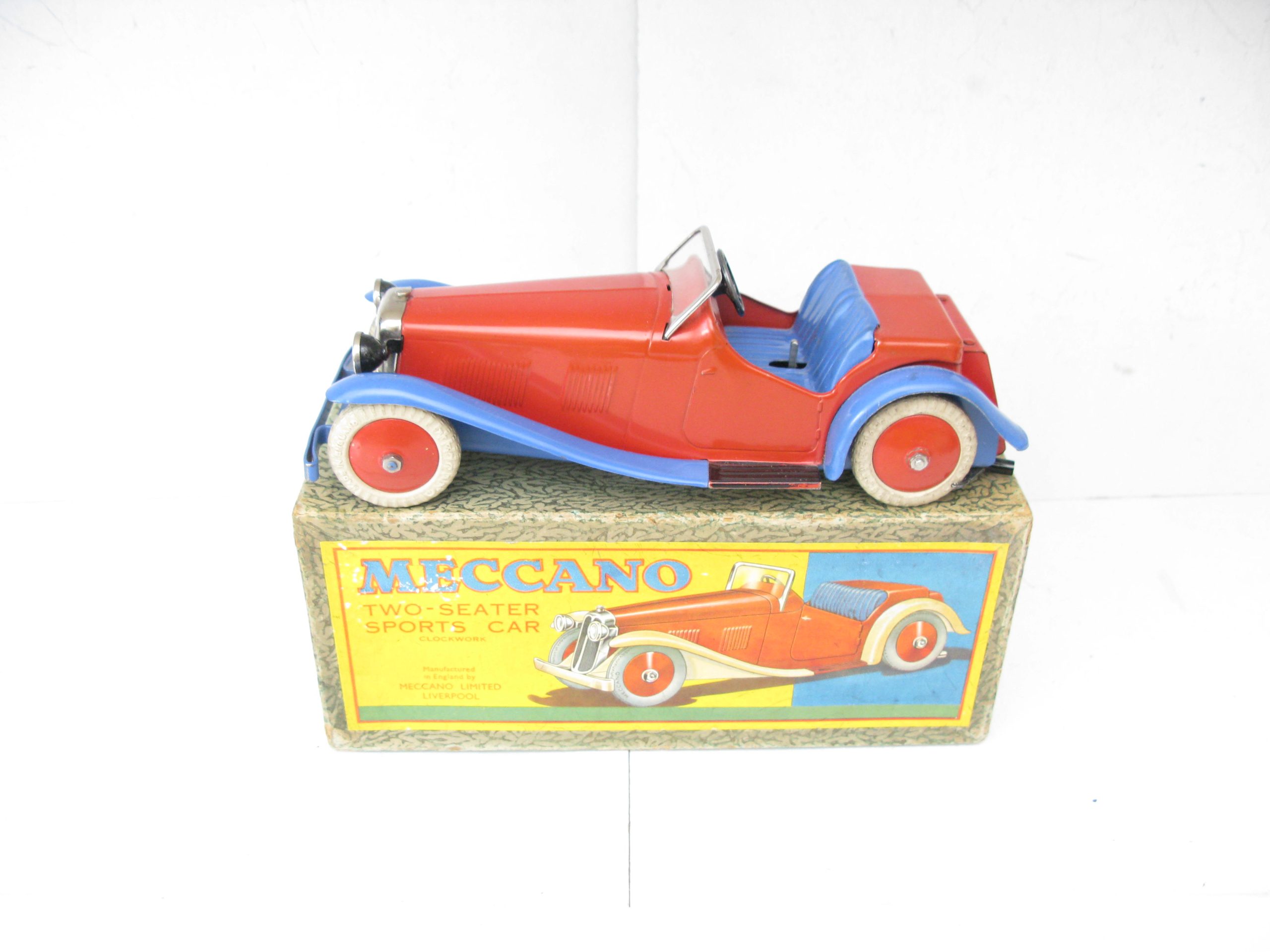 Meccano No.1 Non Constructor Car Red and Blue, Circa 1934/35 – Boxed – Meccano produced a number of different constructor and non constructor cars here we have the Non constructor No.1 Red body with Blue mudguards, underside and seats. Overall Excellent/plus to near Mint in the correct Excellent Red spot Picture box. One of the best examples of the No.1 Non constructor you will find
