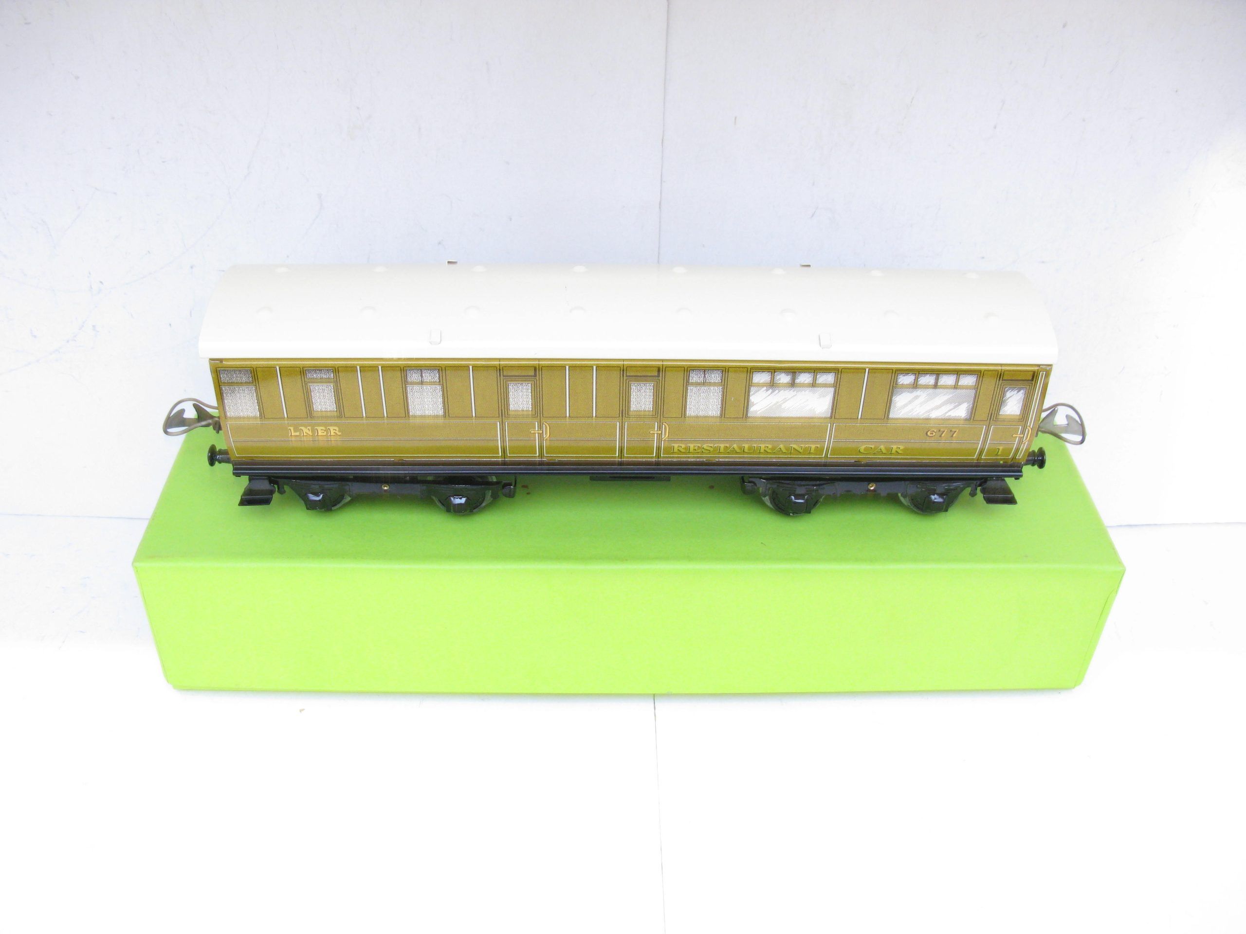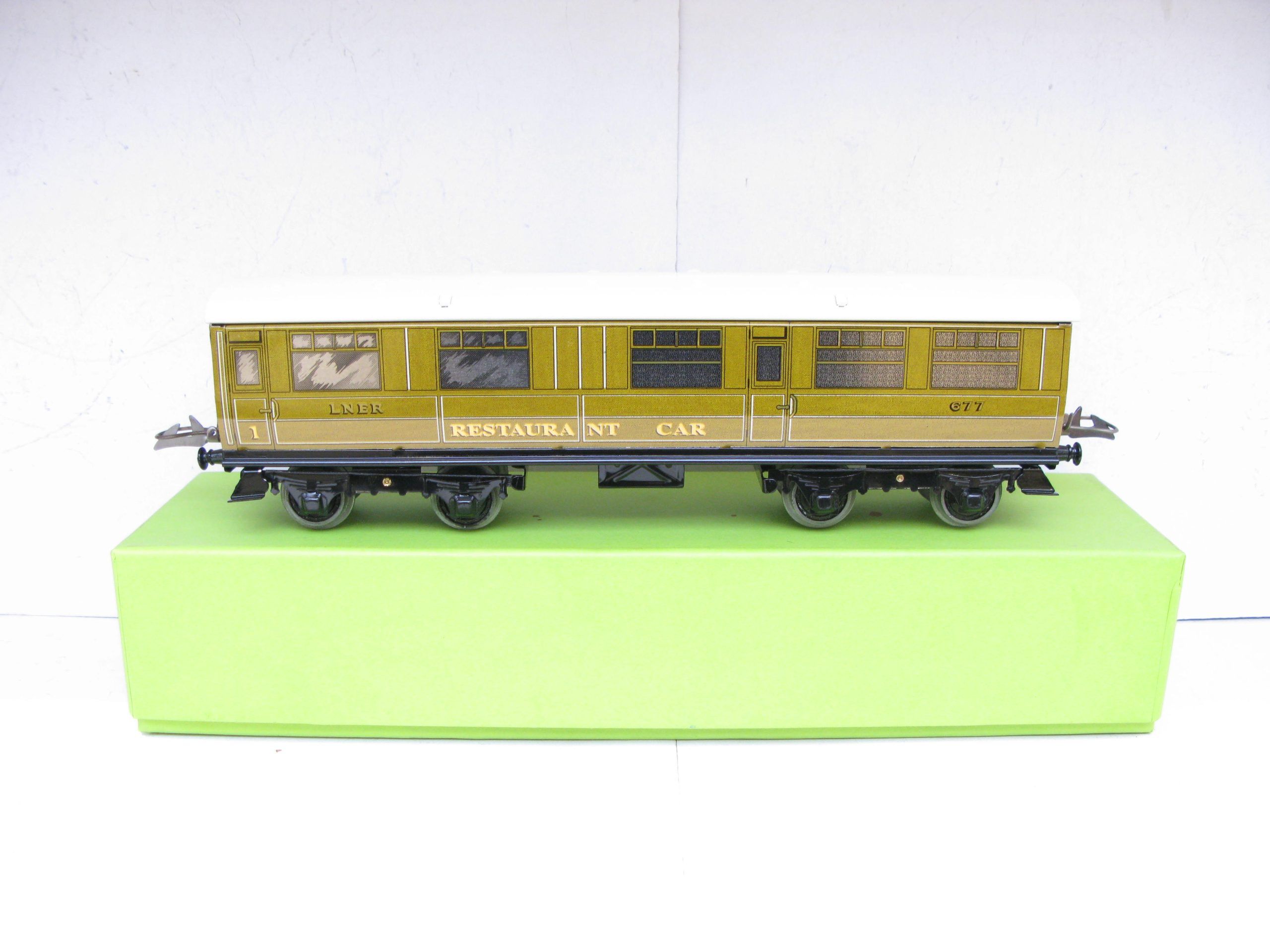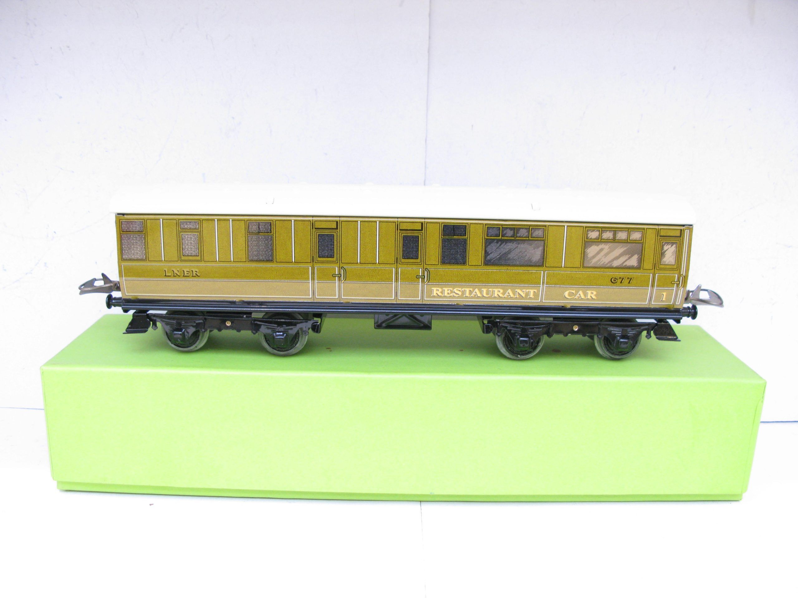 Middleton (Australia) Hornby Style 0 Gauge No. 2 LNER All 1st RESTAURANT CAR No.677 – Boxed – Produced by Alan Middleton in Australia who produced a range of Passenger and Corridor Coaches that were a direct copy of the Hornby 1930’s one, he also produced some Restaurant and other coaches in the same style which Hornby never produced. Here we have the LNER all 1st Restaurant Car. These are superbly produced and a great addition to the Hornby original coach. Overall Near Mint to Mint in Excellent box.