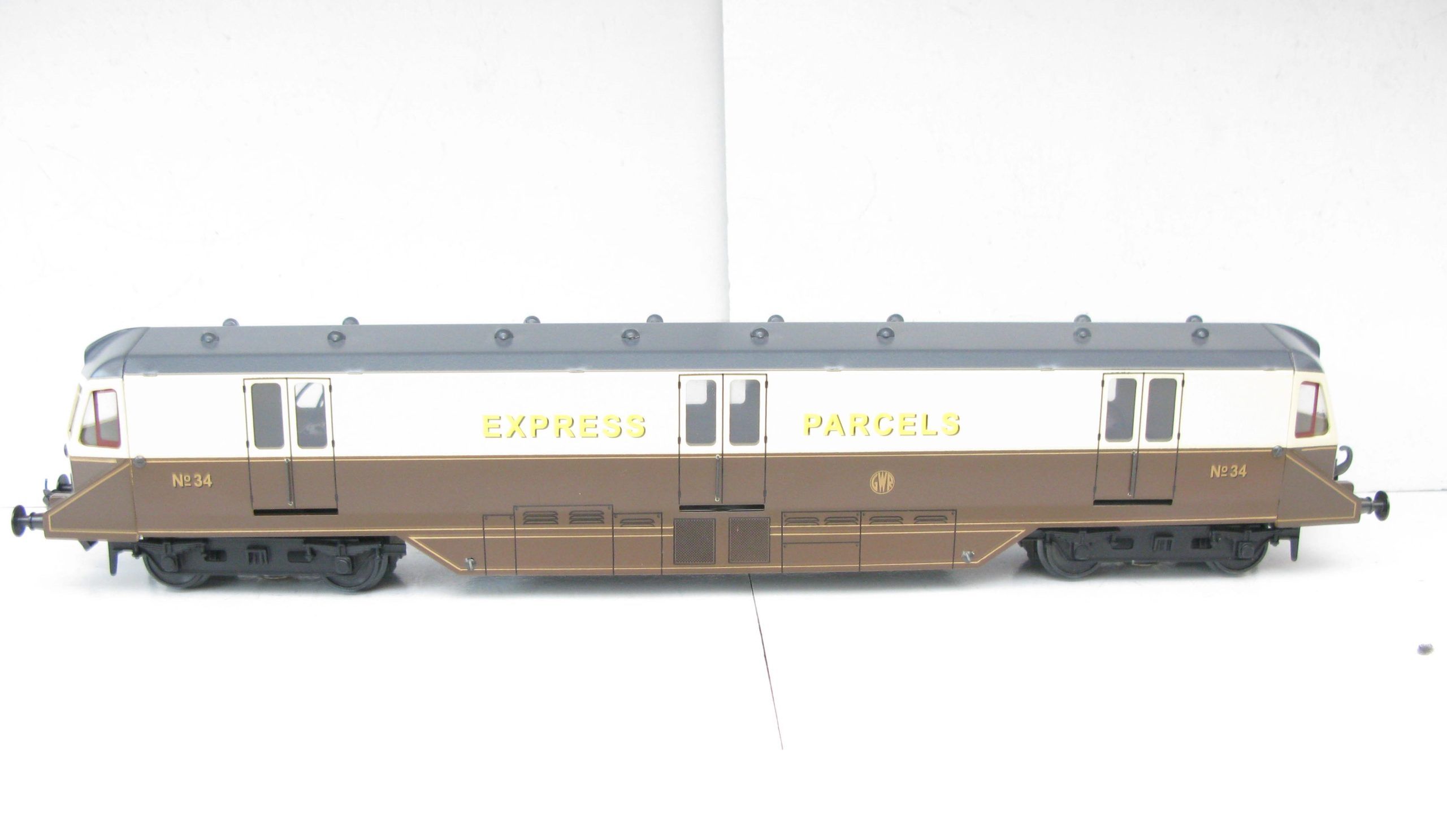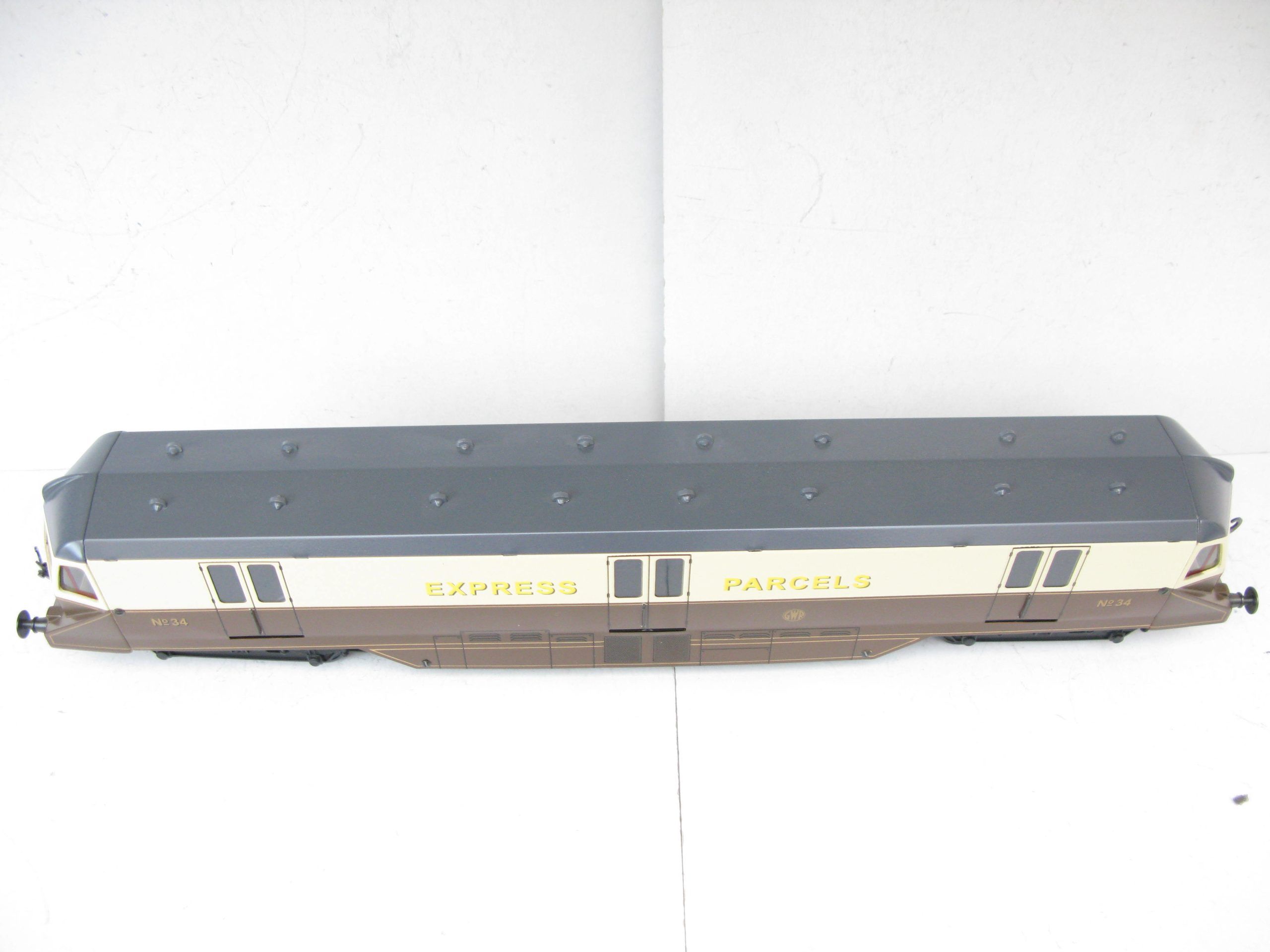 W J Vintage 0 Gauge Modern issue Limited Edition GWR Parcel Car (Chocolate & cream) No.34, 2/3-rail electric – Boxed