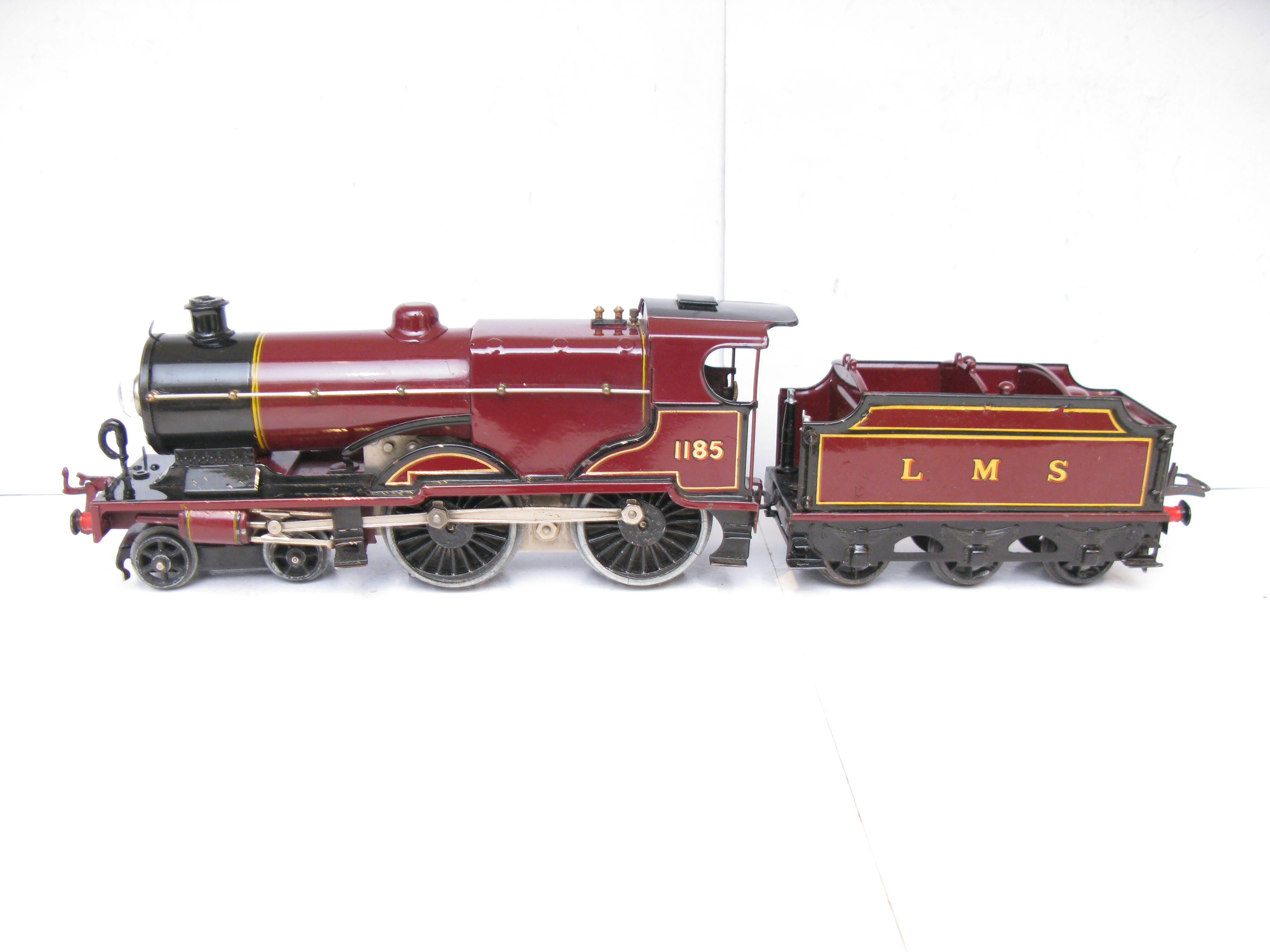 Hornby 0 Gauge E220 Special Loco & Tender LMS Maroon ‘COMPOUND’ No.1185, 3-rail 20 volt electric – Tender boxed -Overall Excellent plus to Near Mint