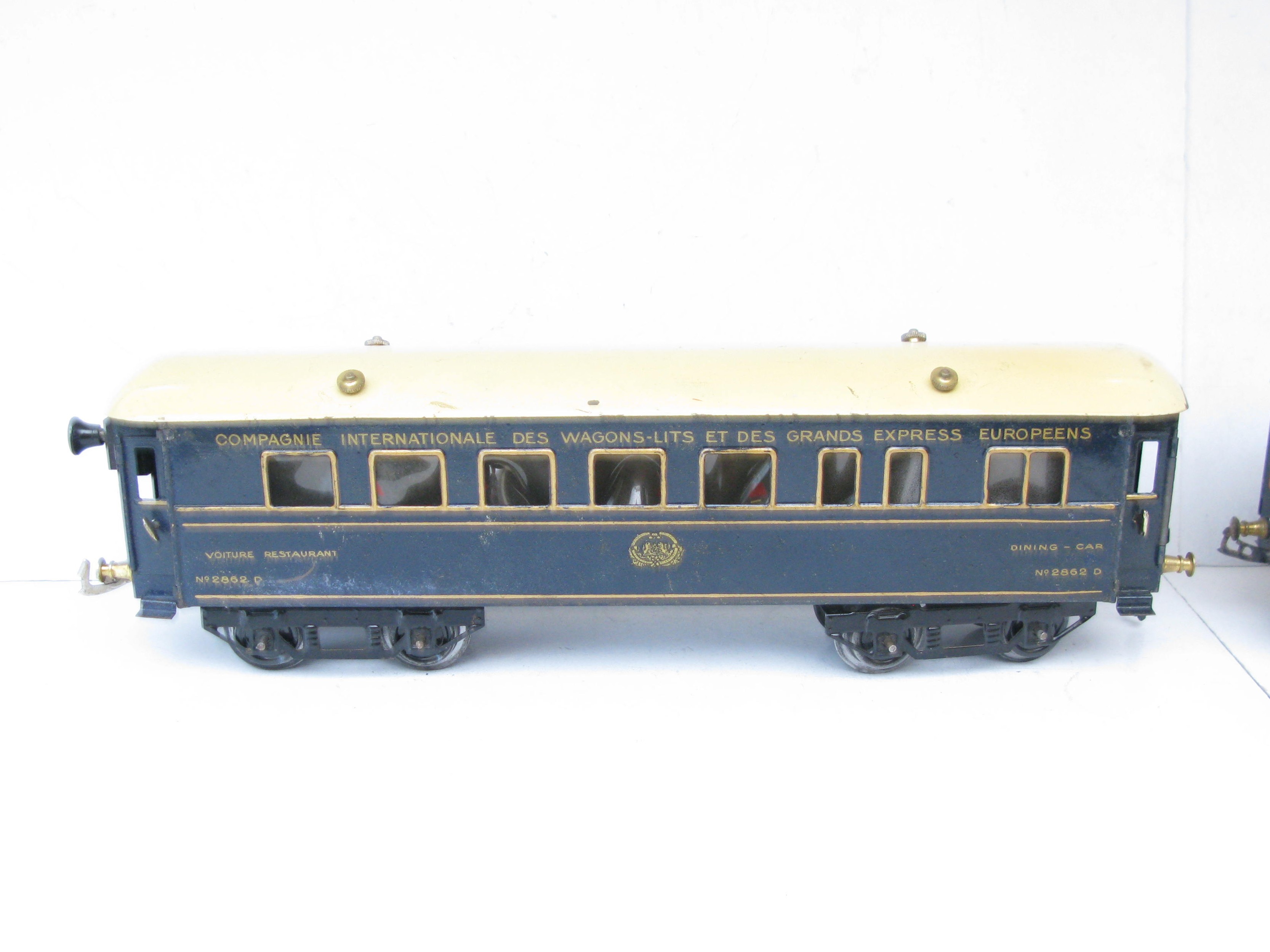 Hornby 0 Gauge Wagon Lits Grand European Express ‘Dining’ and ‘Sleeping’ cars – unboxed – Suitable for repair or spares at £40 each